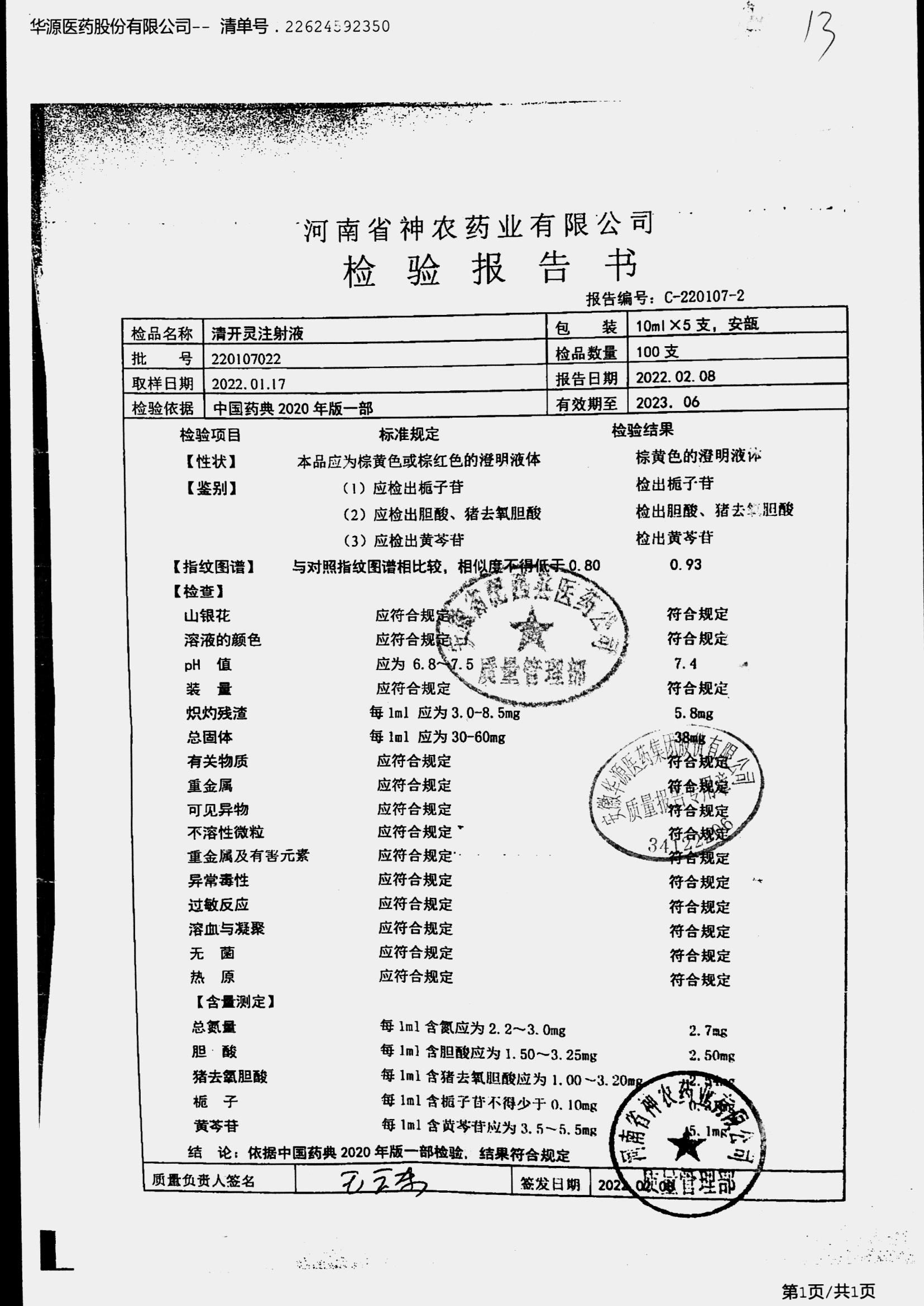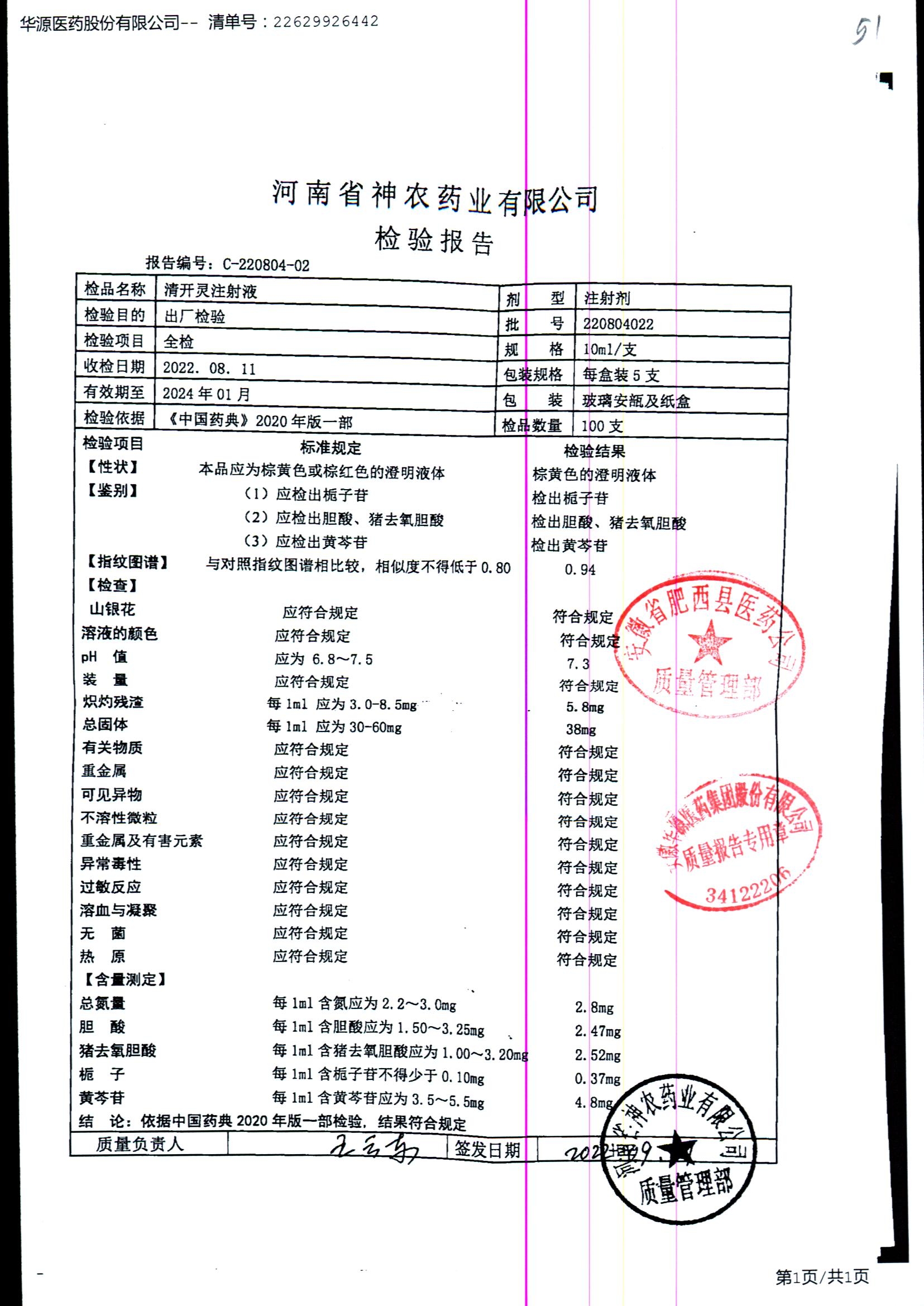 清開靈注射液 | 10ml*5支 | 220107022 | 查看詳情 |