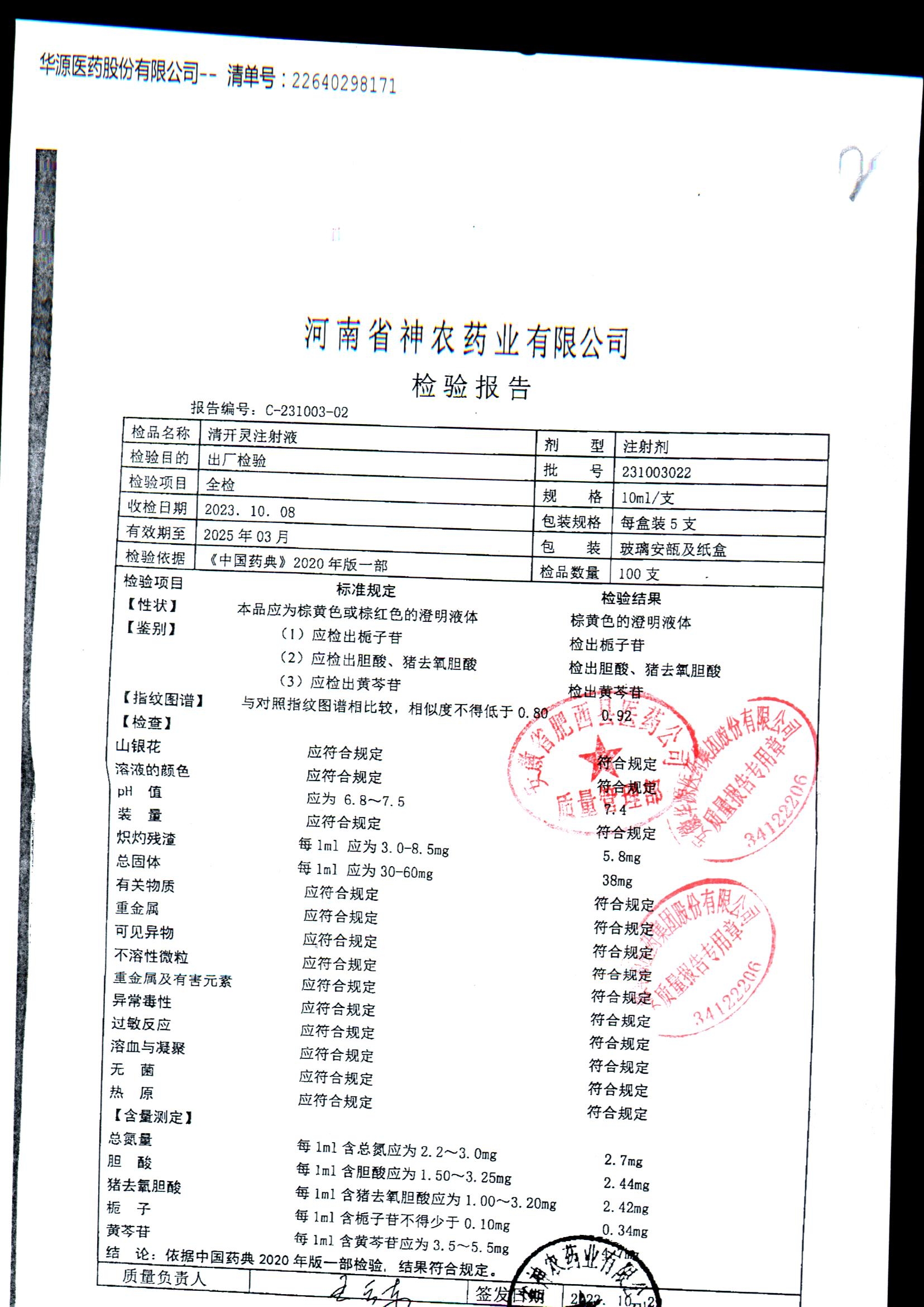 清開靈注射液 | 10ml*5支 | 230510022 | 查看詳情 |