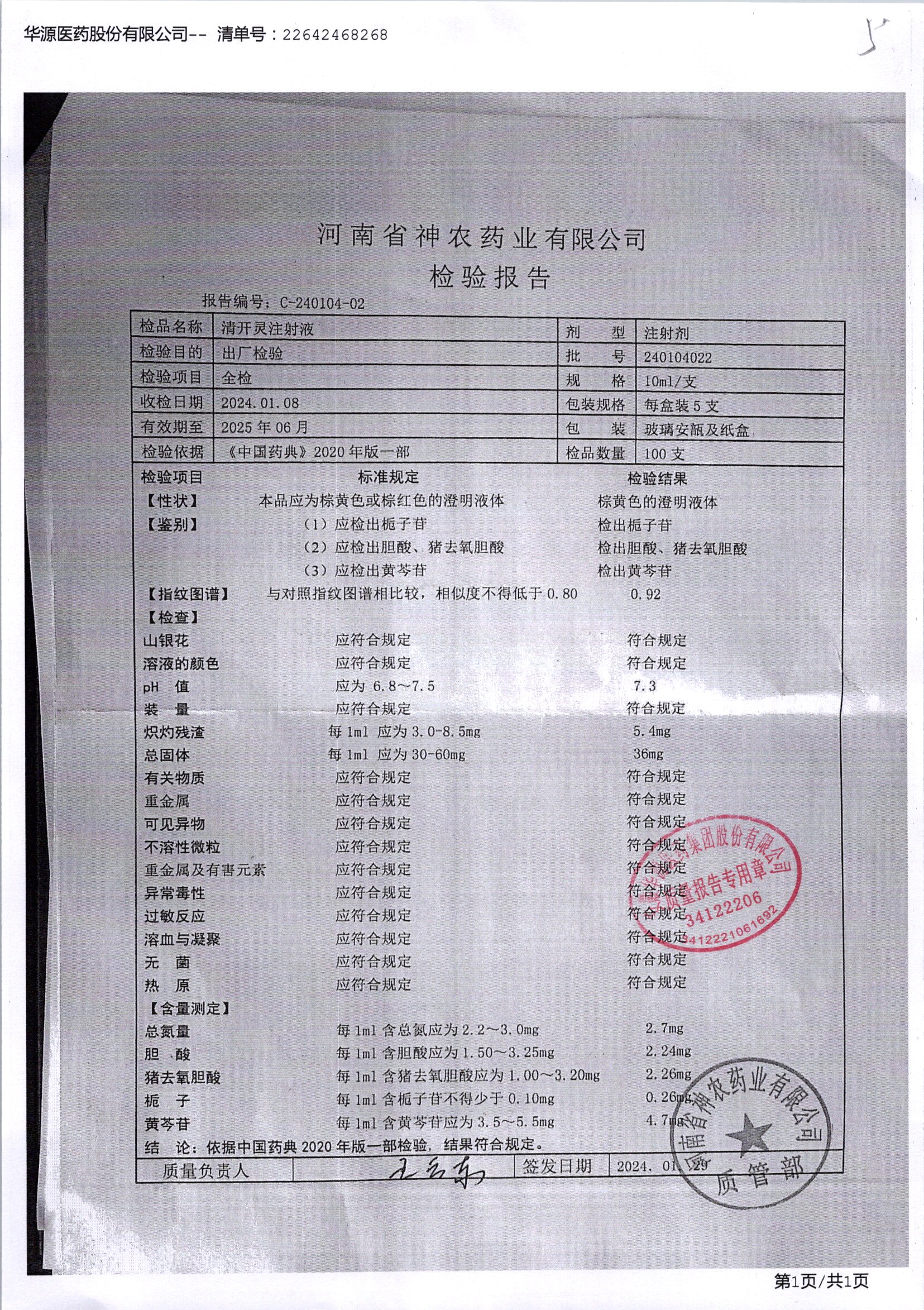 清開靈注射液 | 10ml*5支 | 241001022 | 查看詳情 |