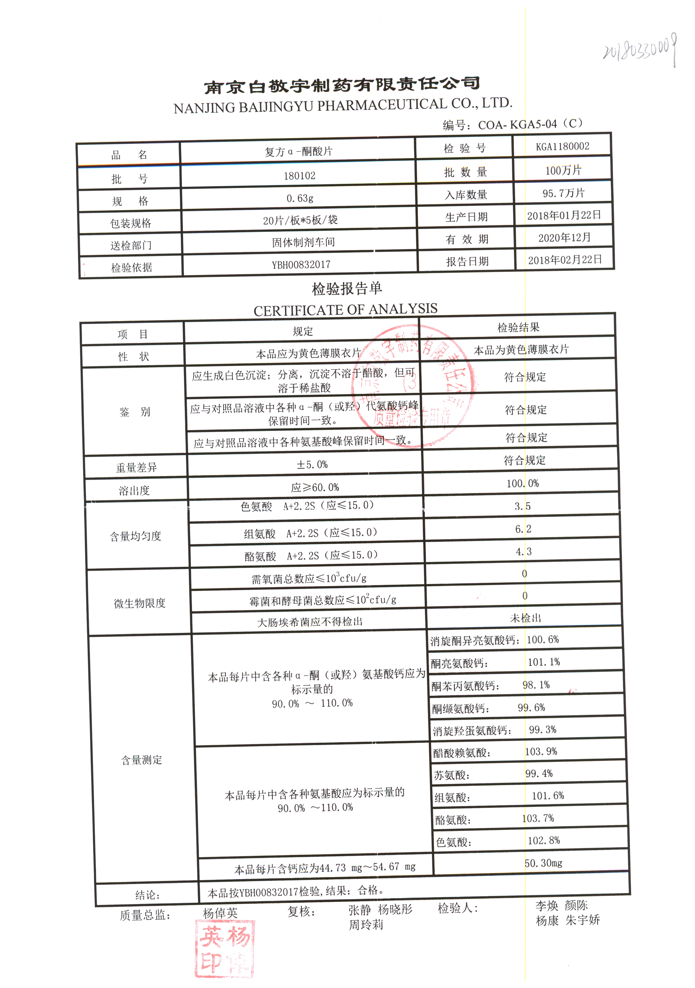 復(fù)方a-酮酸片 | 0.63g*20s*5板 | 210701 | 查看詳情 |
