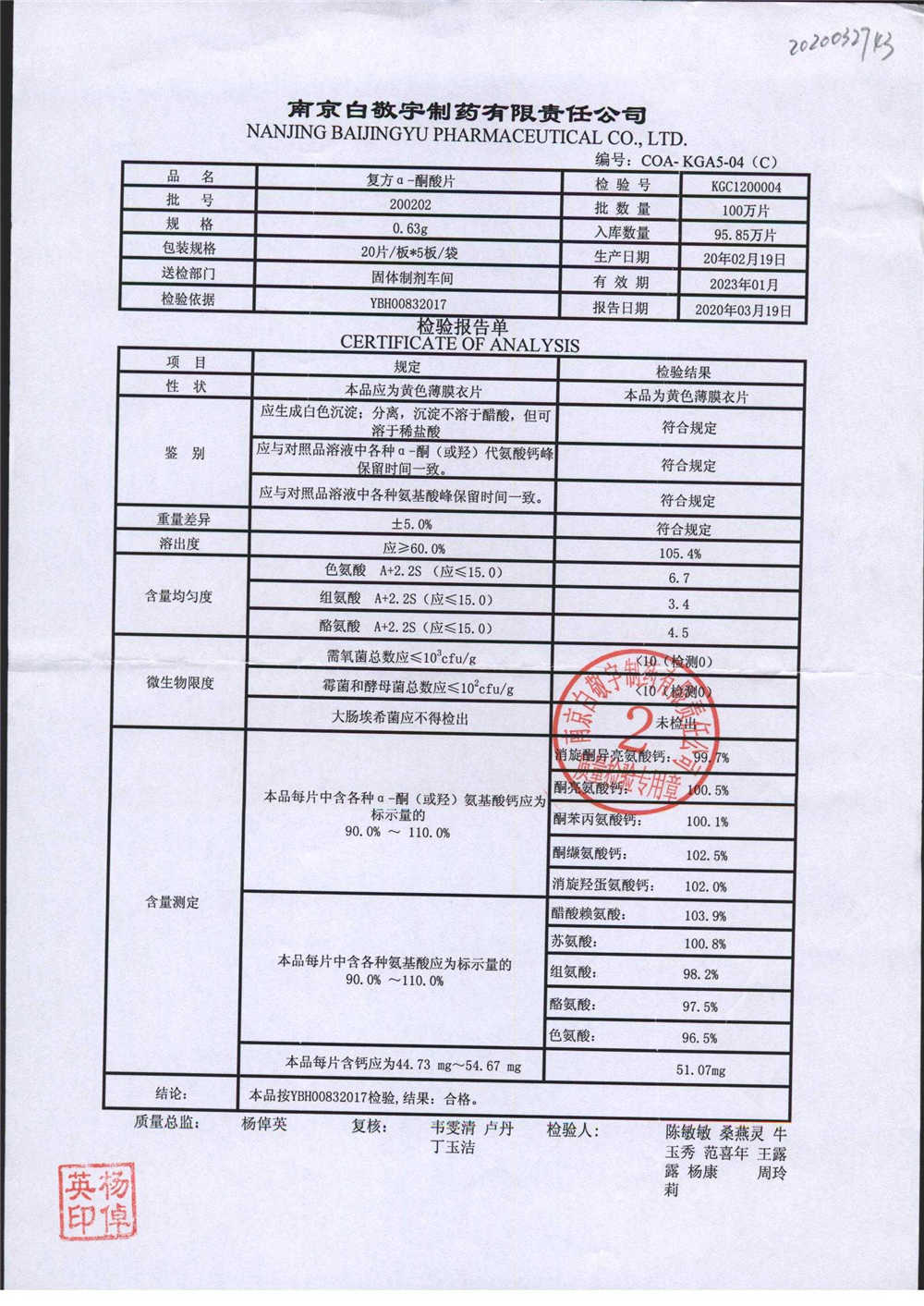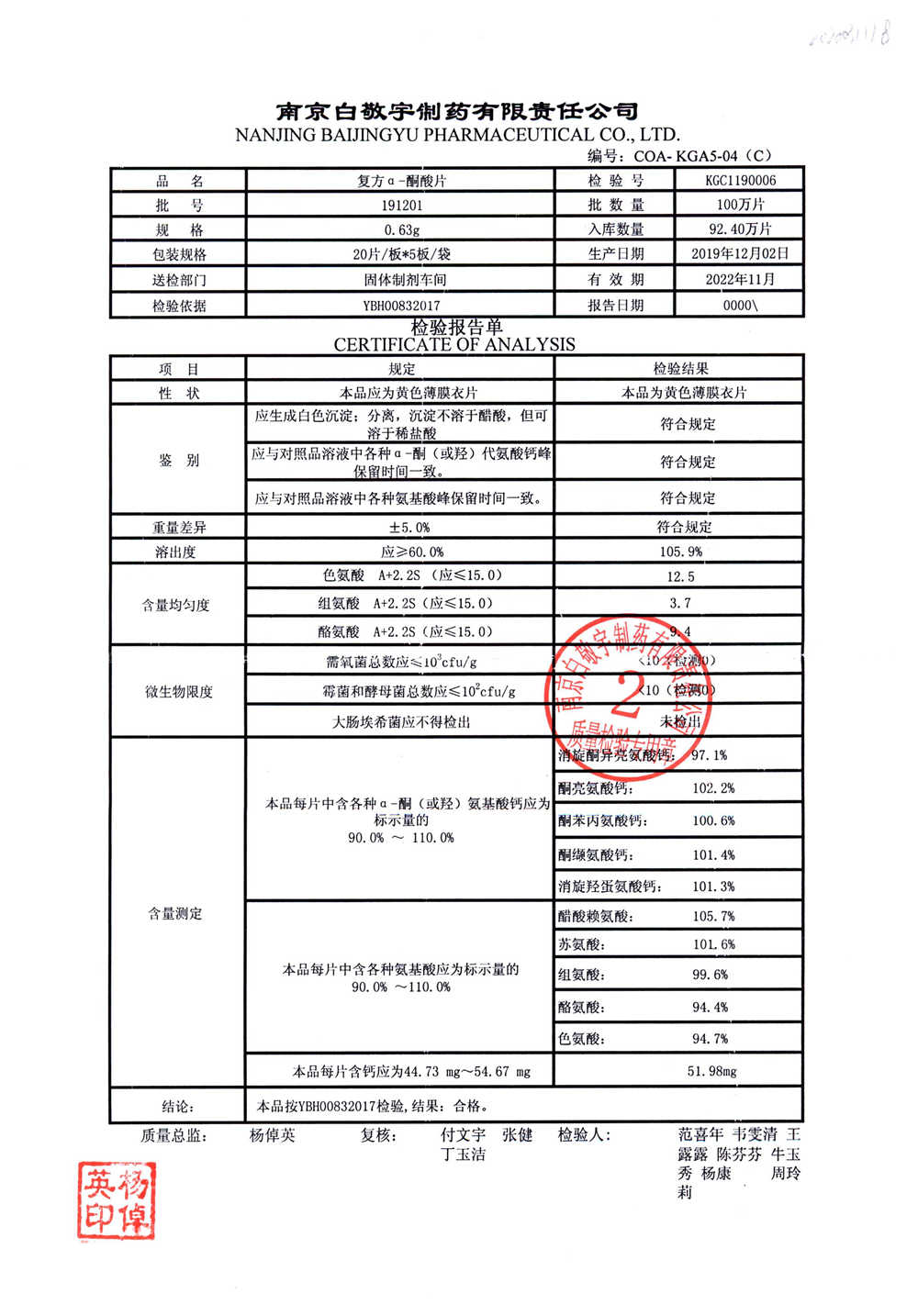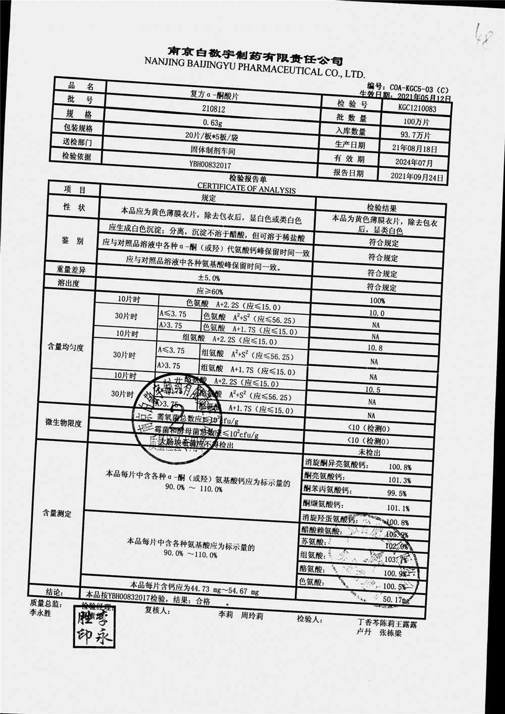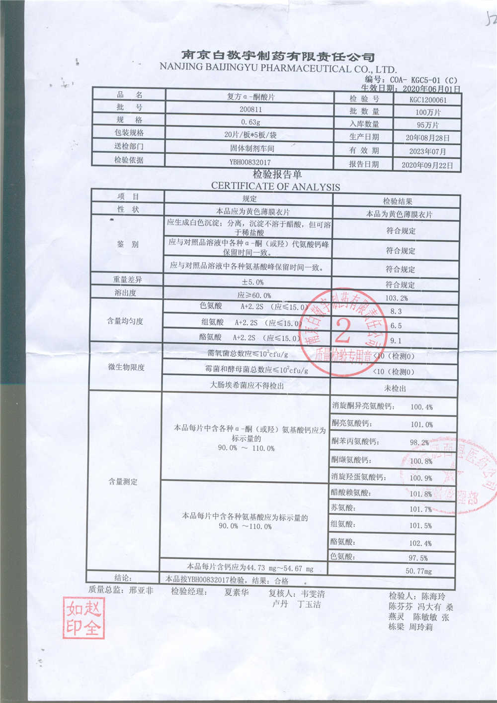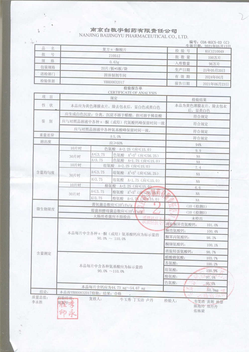 復(fù)方a-酮酸片 | 0.63g*20s*5板 | 210412 | 查看詳情 |