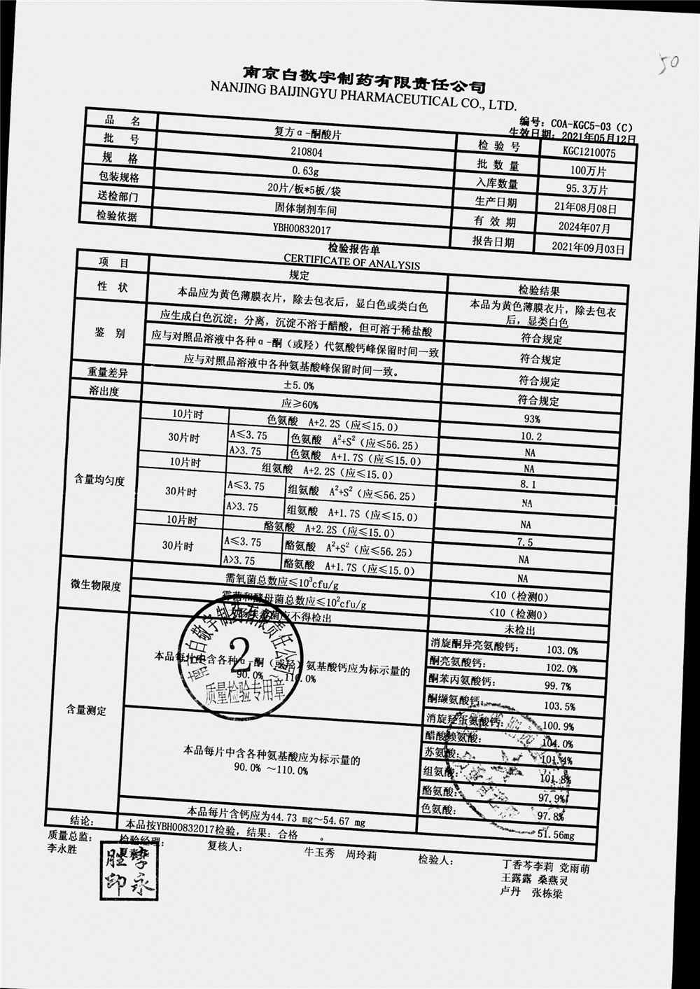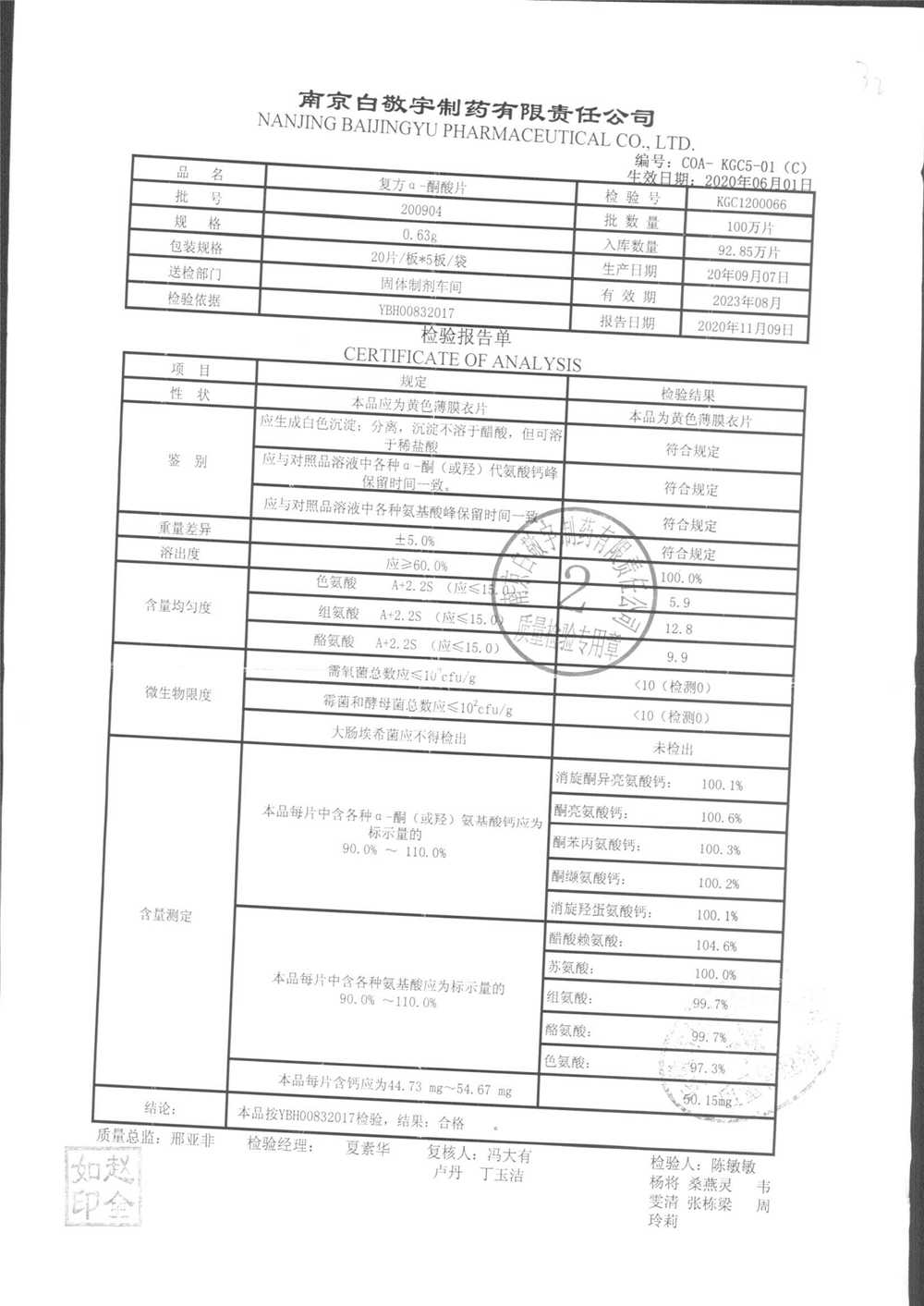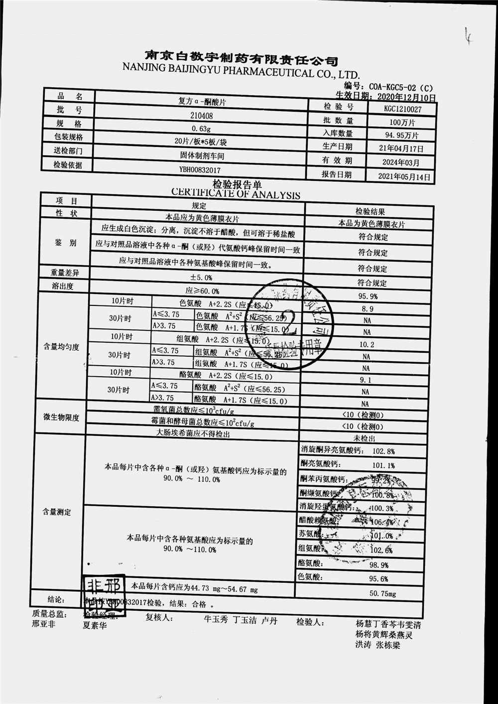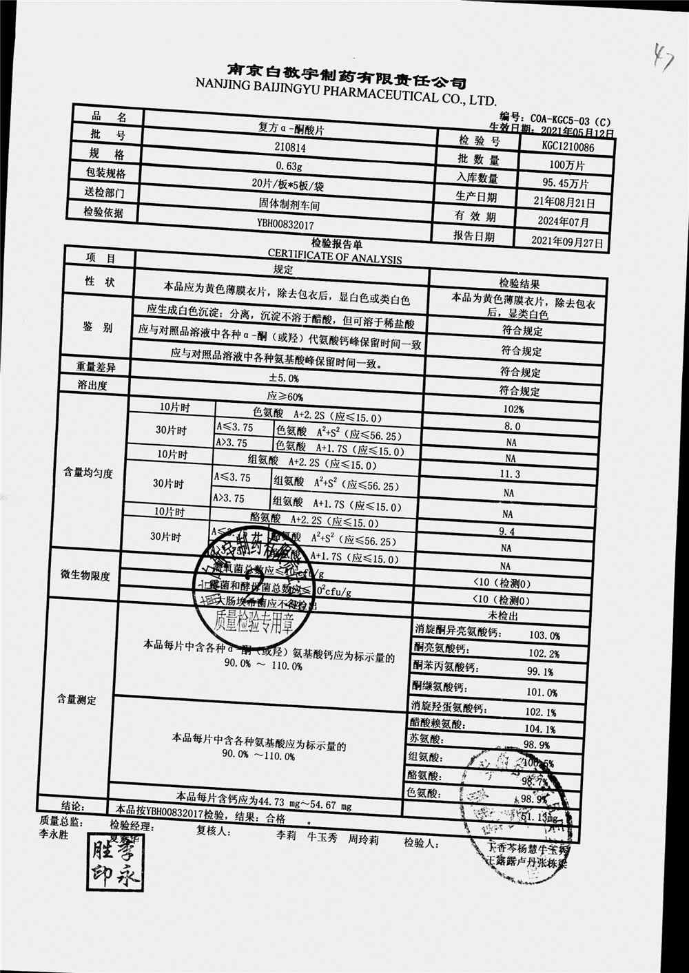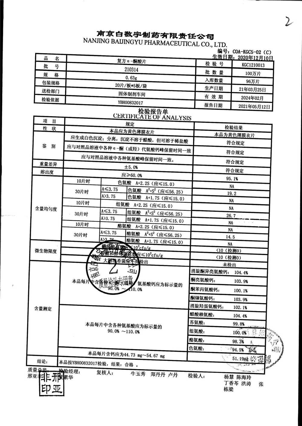 復(fù)方a-酮酸片 | 0.63g*20s*5板 | 210412 | 查看詳情 |