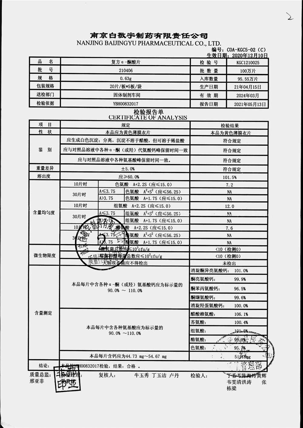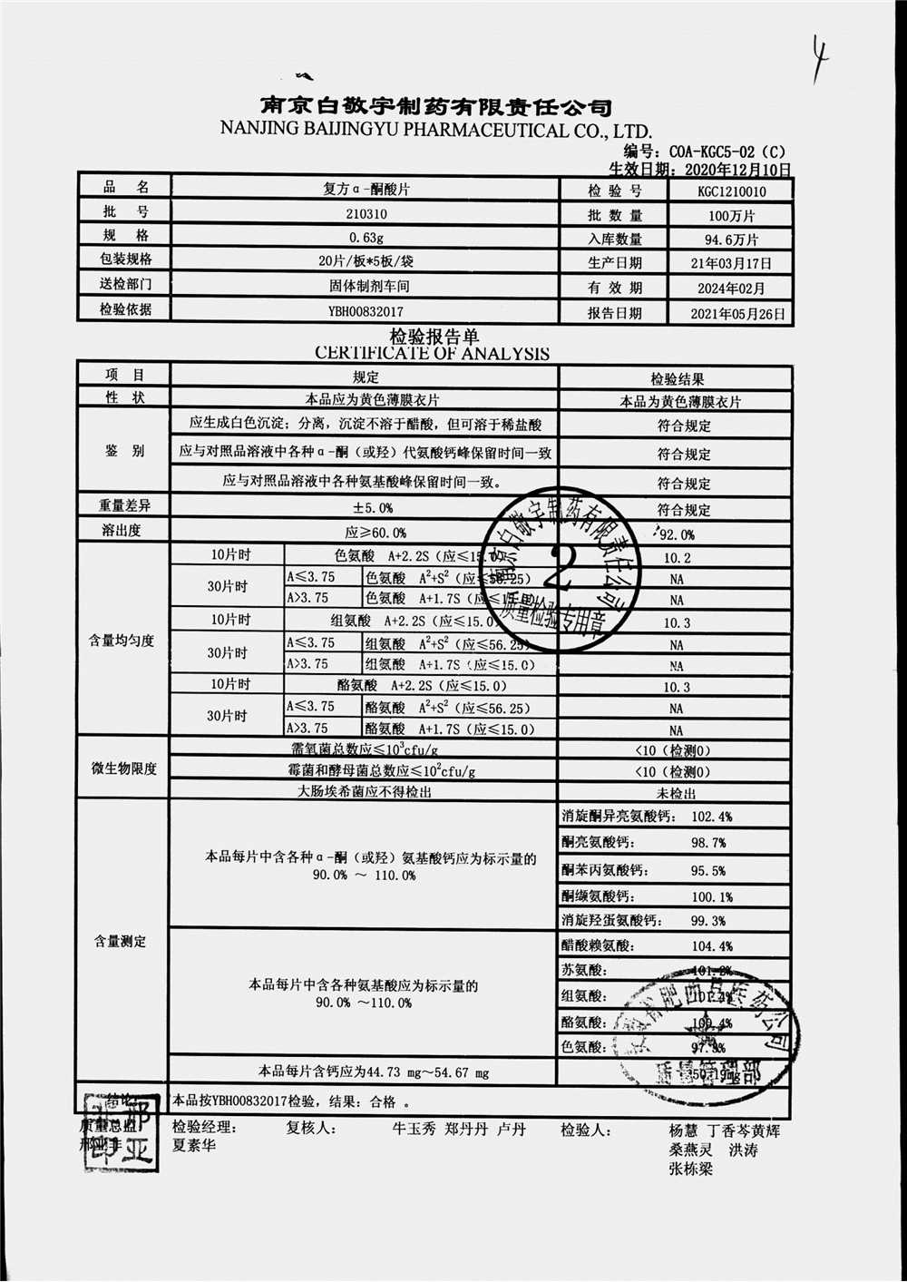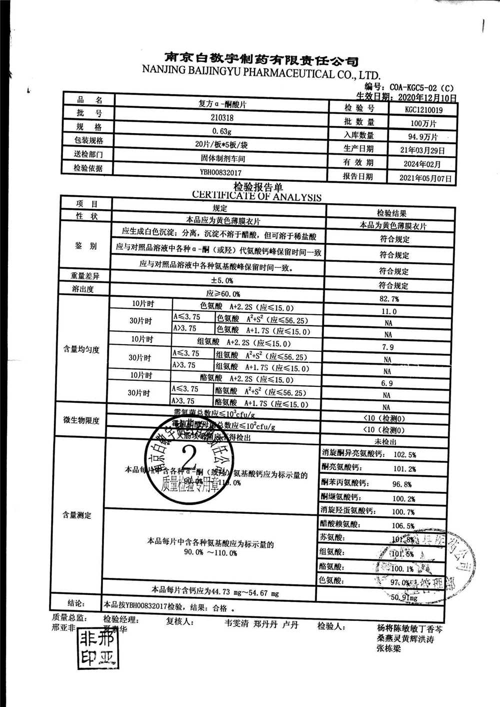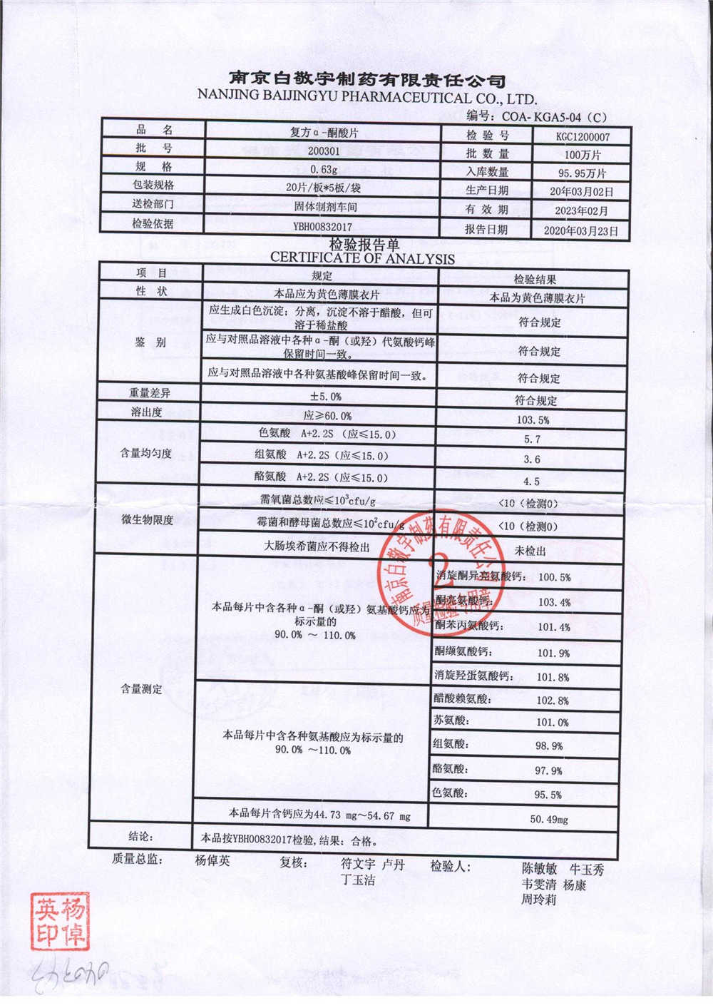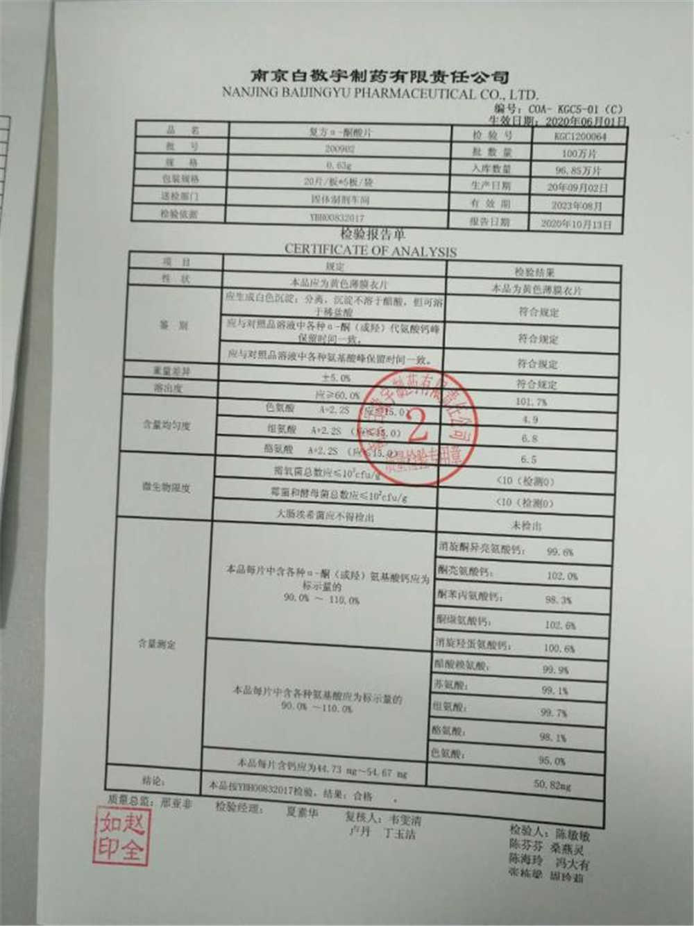 復(fù)方a-酮酸片 | 0.63g*20s*5板 | 210401 | 查看詳情 |