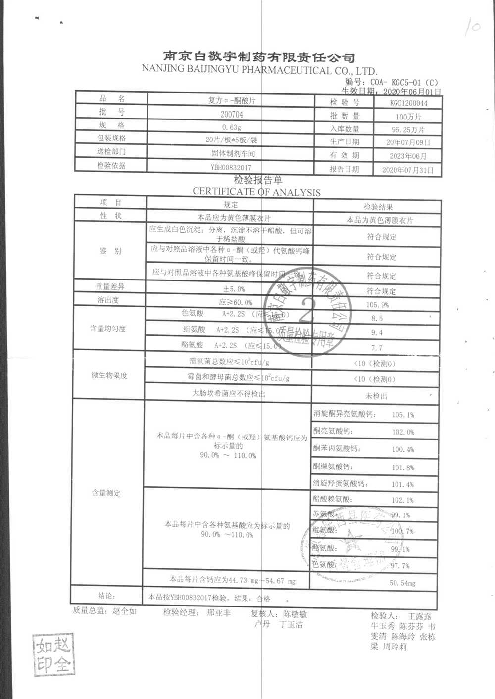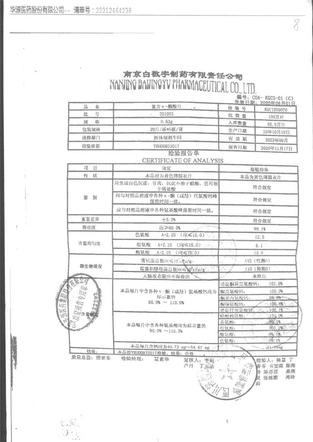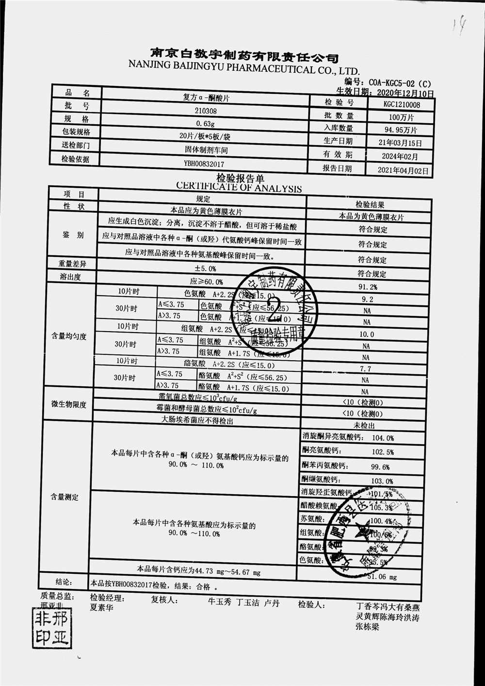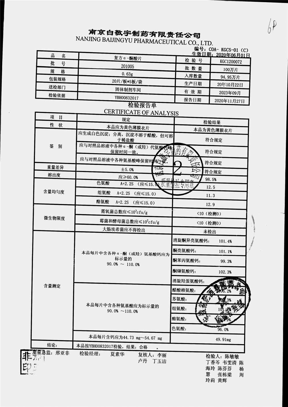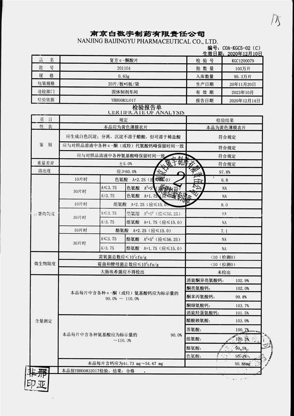 復(fù)方a-酮酸片 | 0.63g*20s*5板 | 210401 | 查看詳情 |