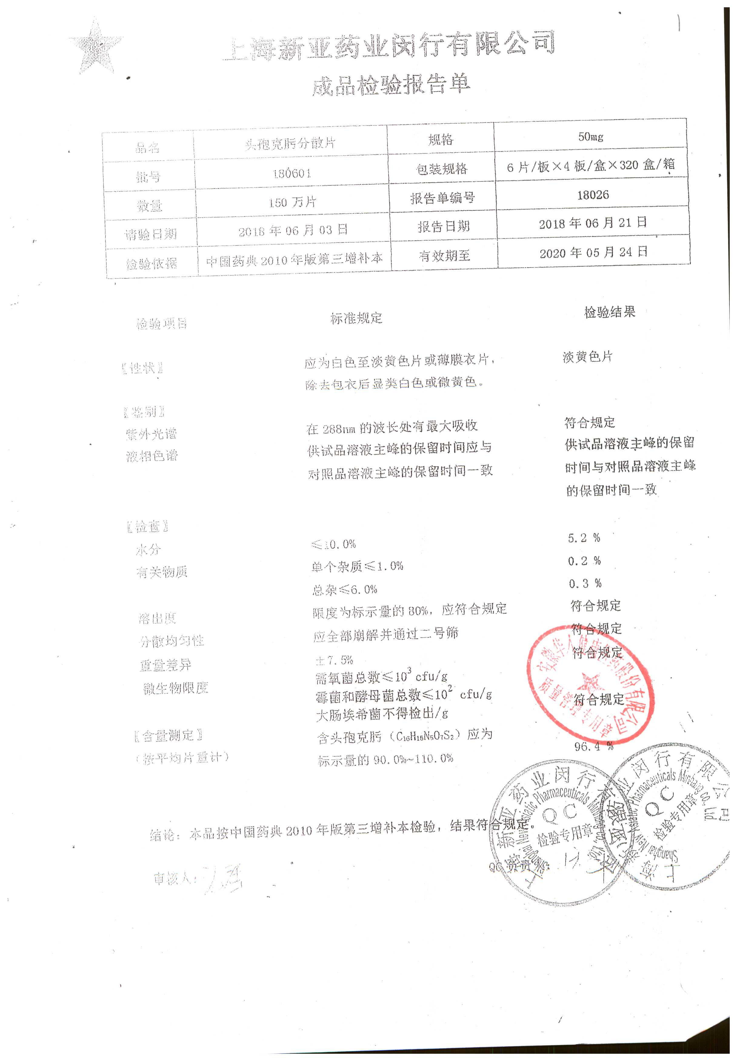 頭孢克肟分散片 | 50mg*24s | 180601 | 查看詳情 |