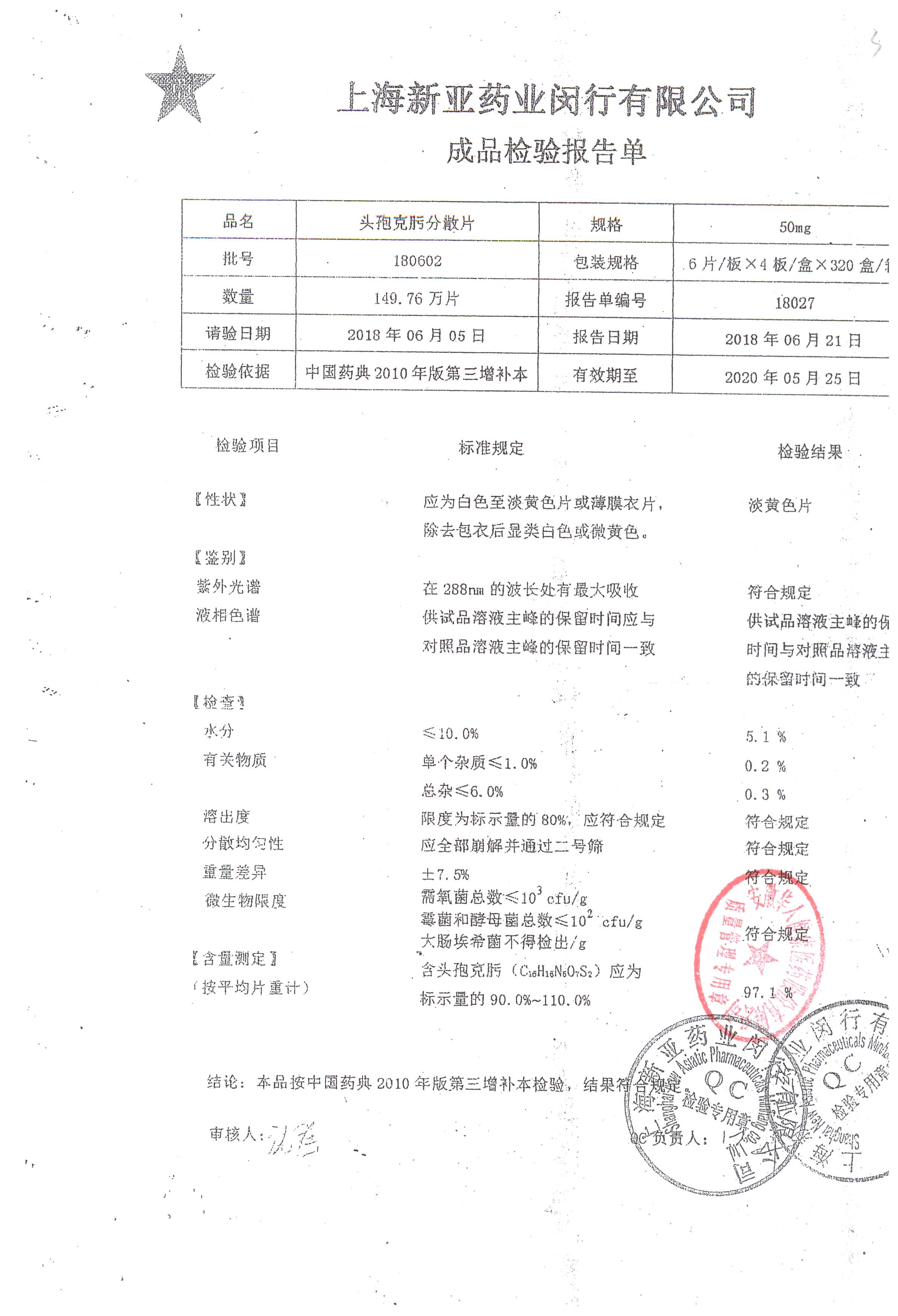 頭孢克肟分散片 | 50mg*24s | 190701 | 查看詳情 |