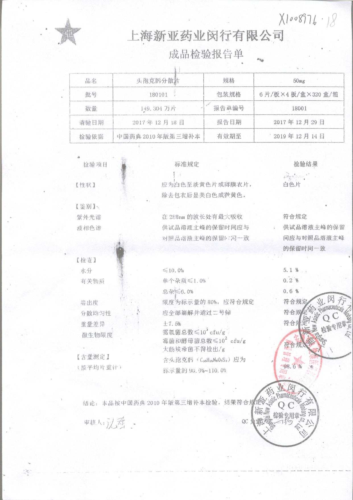 頭孢克肟分散片 | 50mg*24s | 190703 | 查看詳情 |