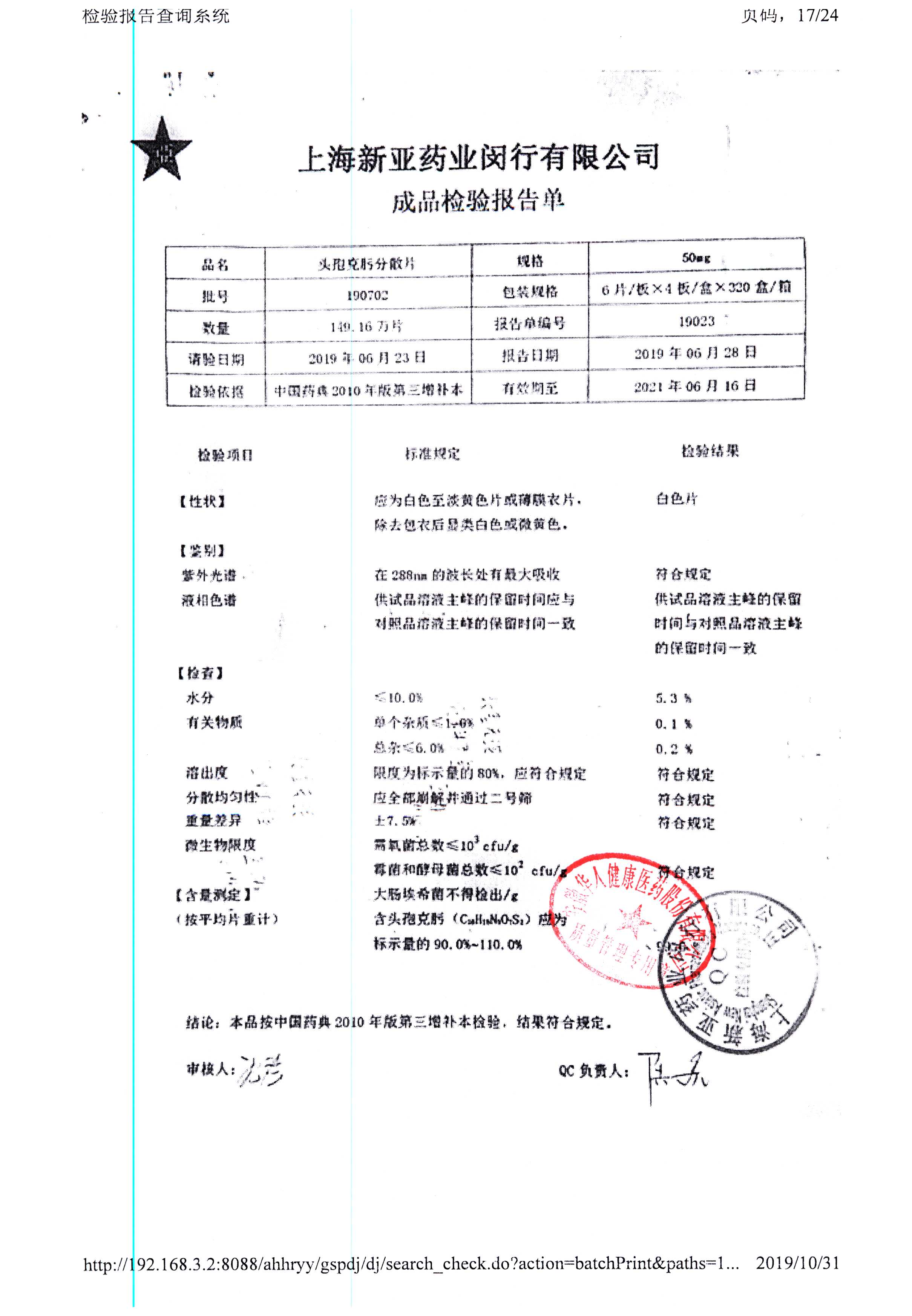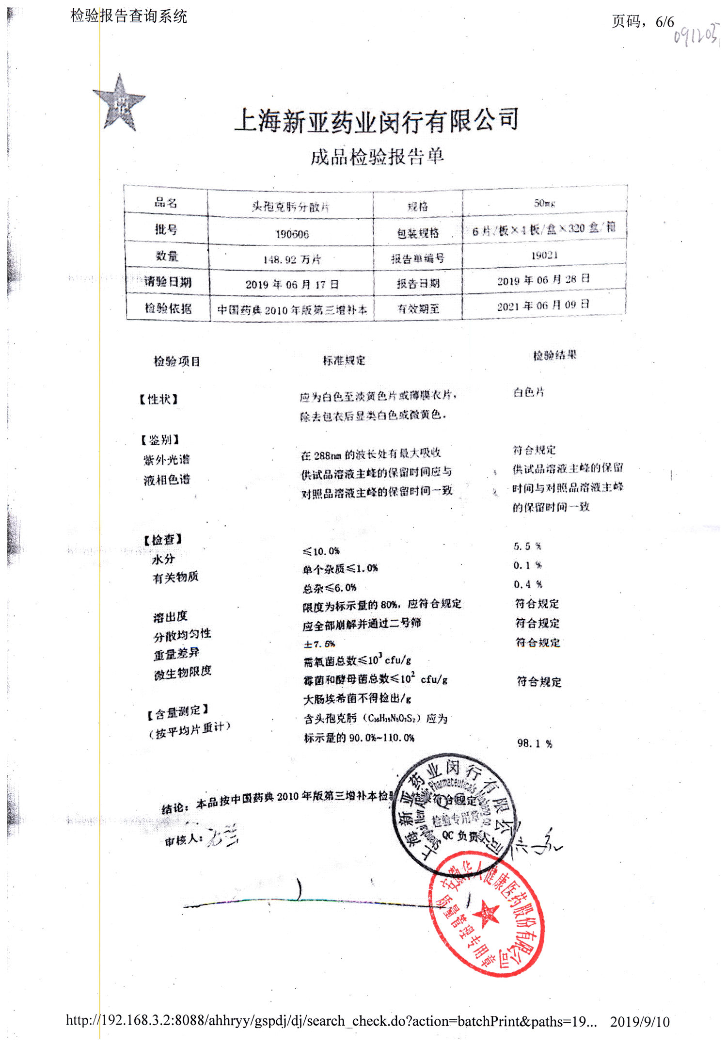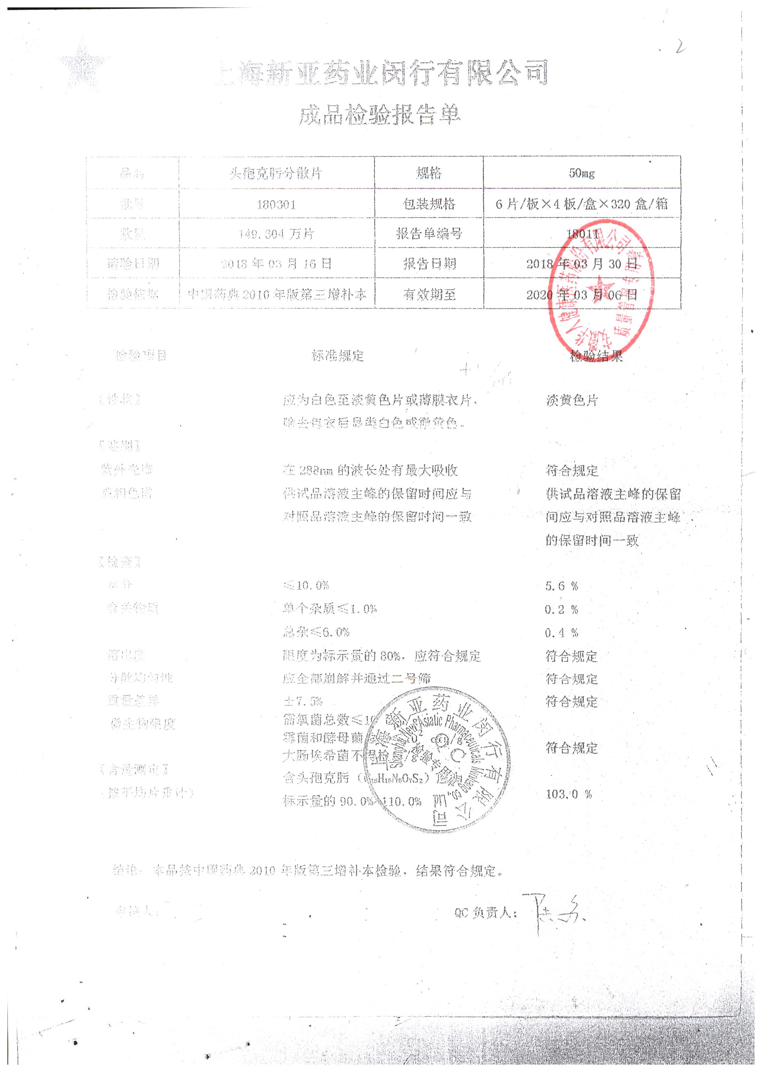 頭孢克肟分散片 | 50mg*24s | 190702 | 查看詳情 |
