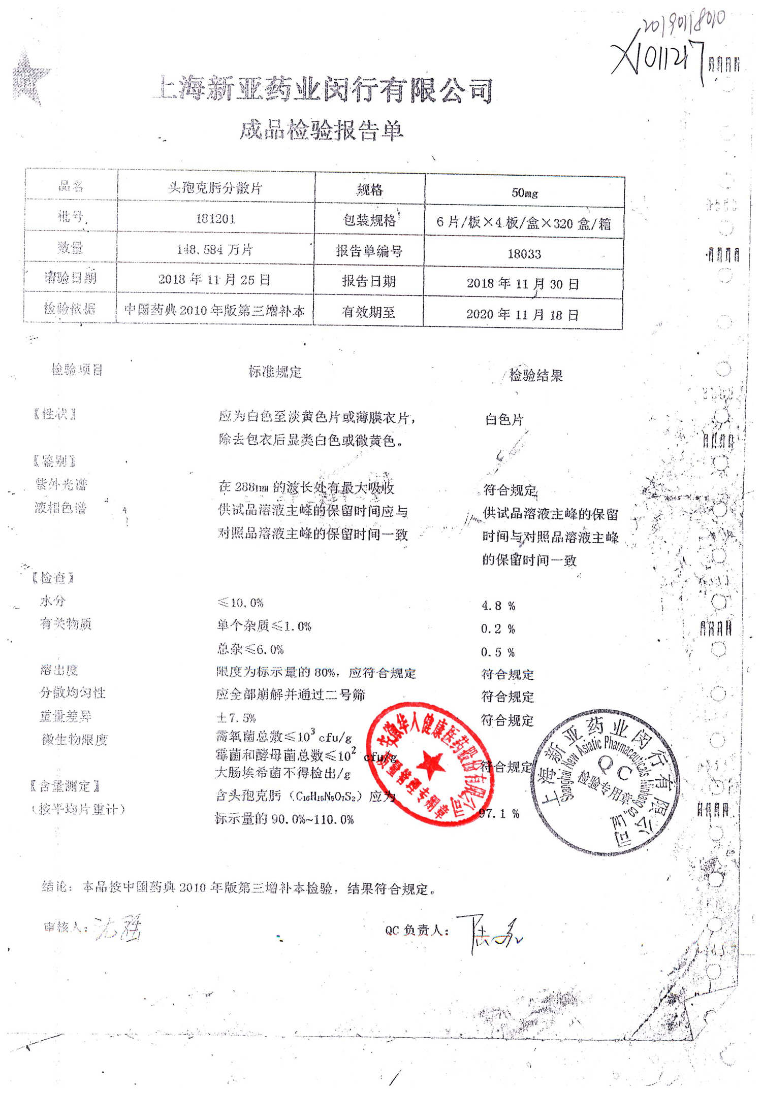 頭孢克肟分散片 | 50mg*24s | 190606 | 查看詳情 |