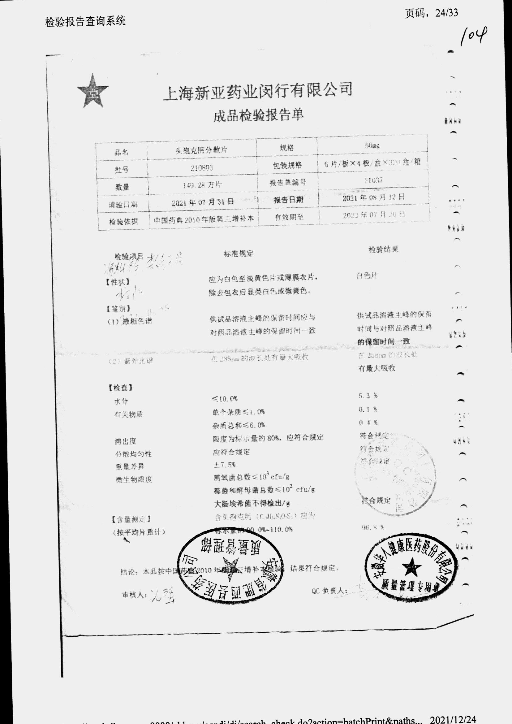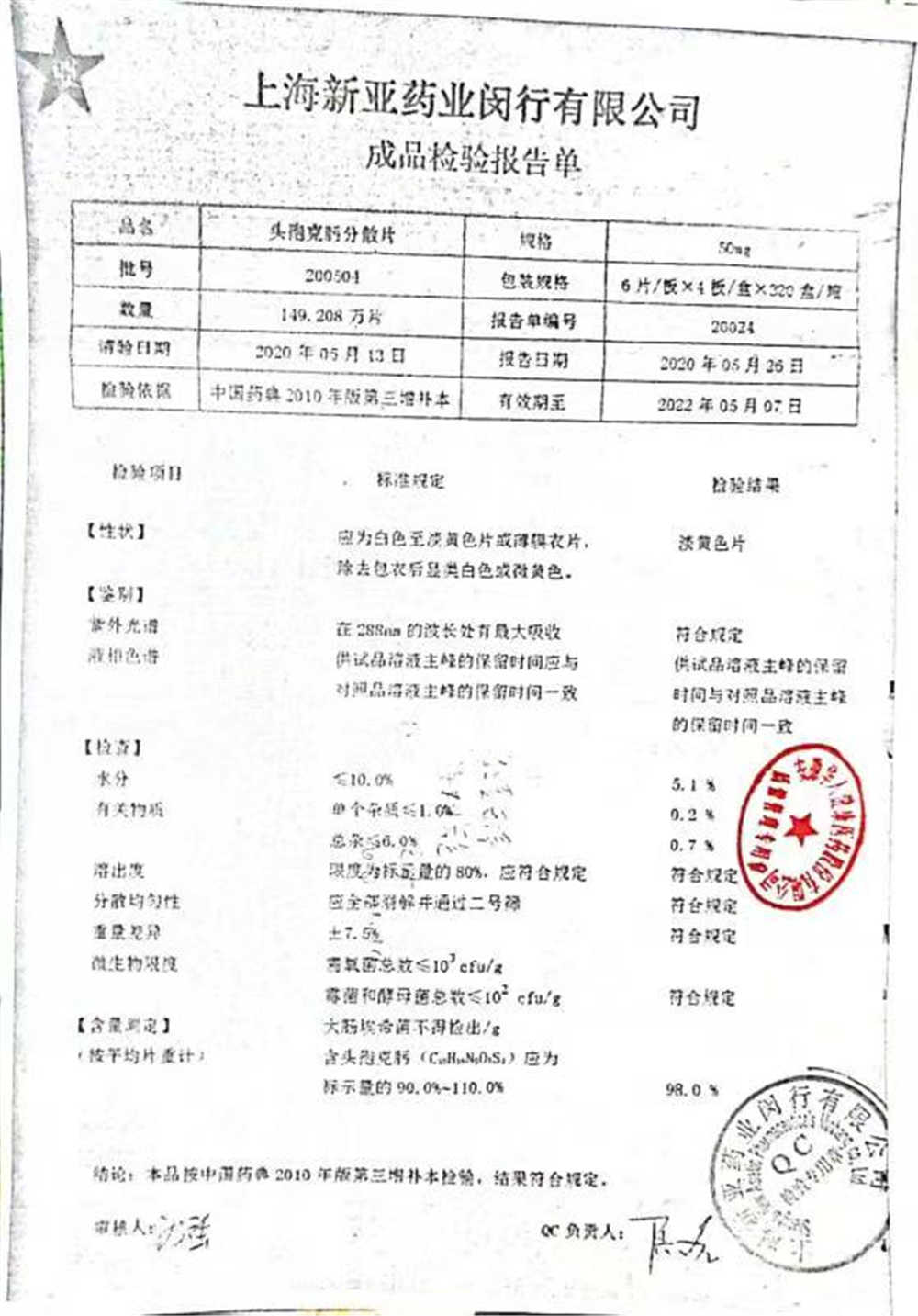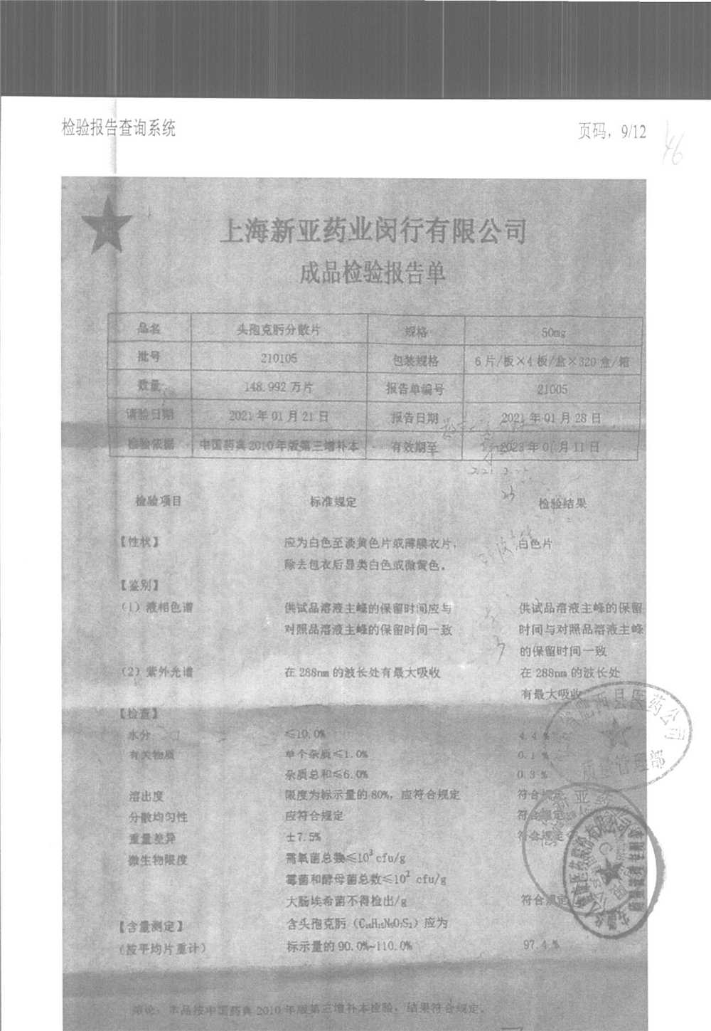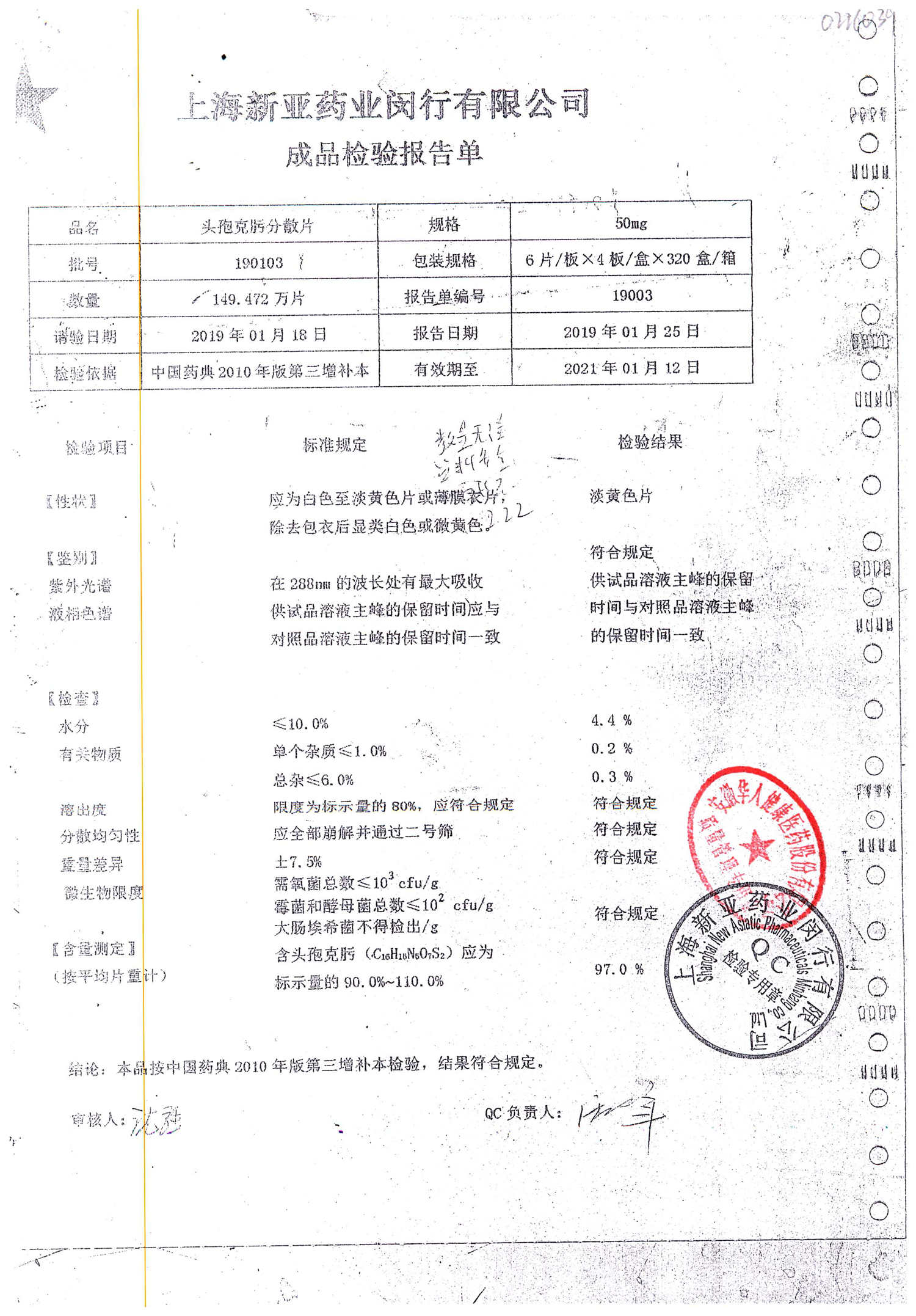 頭孢克肟分散片 | 50mg*24s | 210801 | 查看詳情 |