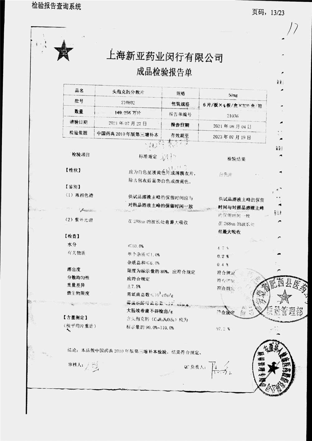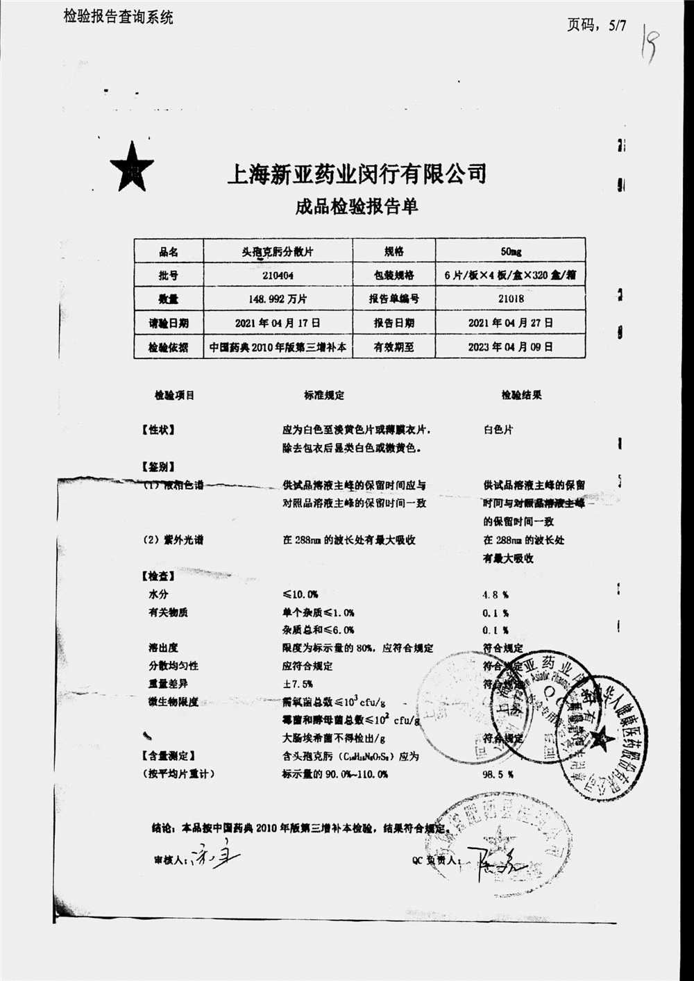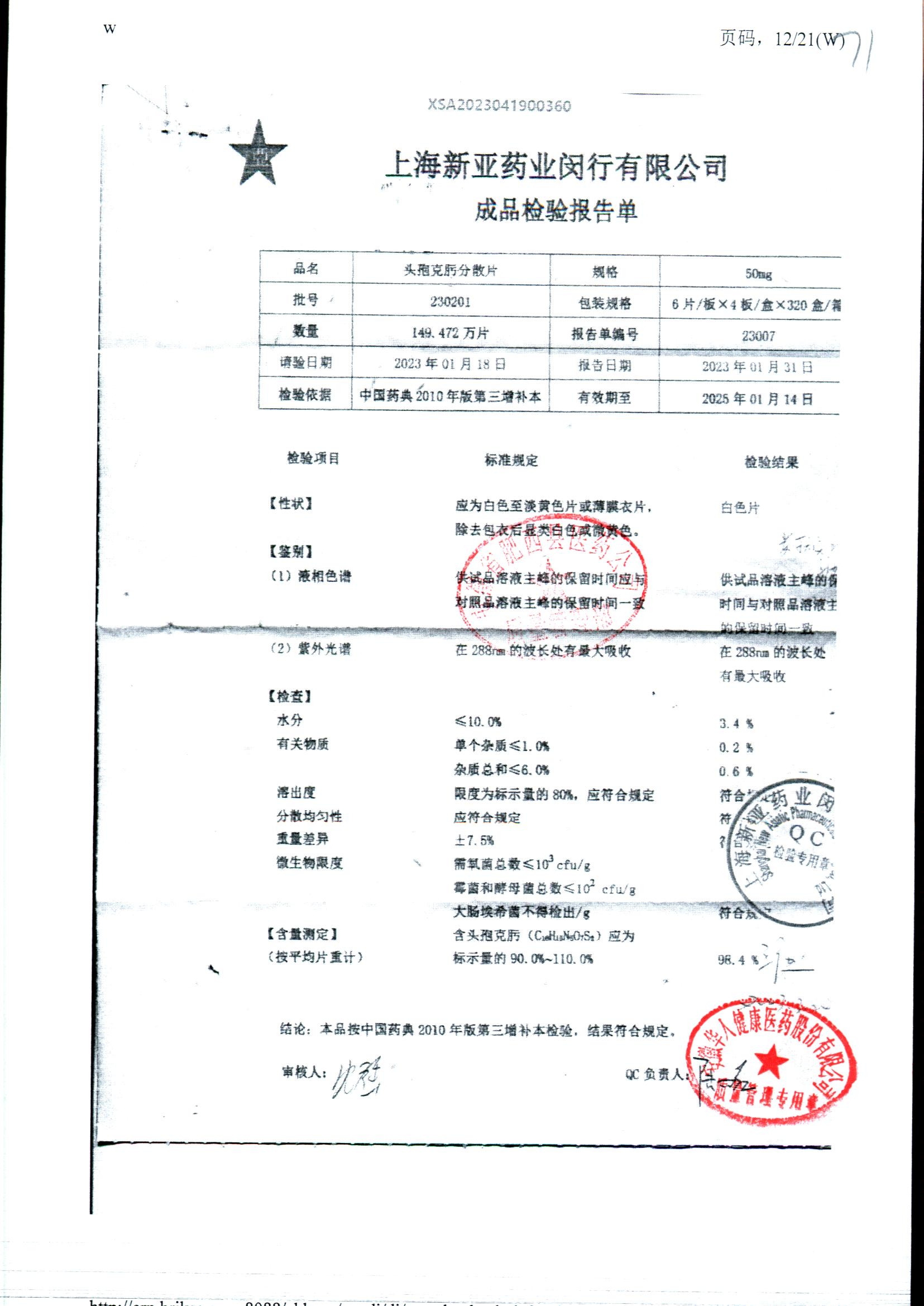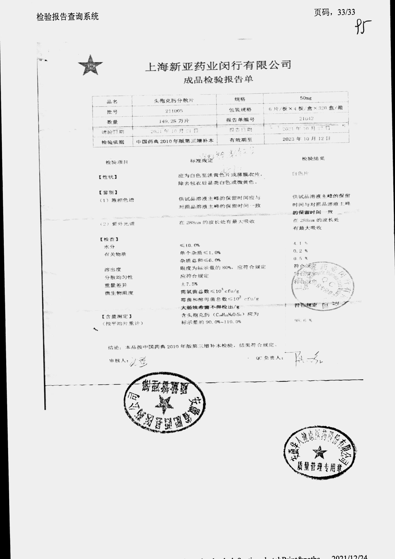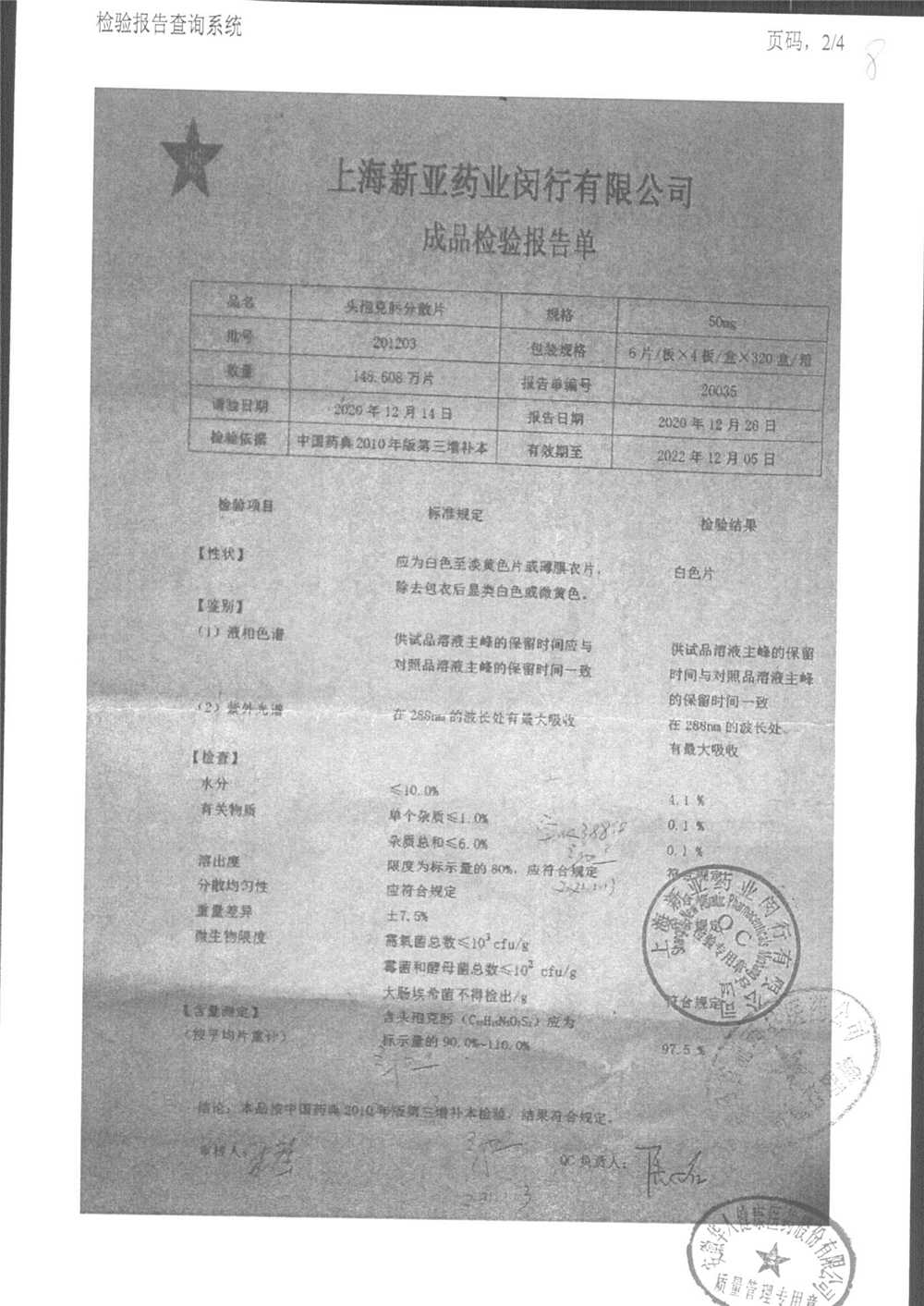 頭孢克肟分散片 | 50mg*24s | 210801 | 查看詳情 |