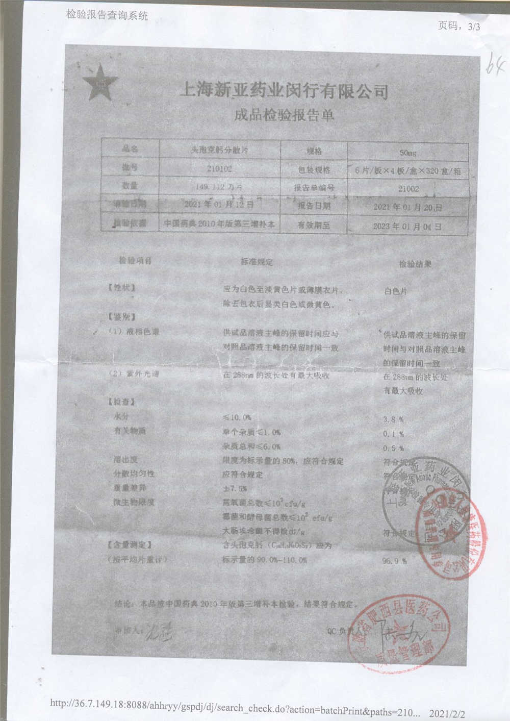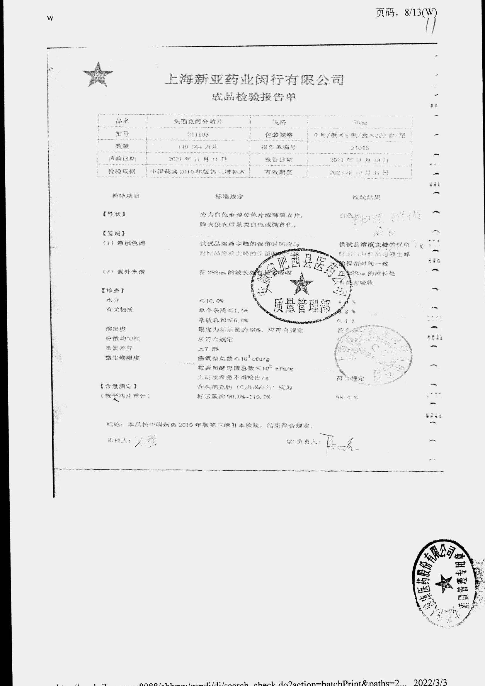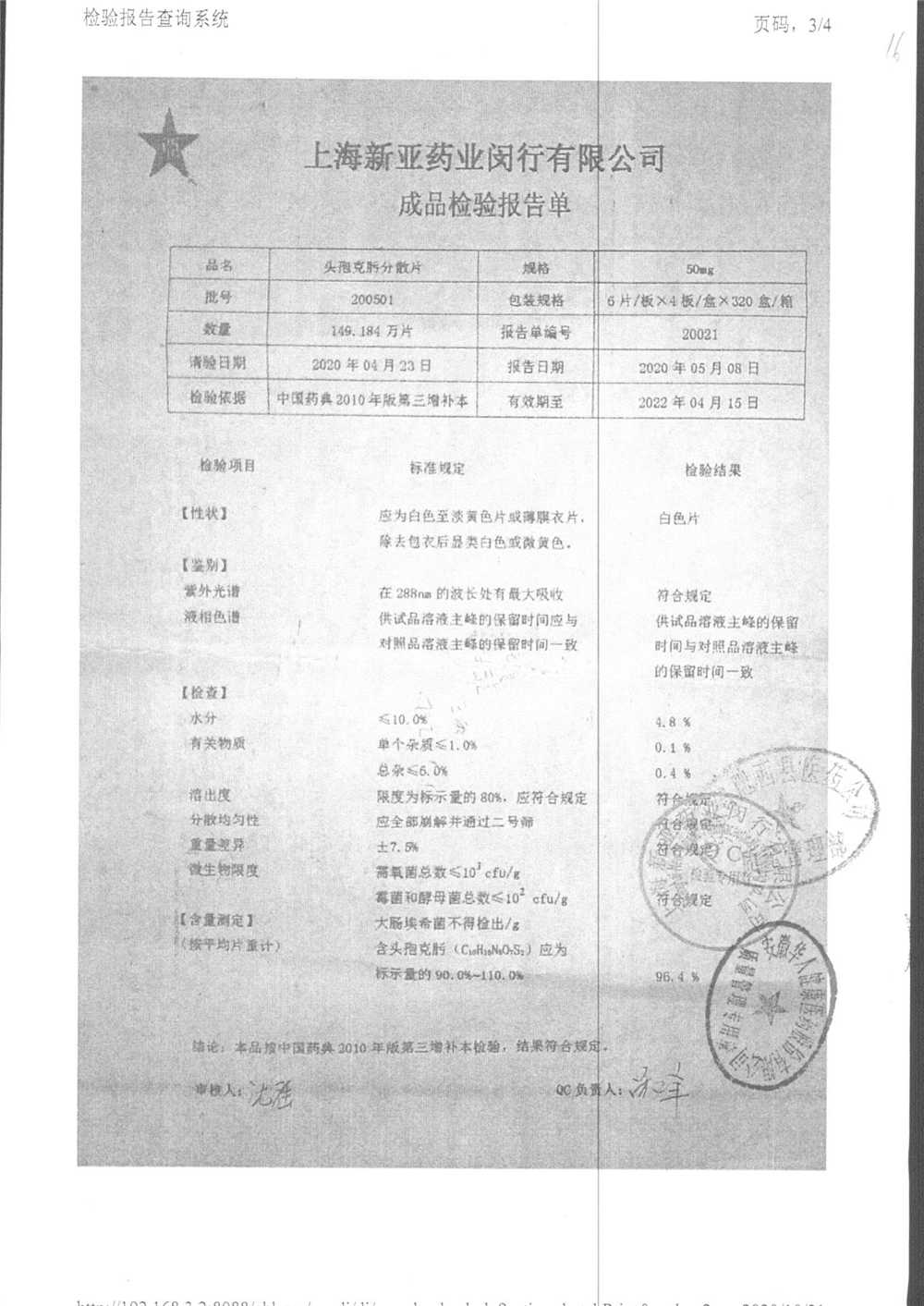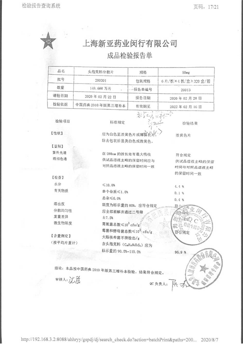 頭孢克肟分散片 | 50mg*24s | 210801 | 查看詳情 |
