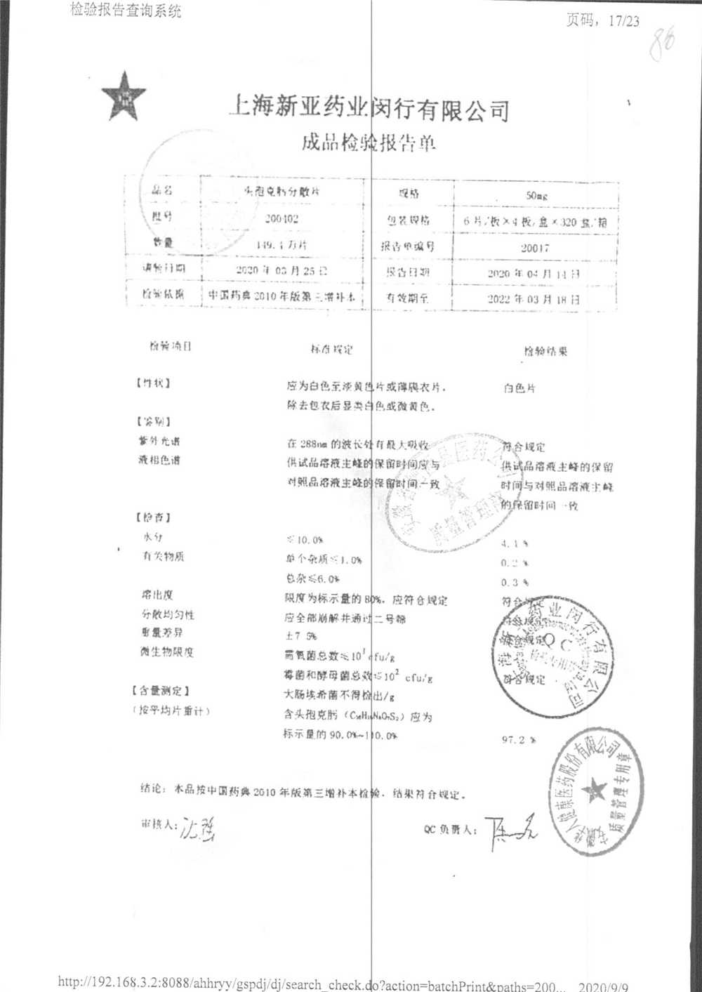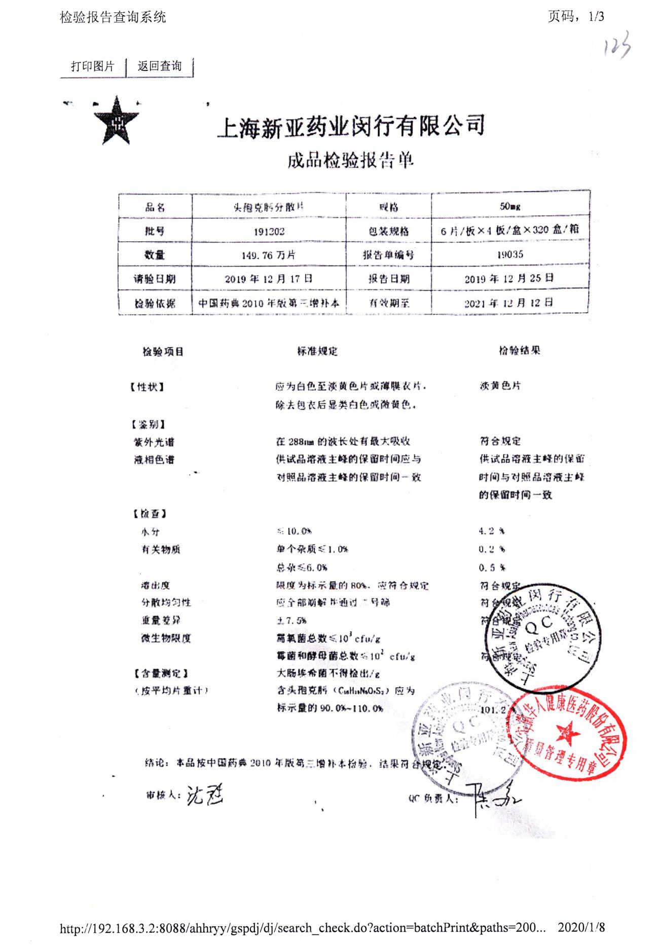 頭孢克肟分散片 | 50mg*24s | 201203 | 查看詳情 |