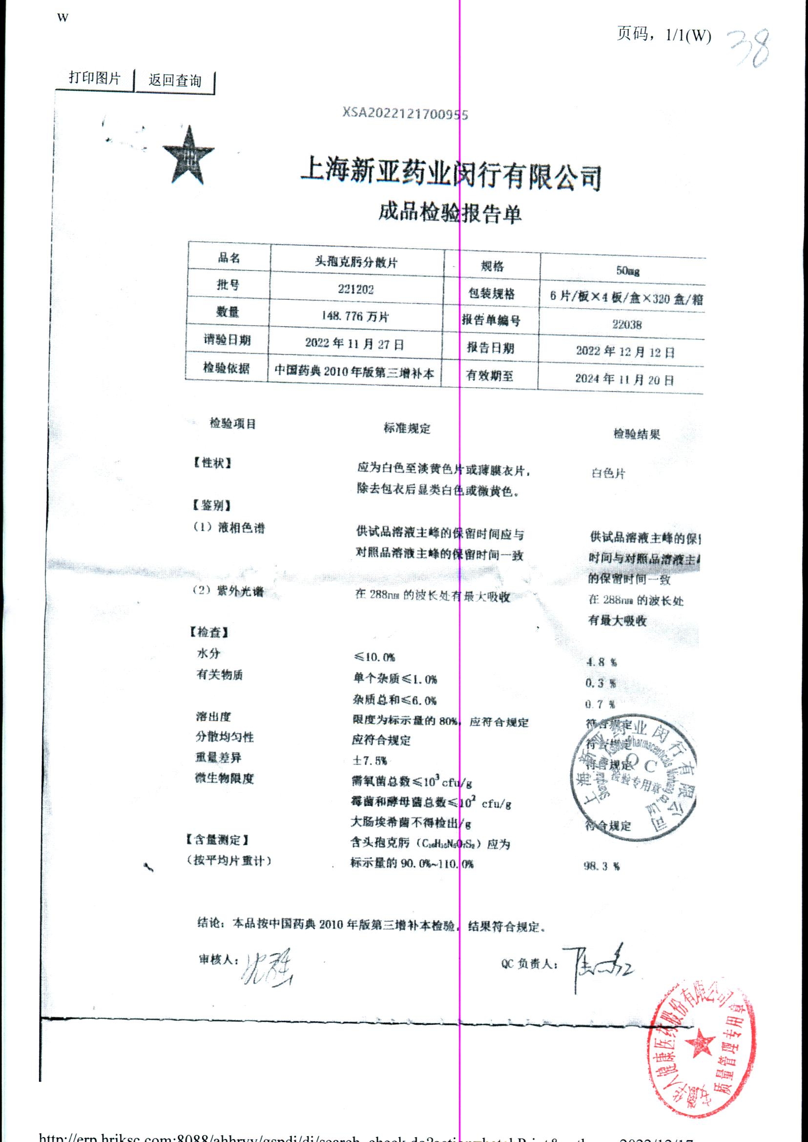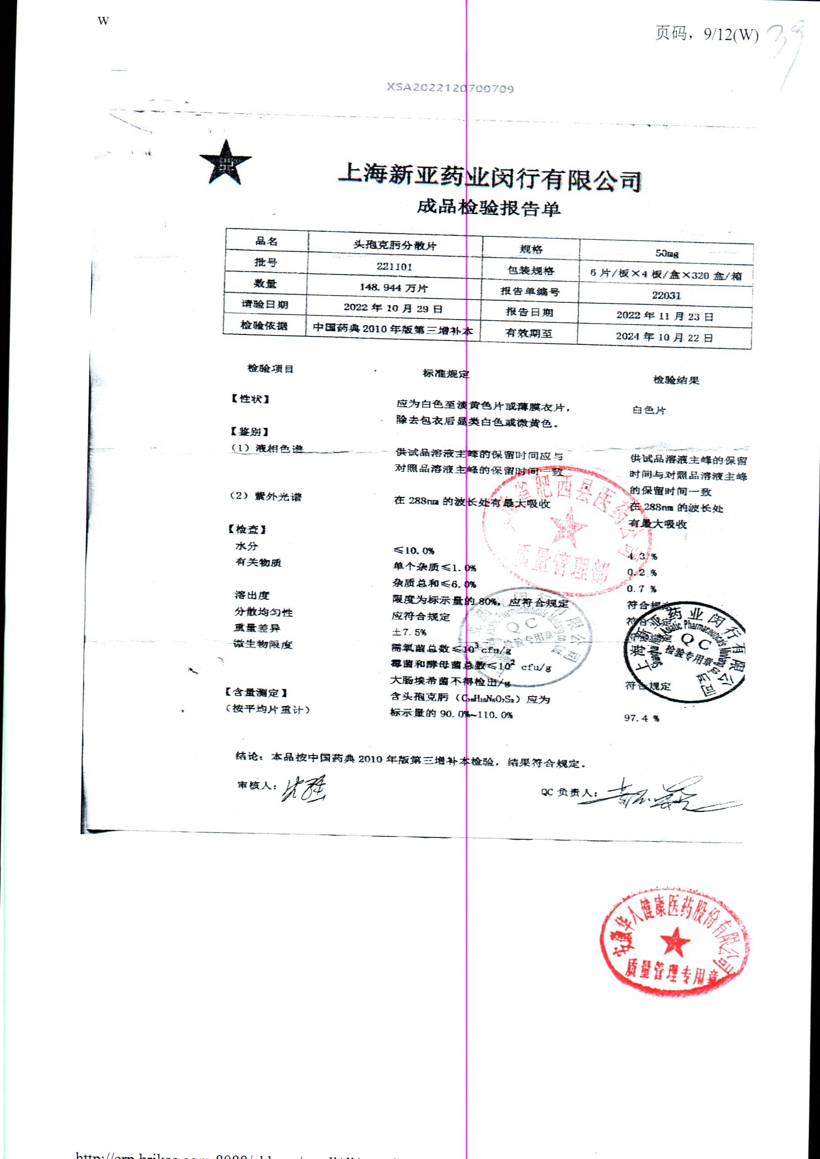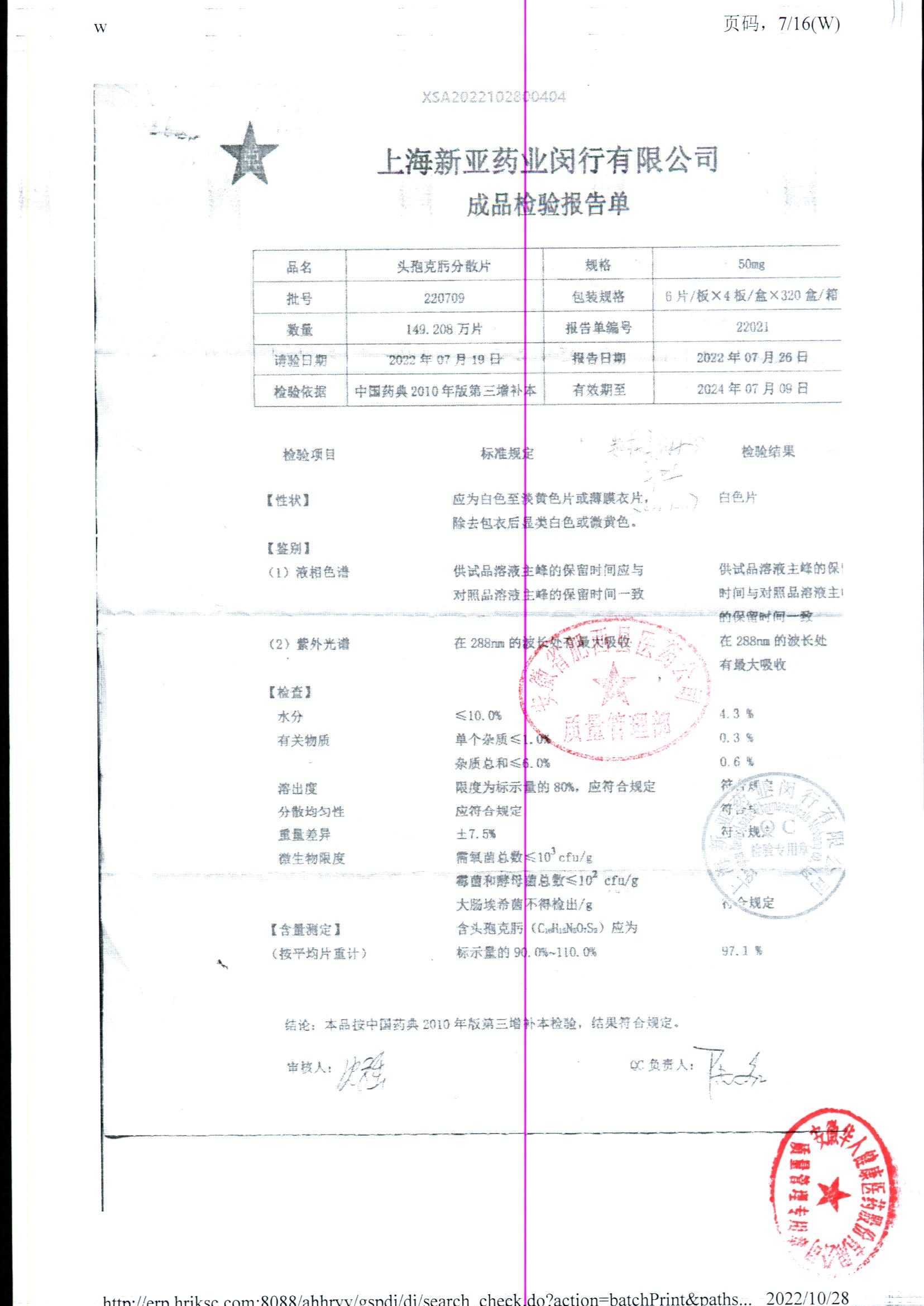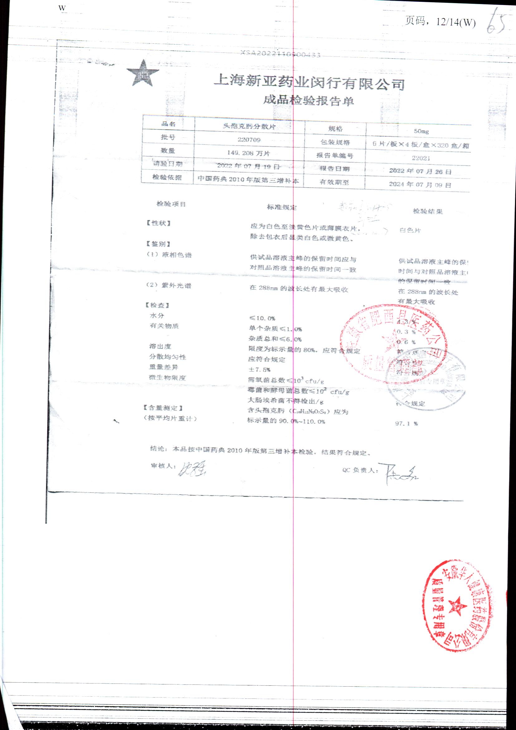 頭孢克肟分散片 | 50mg*24s | 220708 | 查看詳情 |