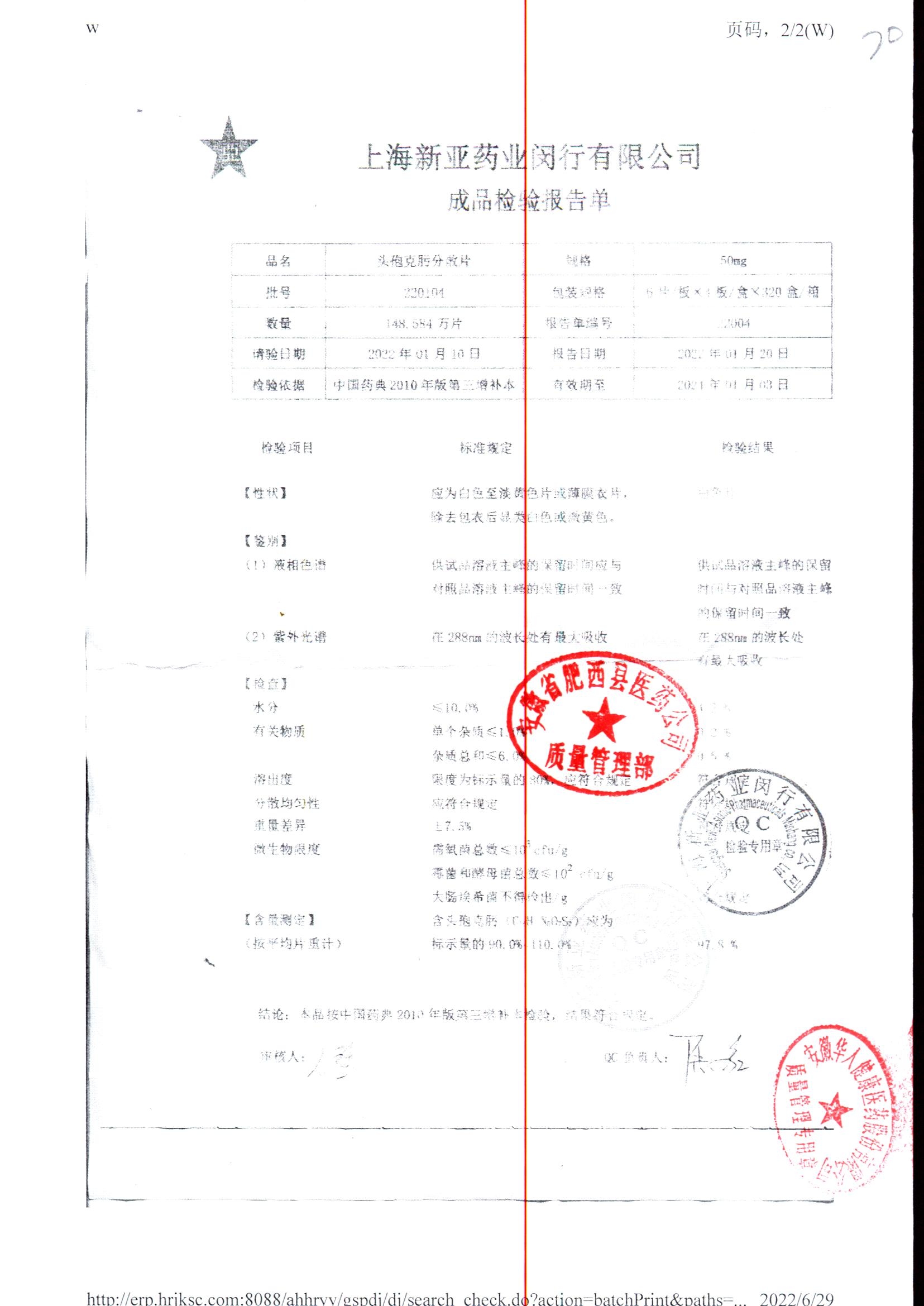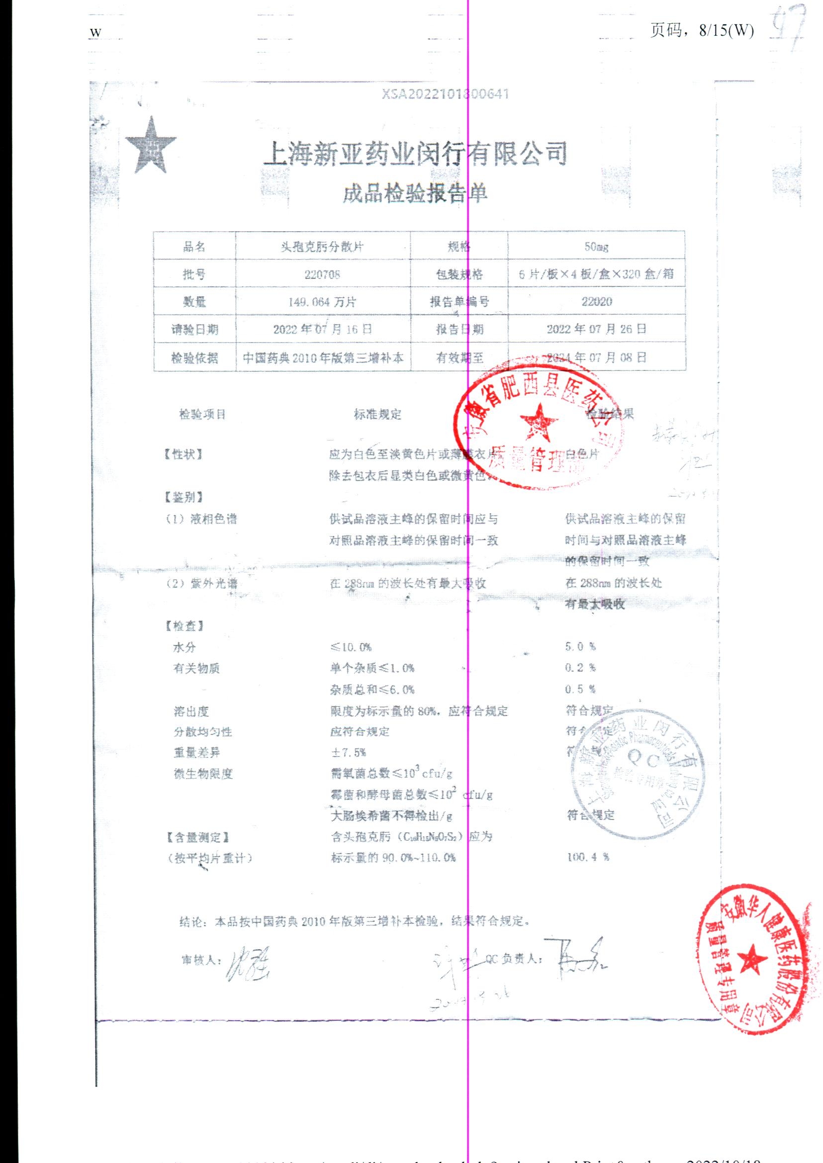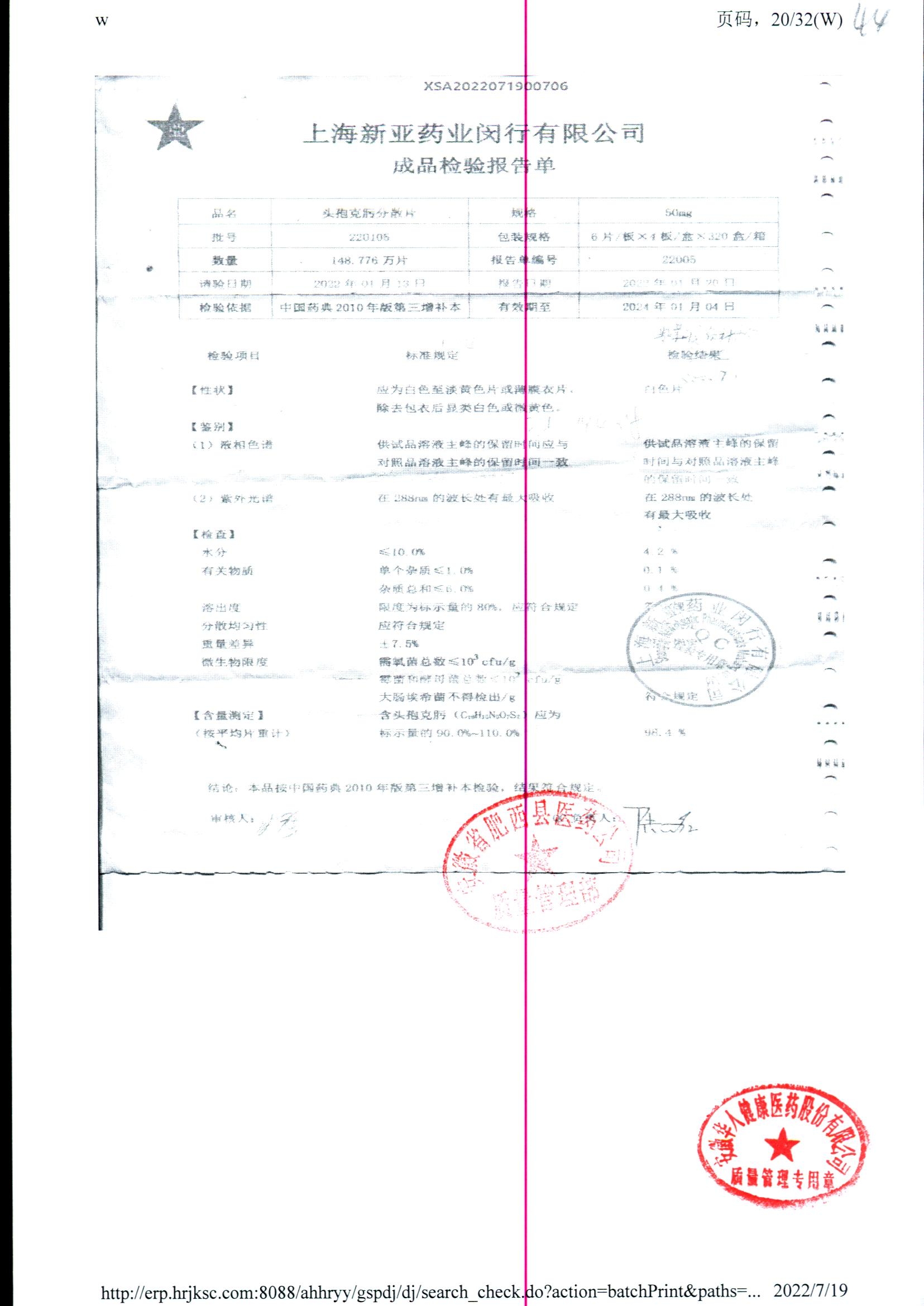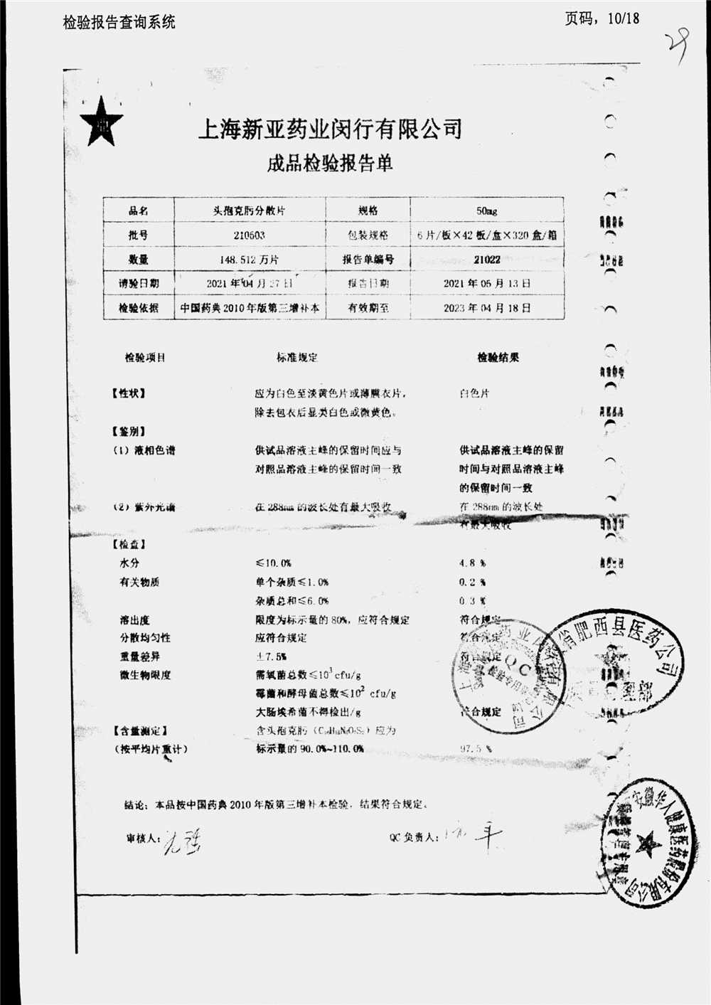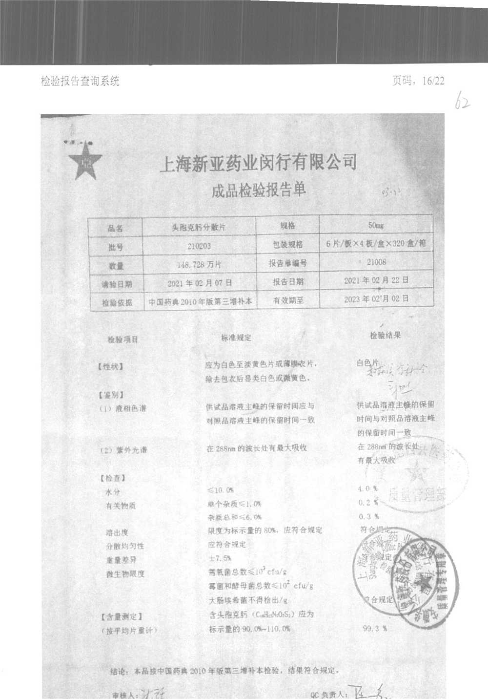 頭孢克肟分散片 | 50mg*24s | 220708 | 查看詳情 |