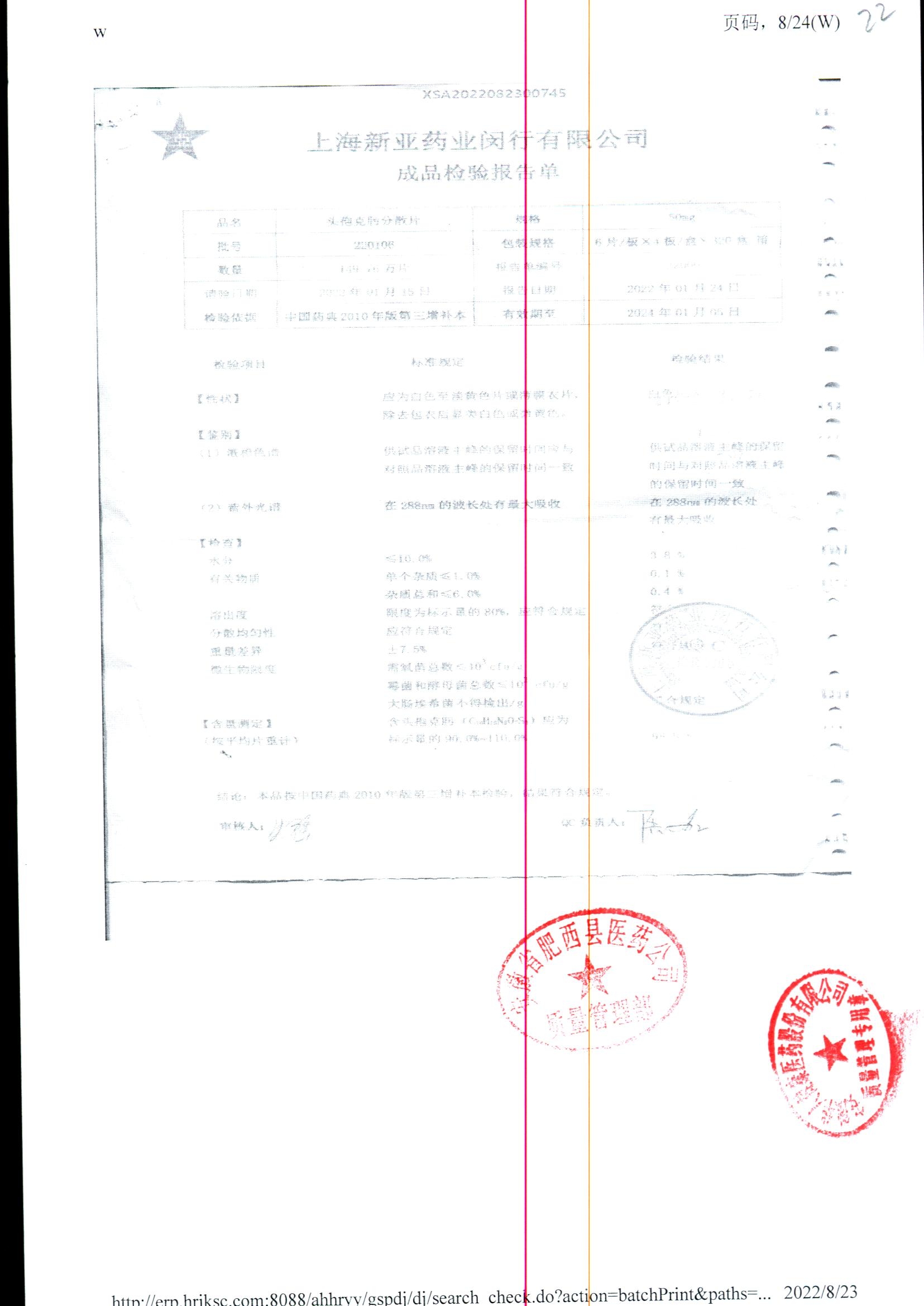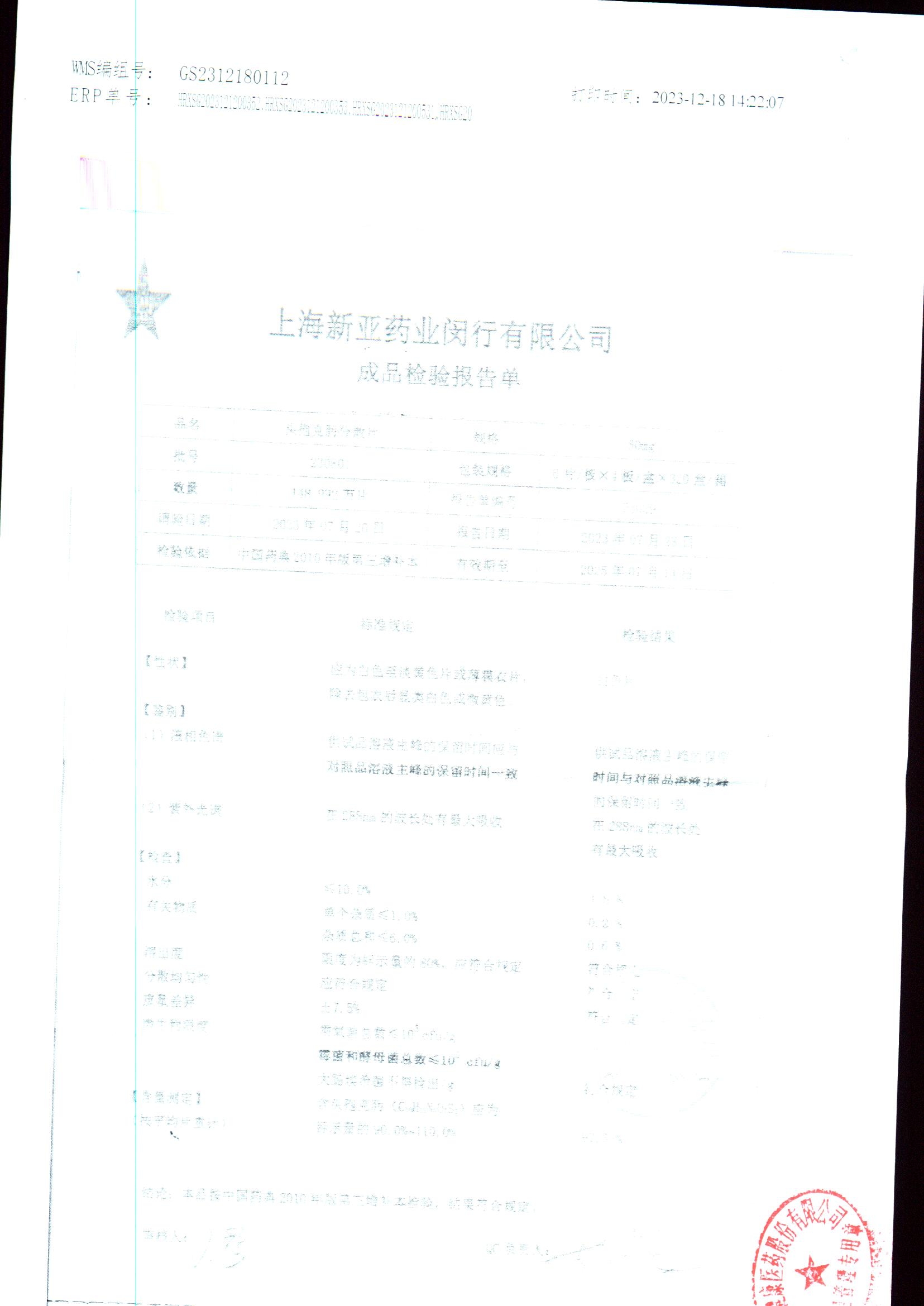 名稱 | 規(guī)格 | 批號 | 藥檢報告 |