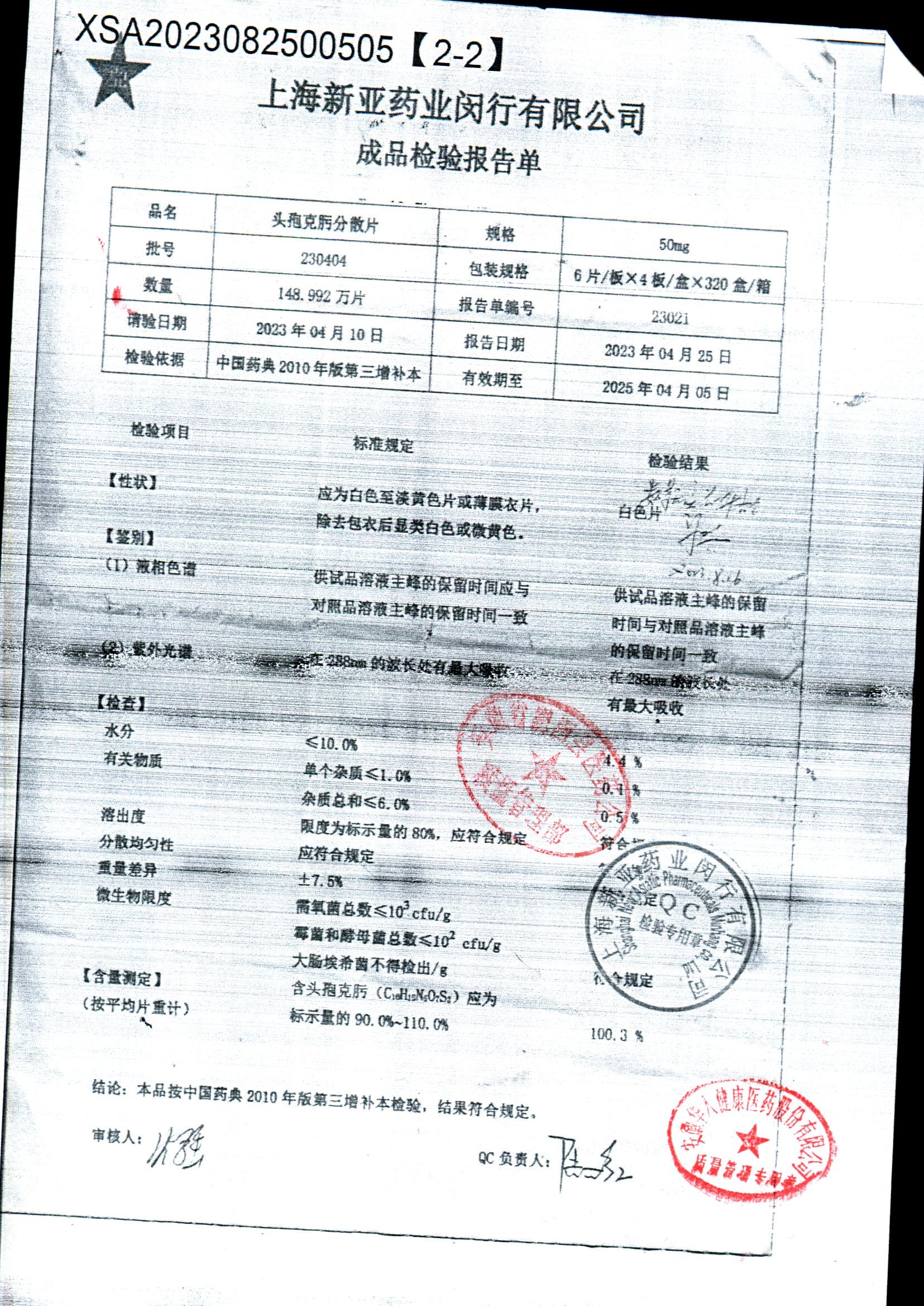 頭孢克肟分散片 | 50mg*24s | 230404 | 查看詳情 |