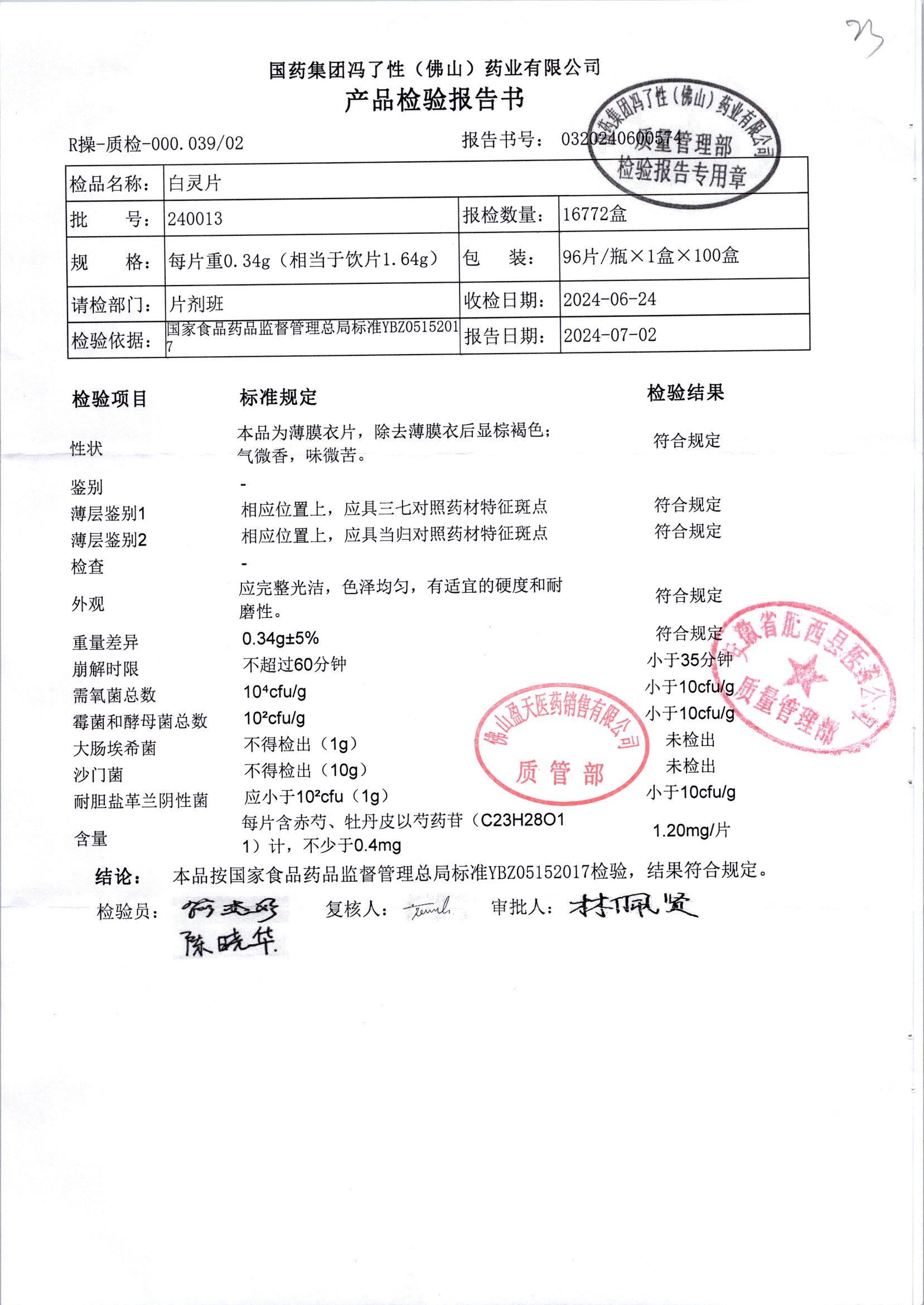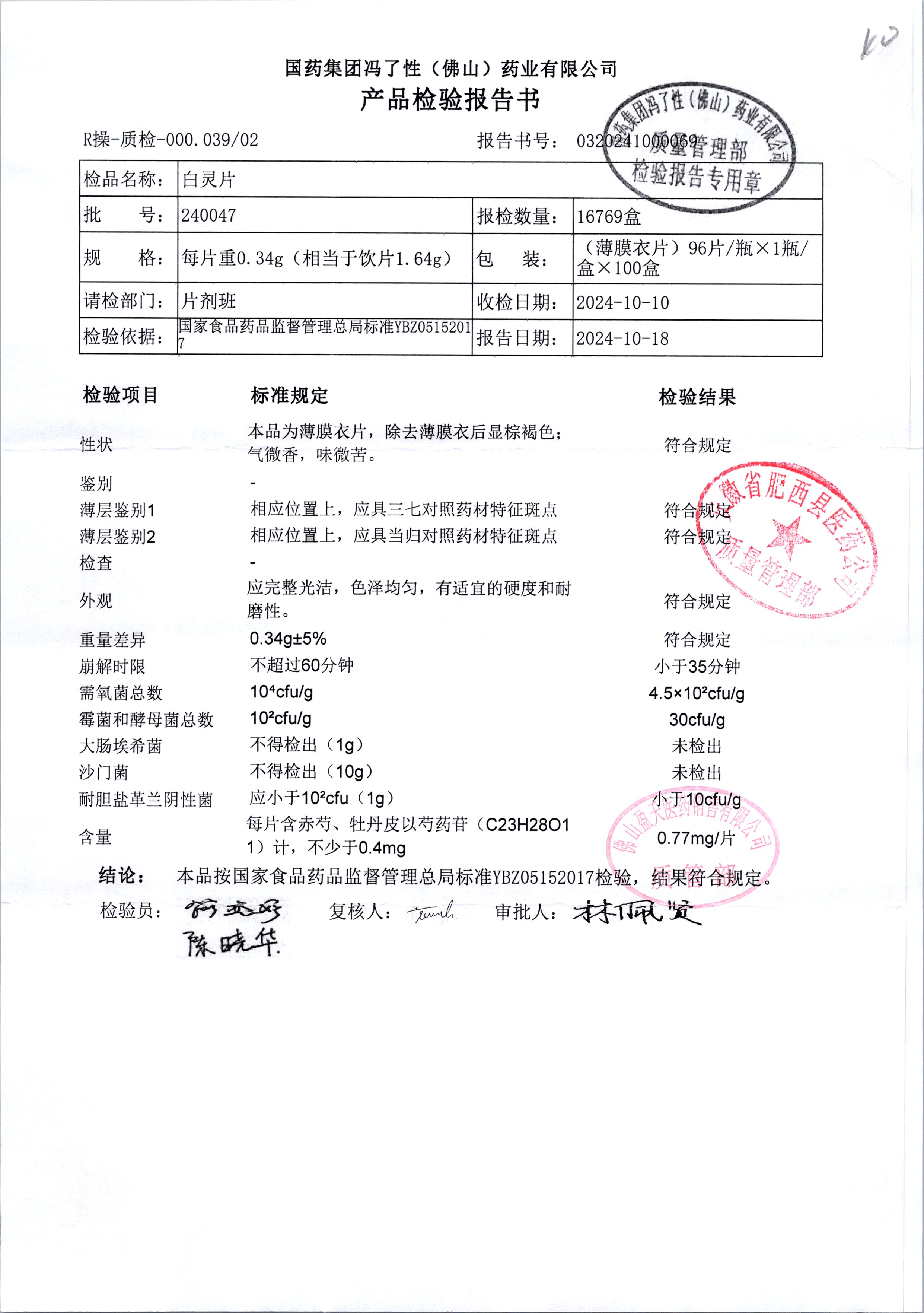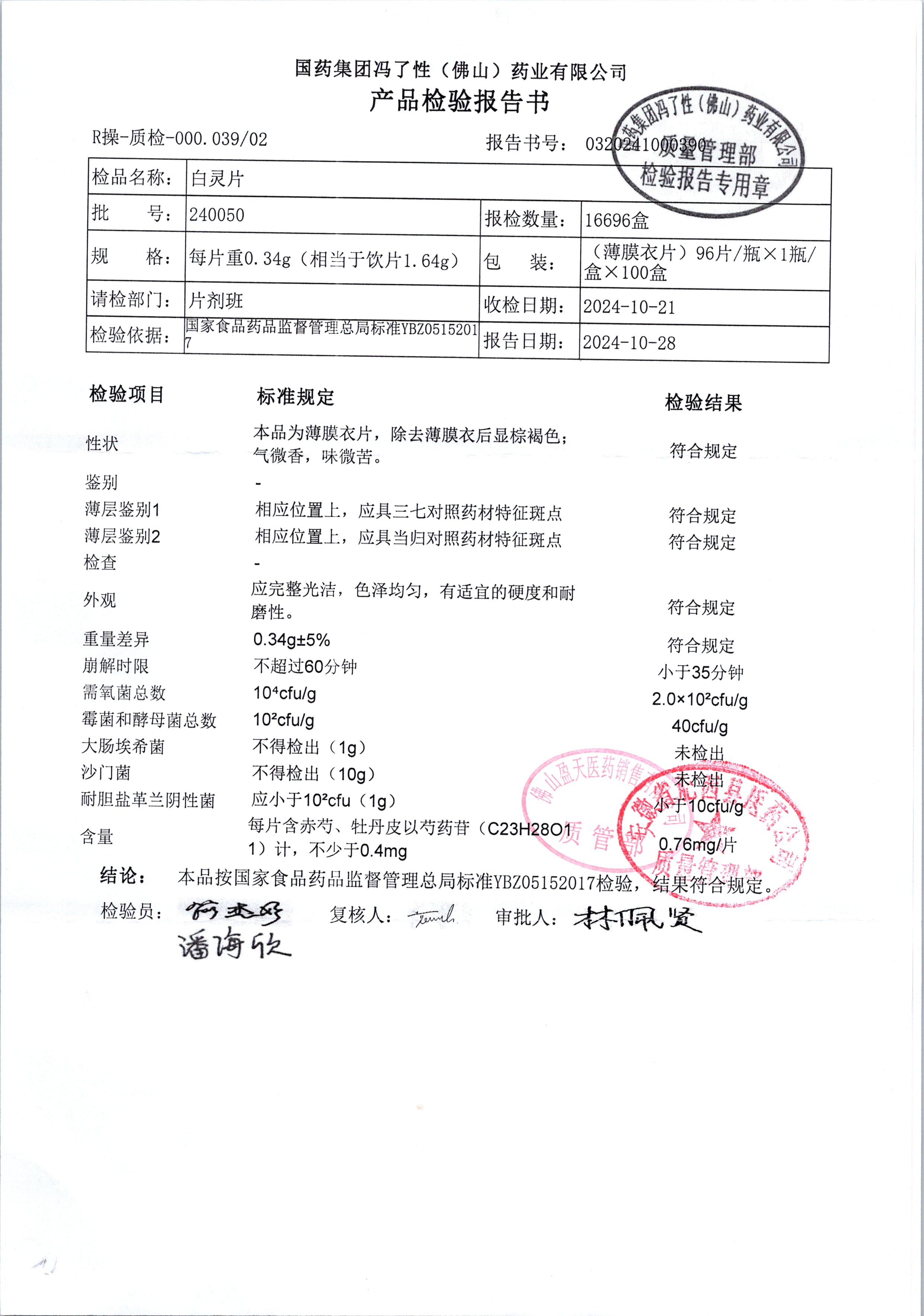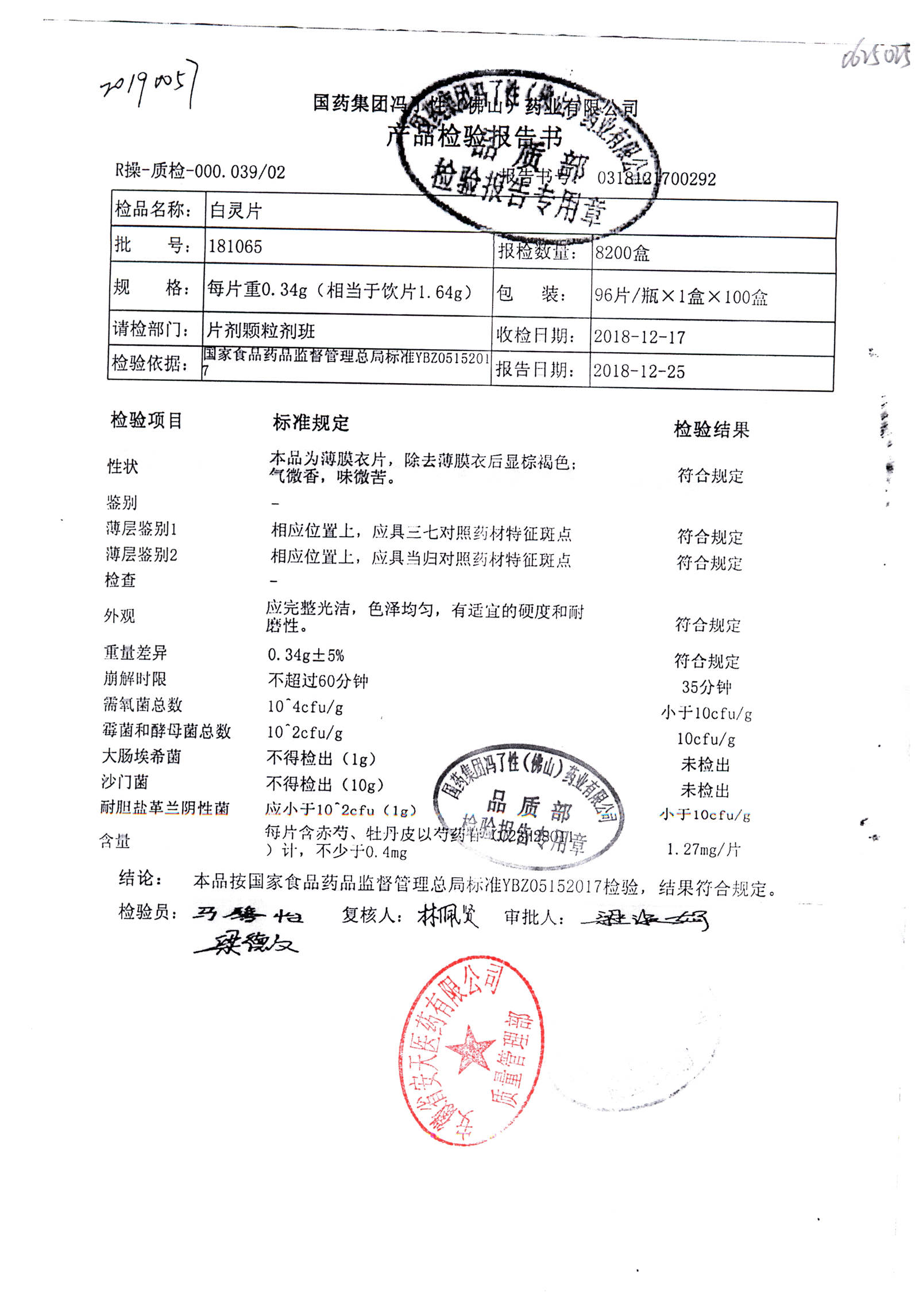名稱 | 規(guī)格 | 批號 | 藥檢報(bào)告 |
