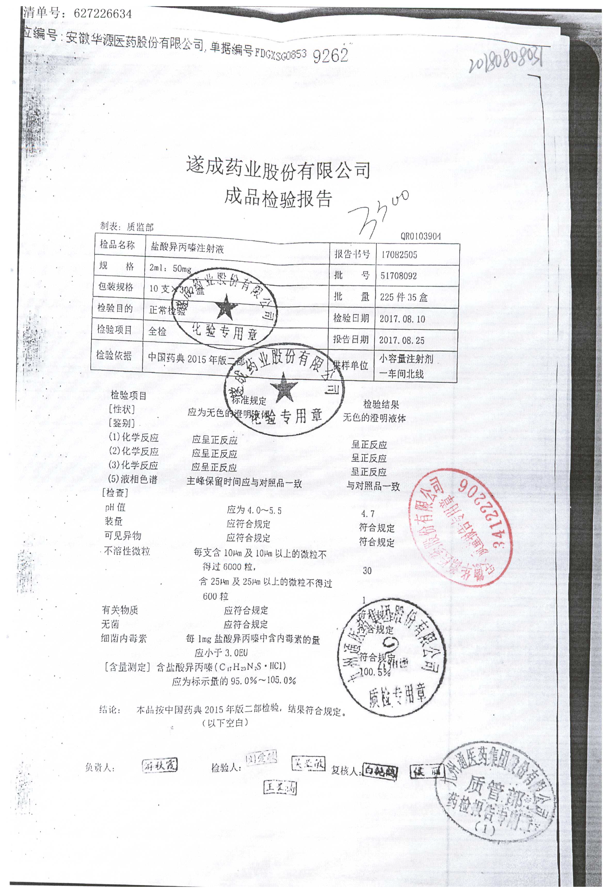 鹽酸異丙嗪注射液 2ml:50mg 1703301 查看詳情
