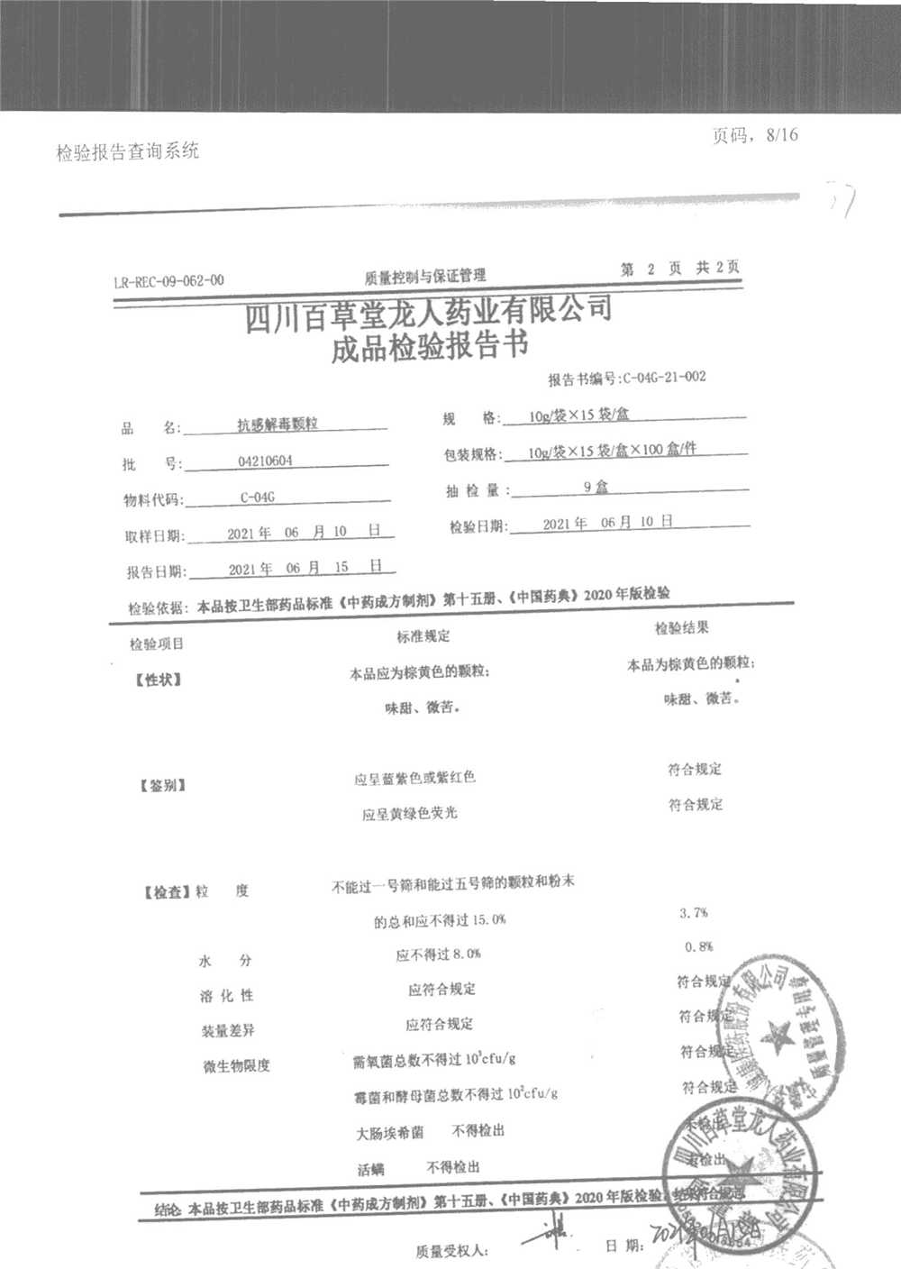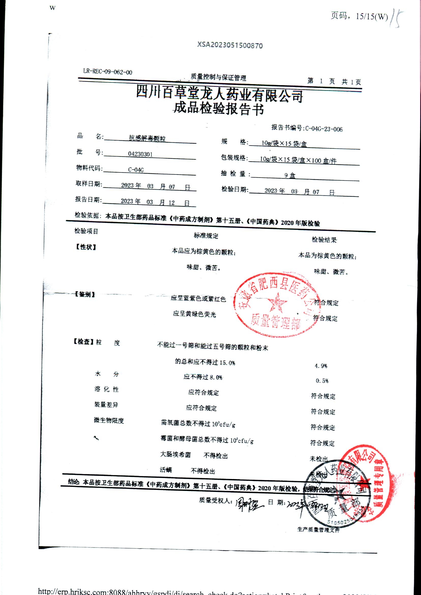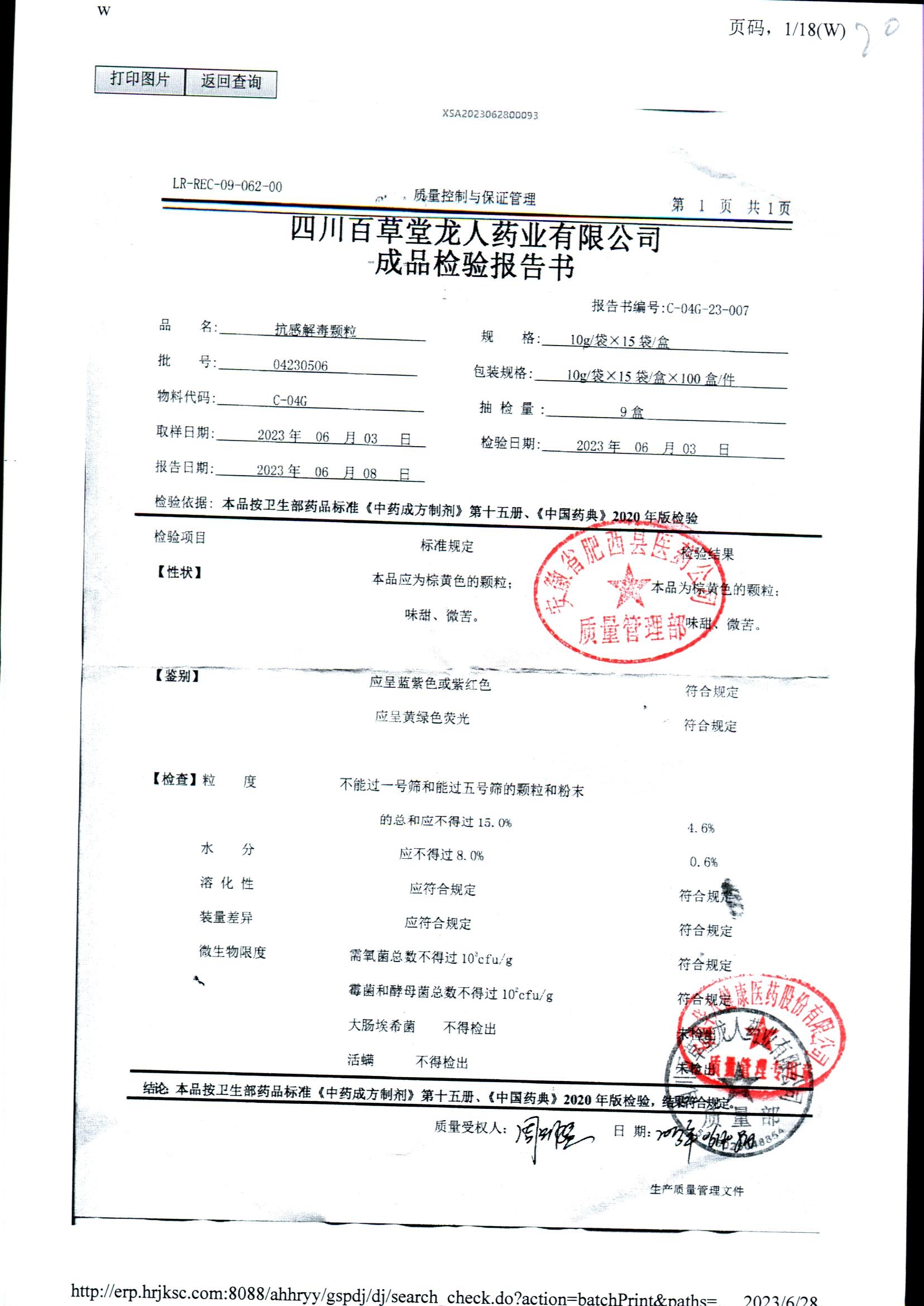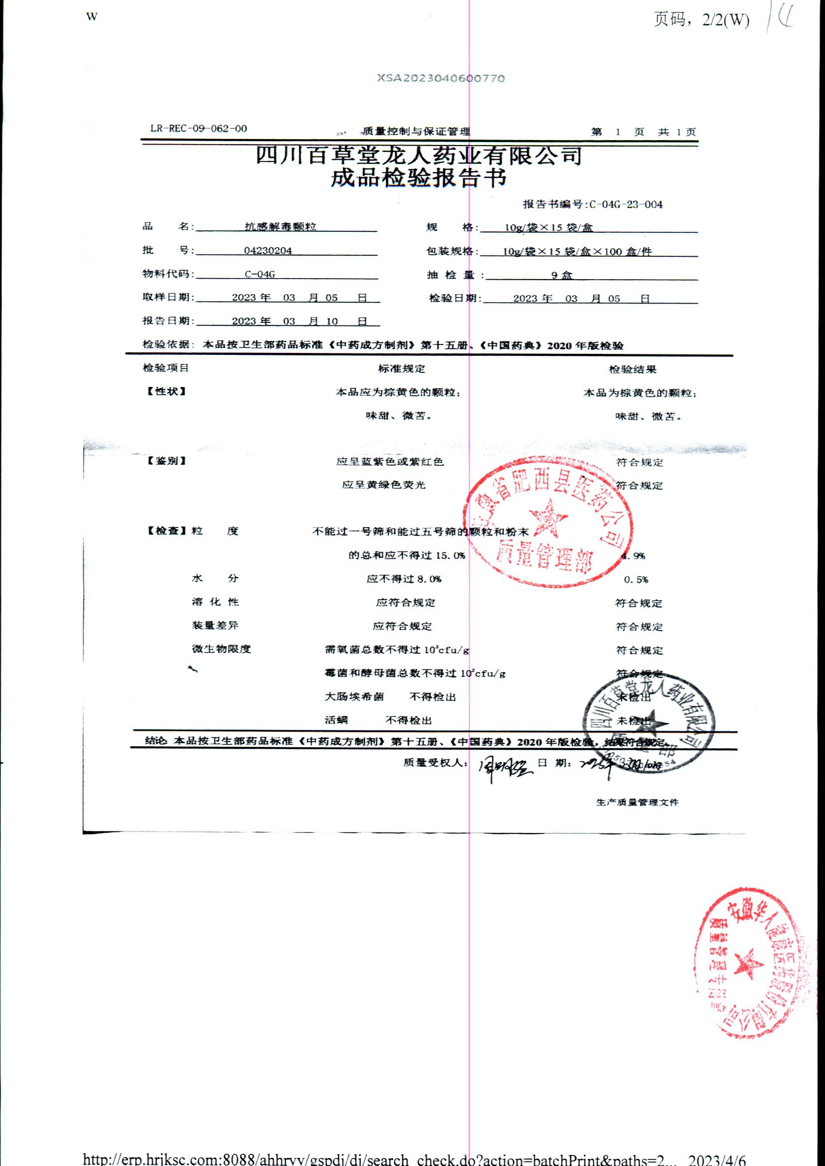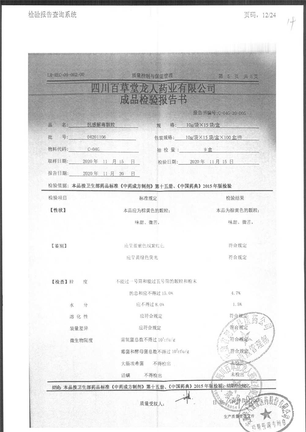 抗感解毒顆粒 | 10g*15袋 | 04180104 | 查看詳情 |