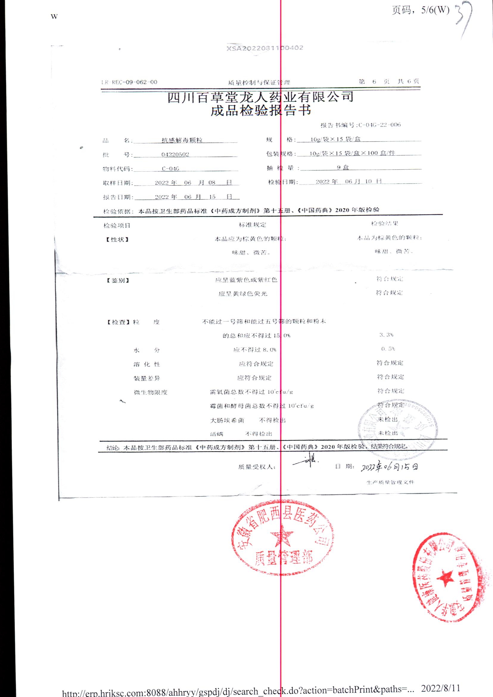 抗感解毒顆粒 | 10g*15袋 | 04220903 | 查看詳情 |