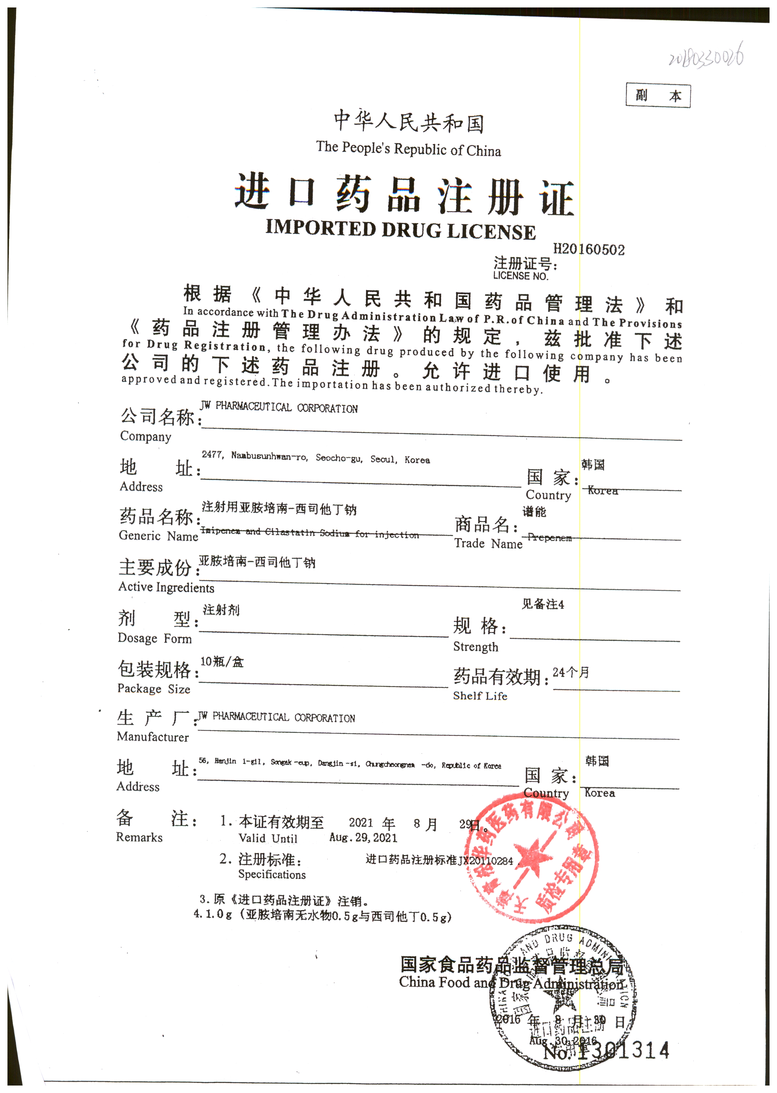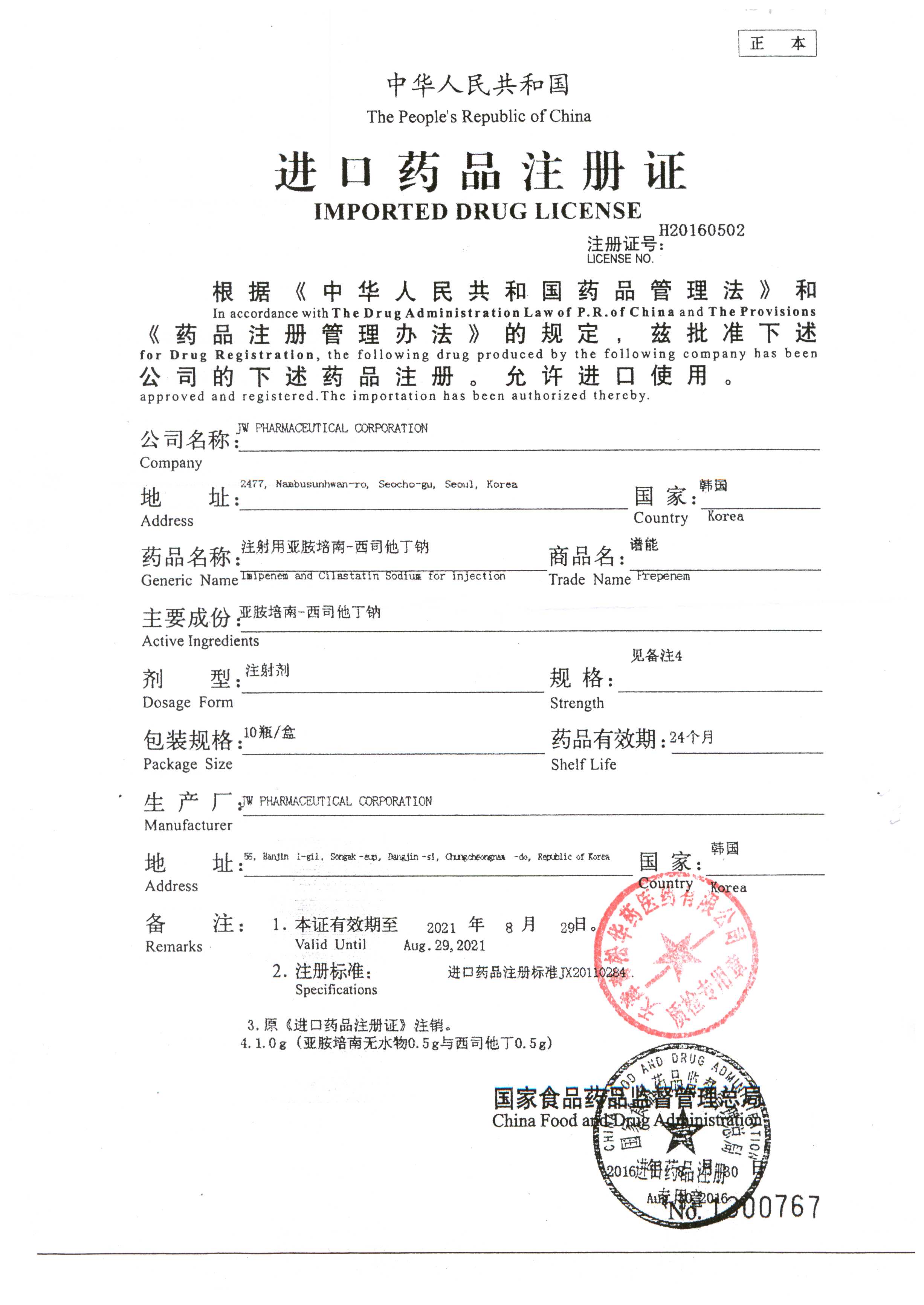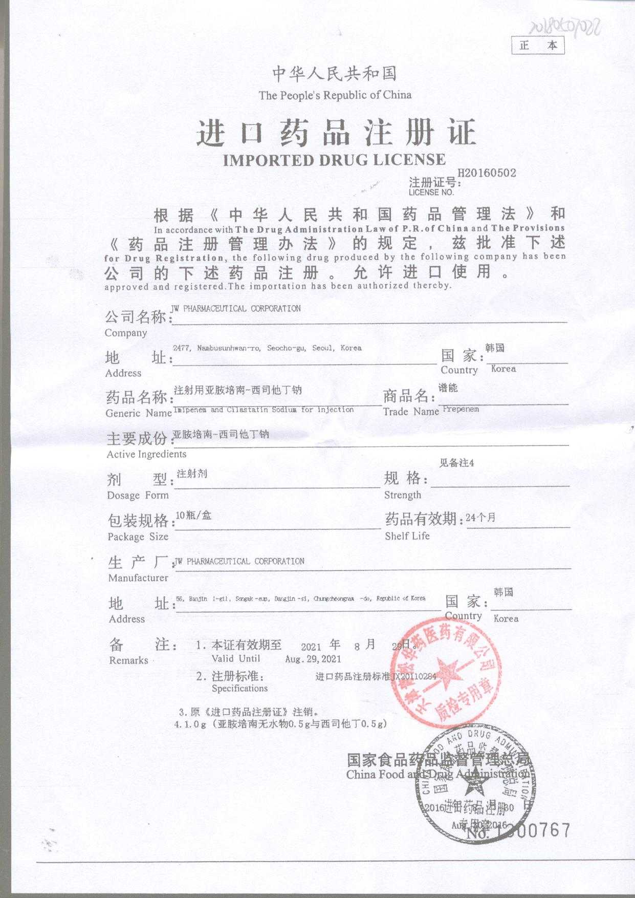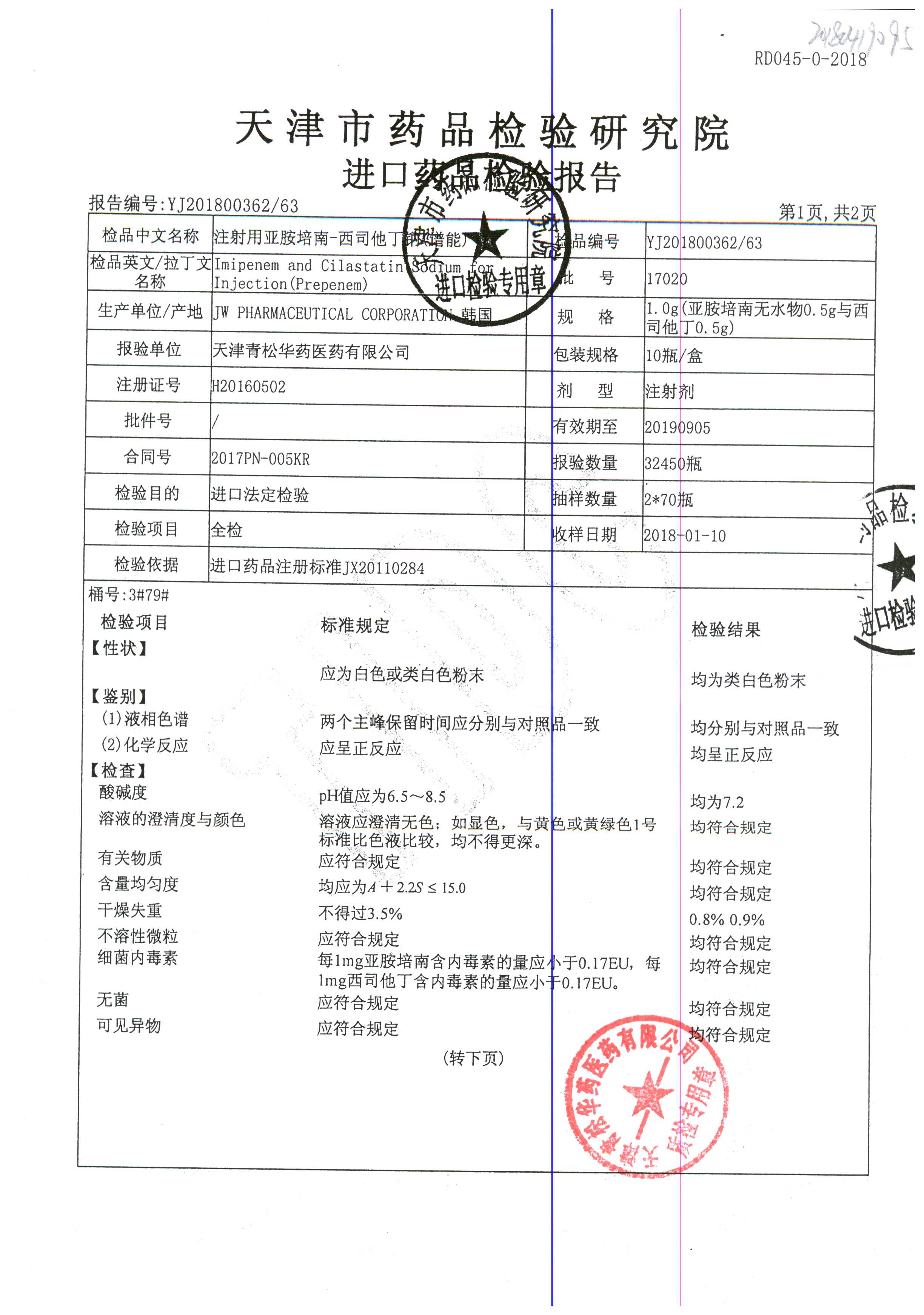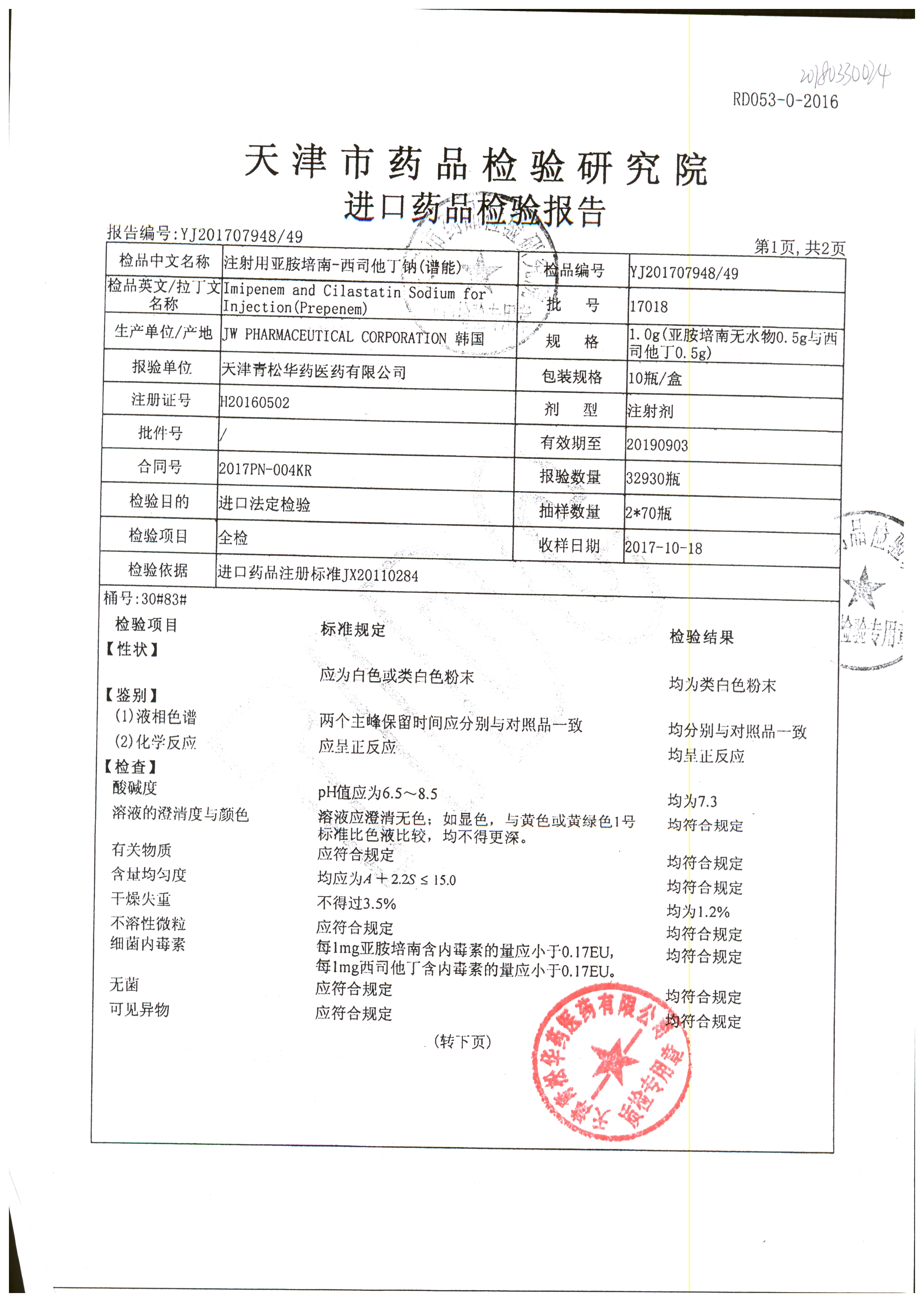 注射用亞胺培南-西司他丁鈉 | 1g*10瓶 | 17025(4/4) | 查看詳情 |
