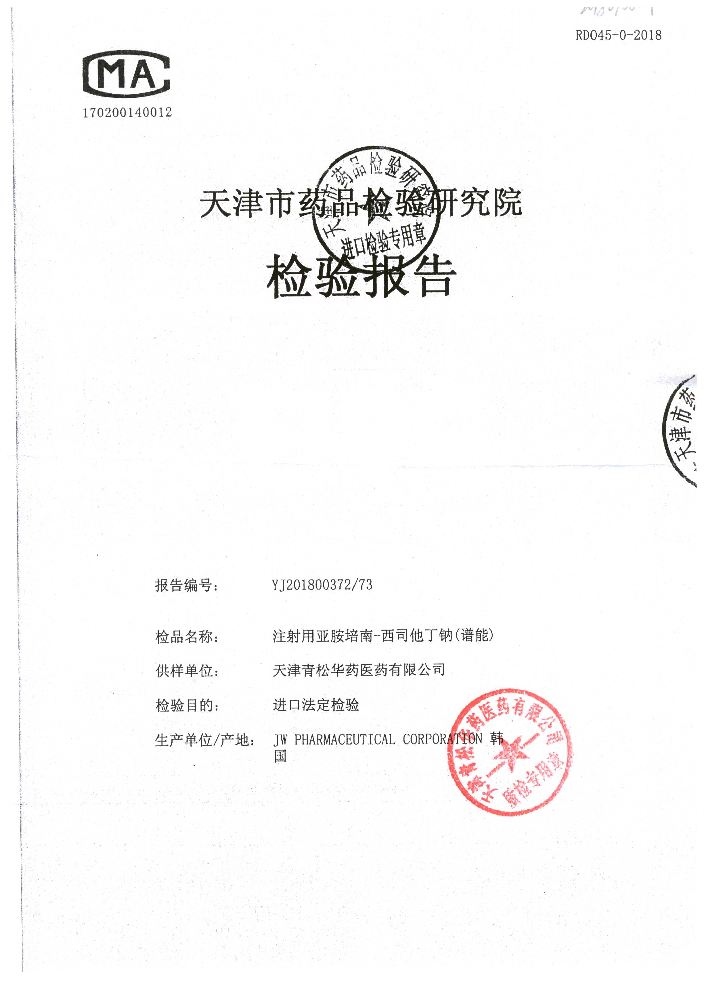 注射用亞胺培南-西司他丁鈉 | 1g*10瓶 | 17025(3/4) | 查看詳情 |