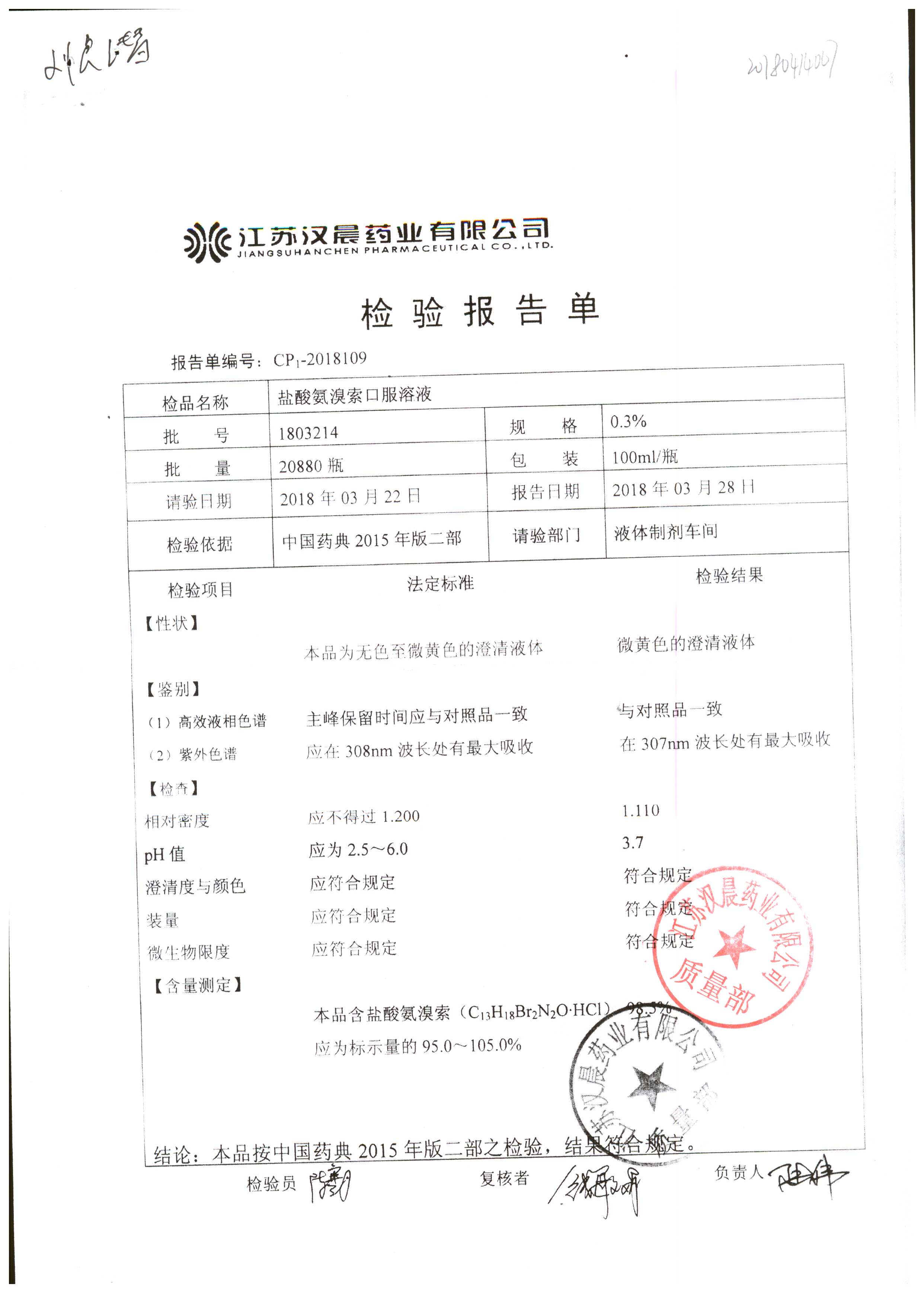 鹽酸氨溴索口服溶液 | 100ml | 1801222 | 查看詳情 |