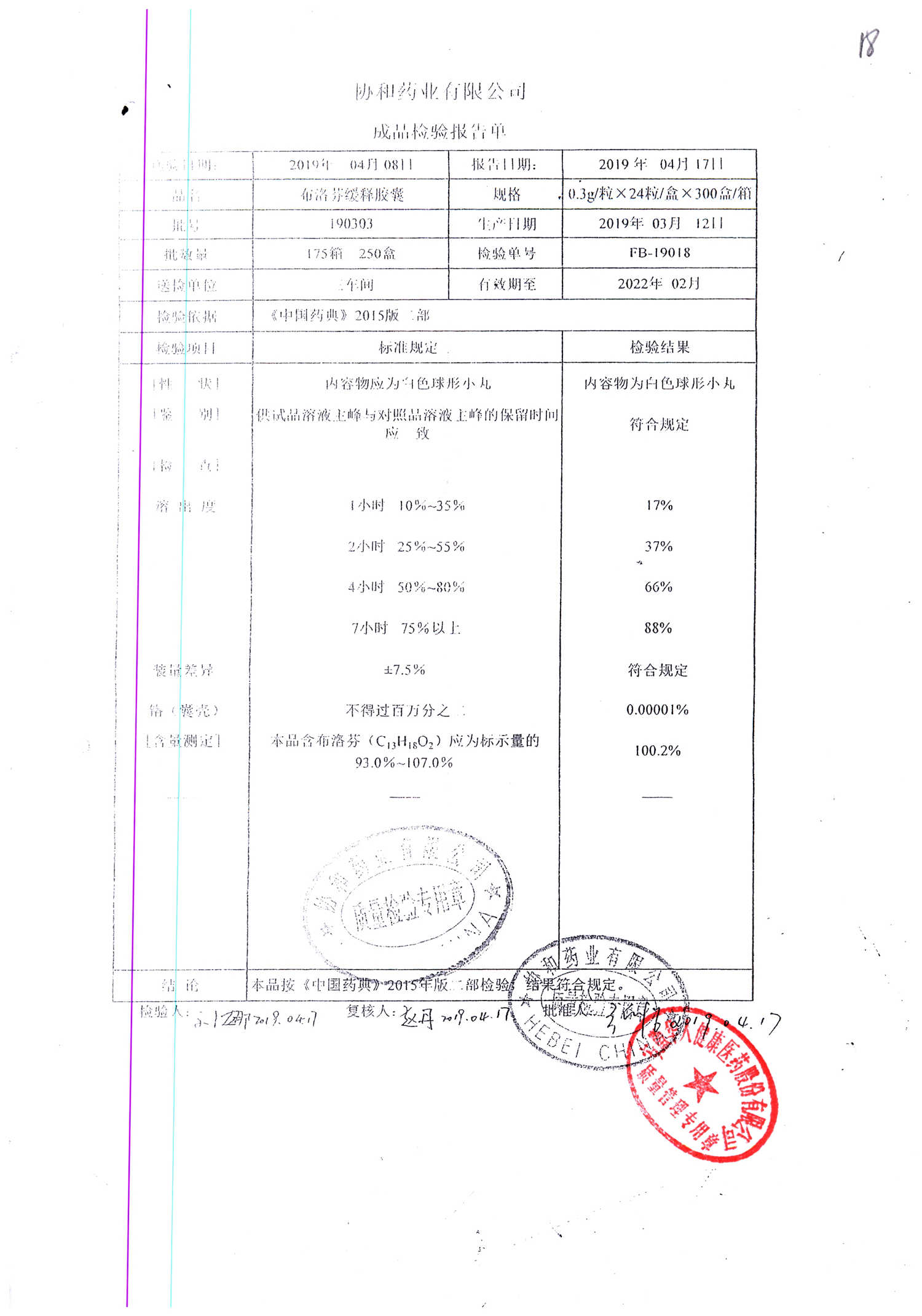 布洛芬緩釋膠囊 | 0.3g*24s | 191207 | 查看詳情 |