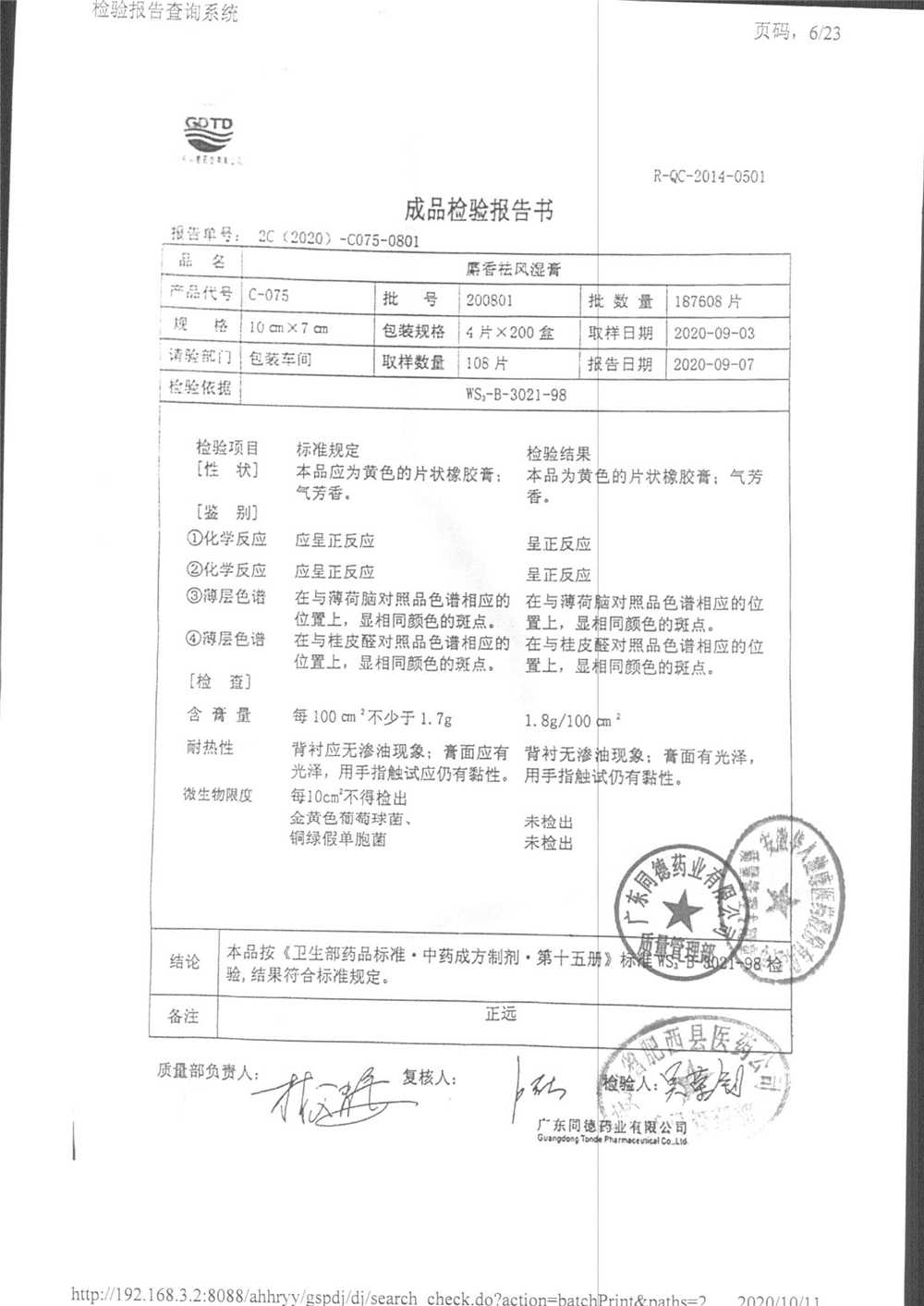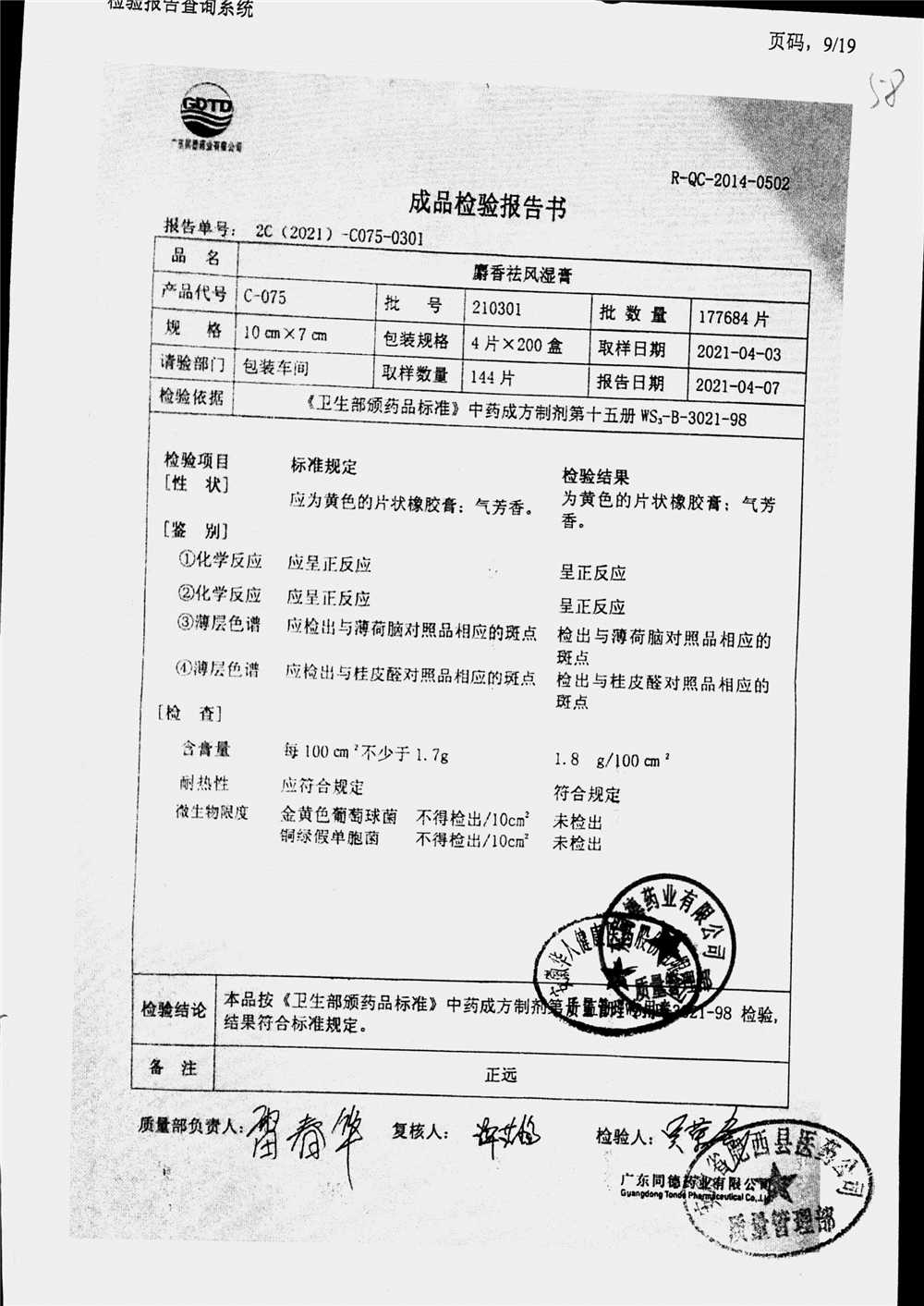 麝香祛風(fēng)濕膏 | 10cm*7cm*4片 | 20181001 | 查看詳情 |