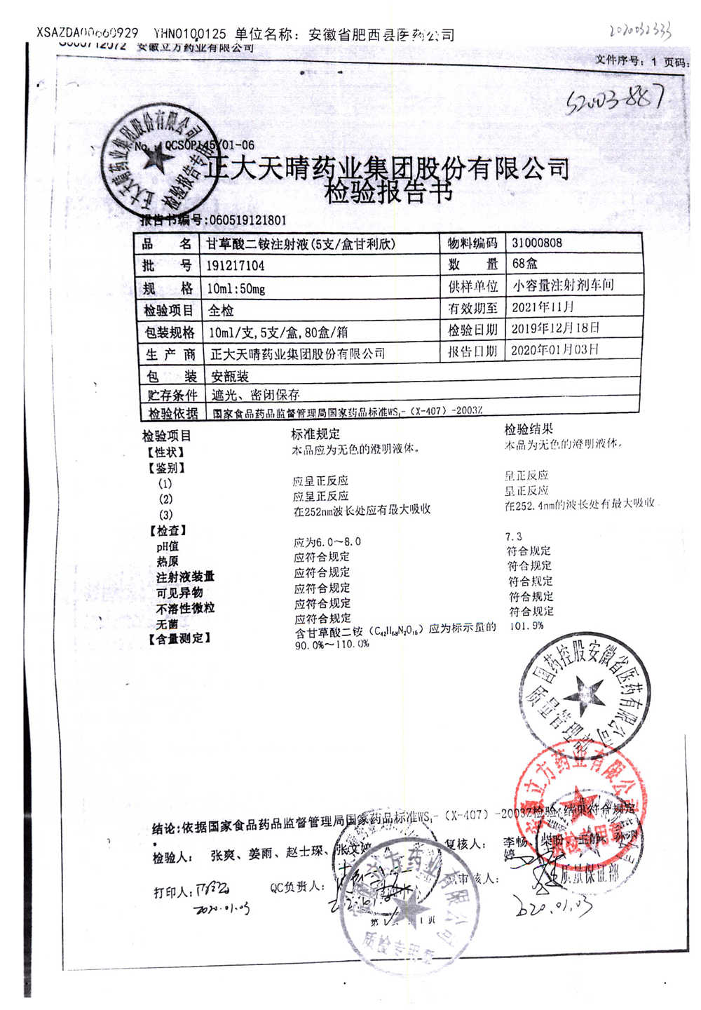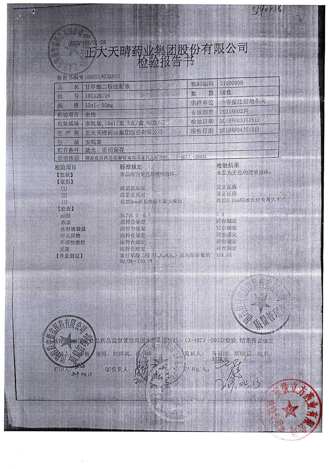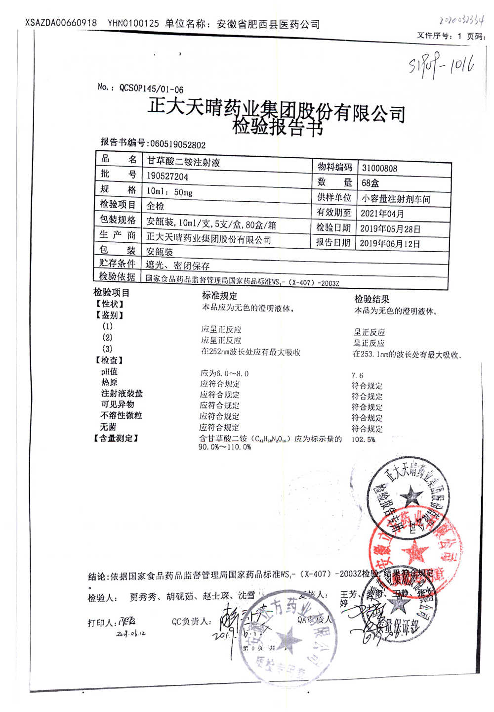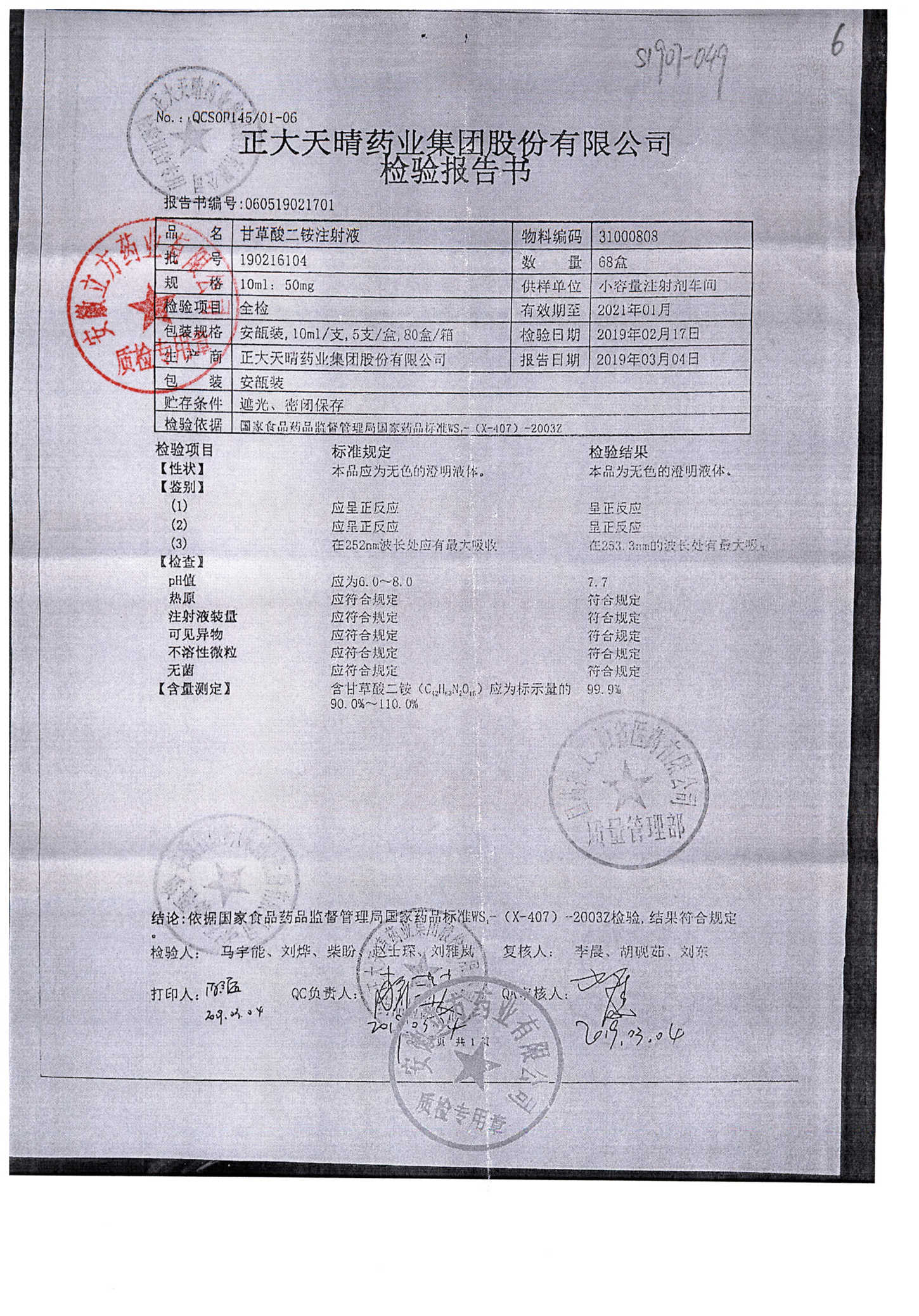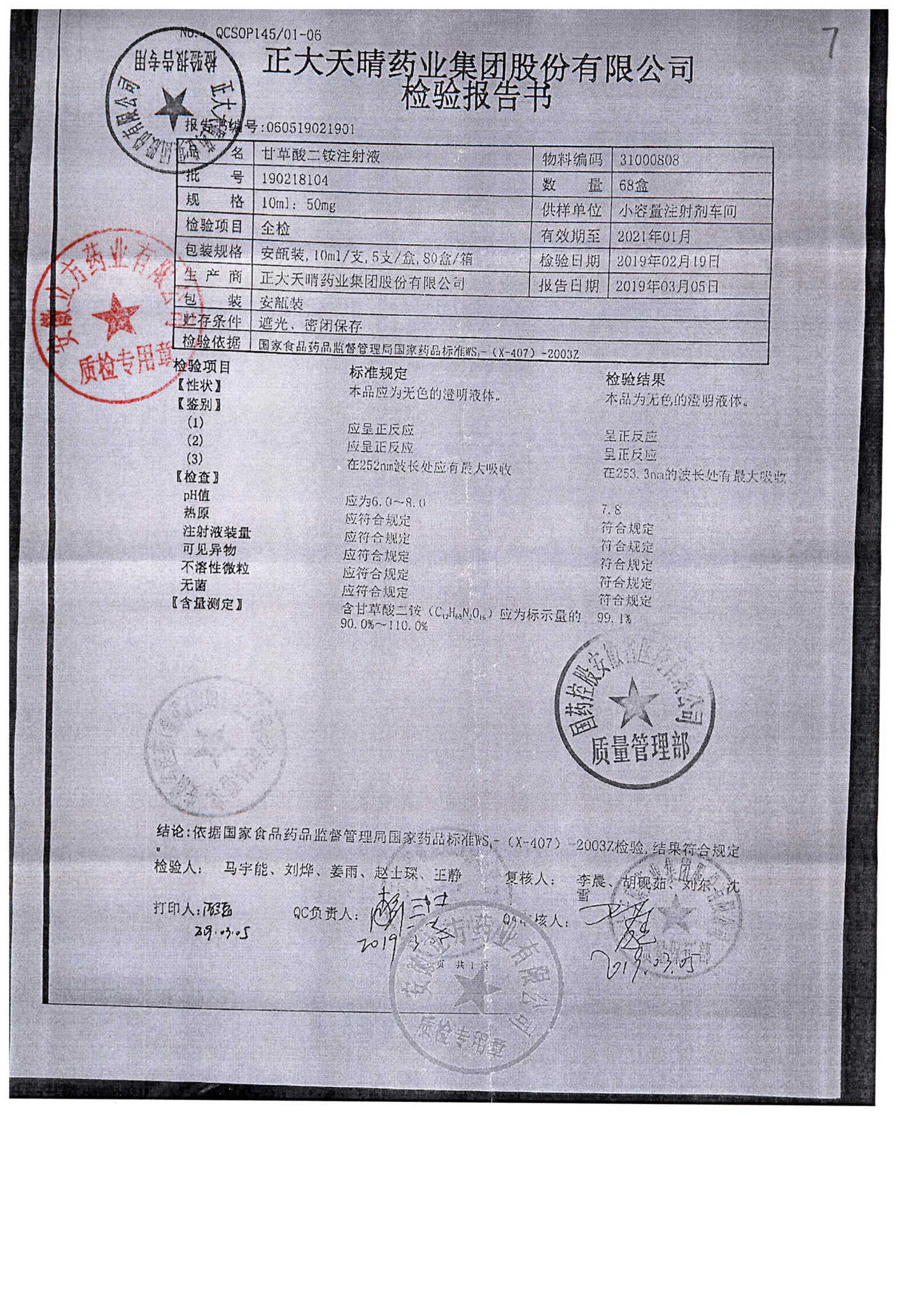 甘草酸二胺注射液 | 10ml:50mg | 190218104 | 查看詳情 |
