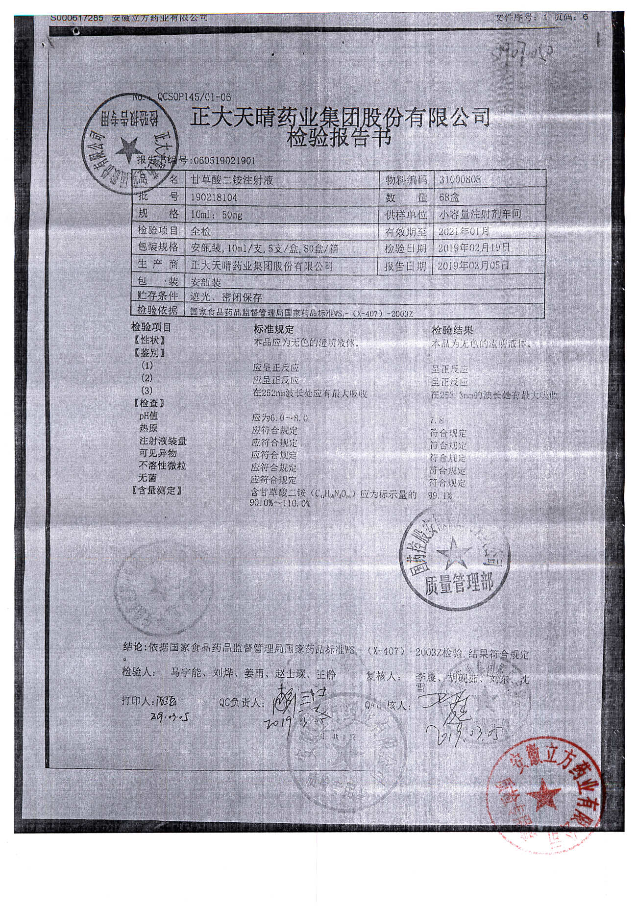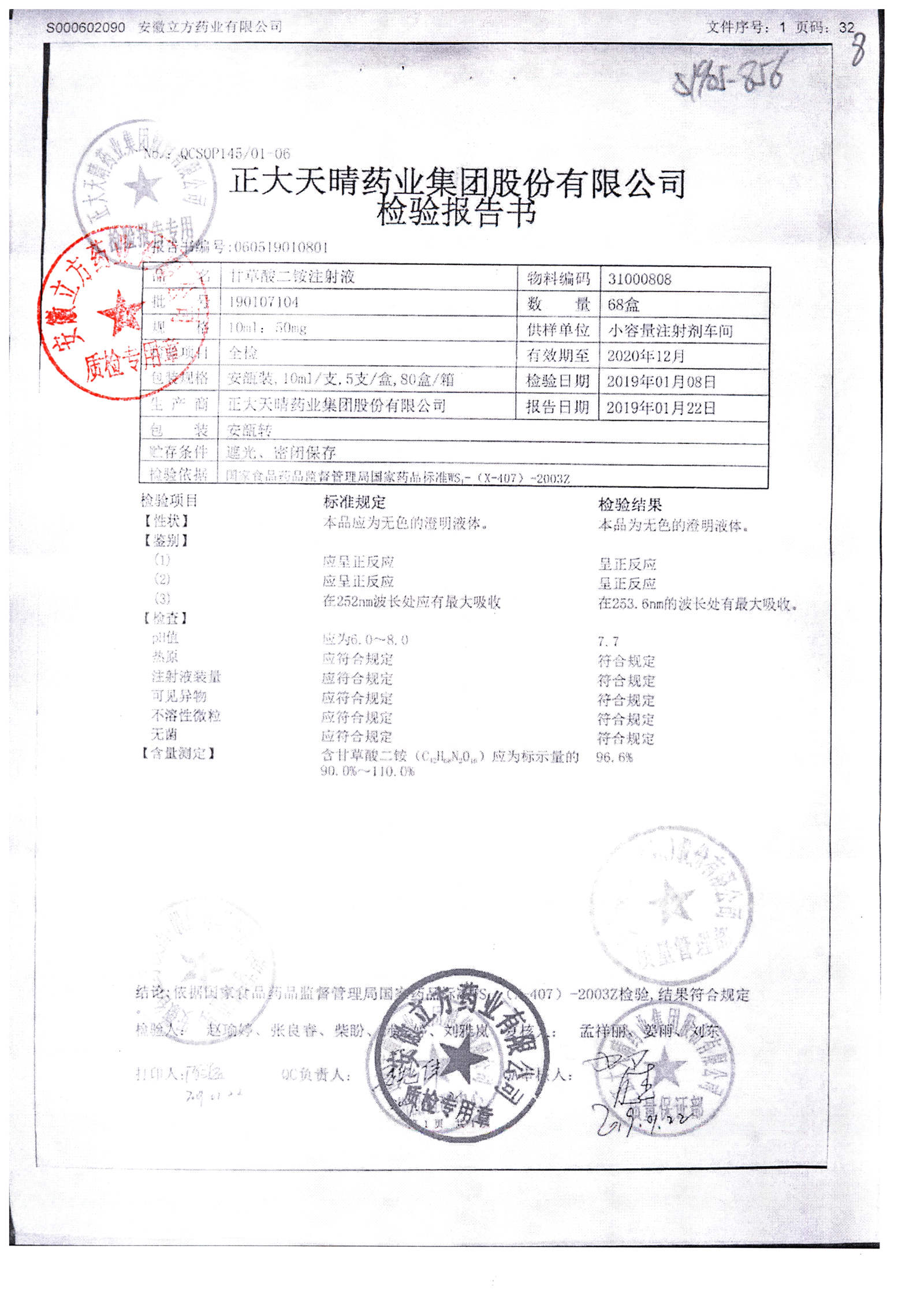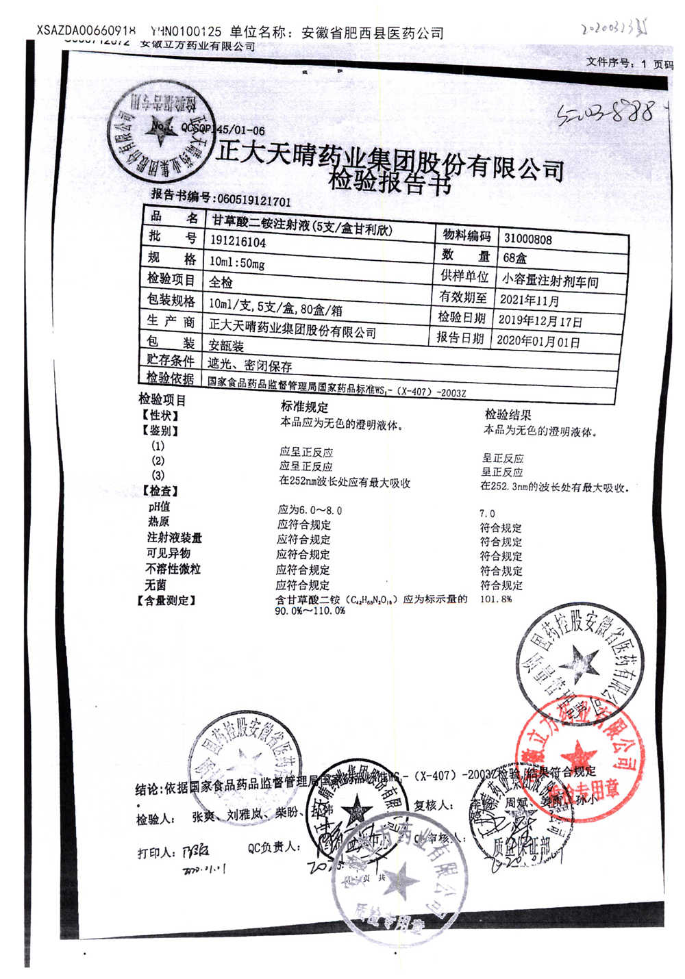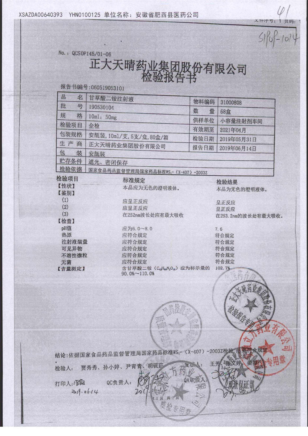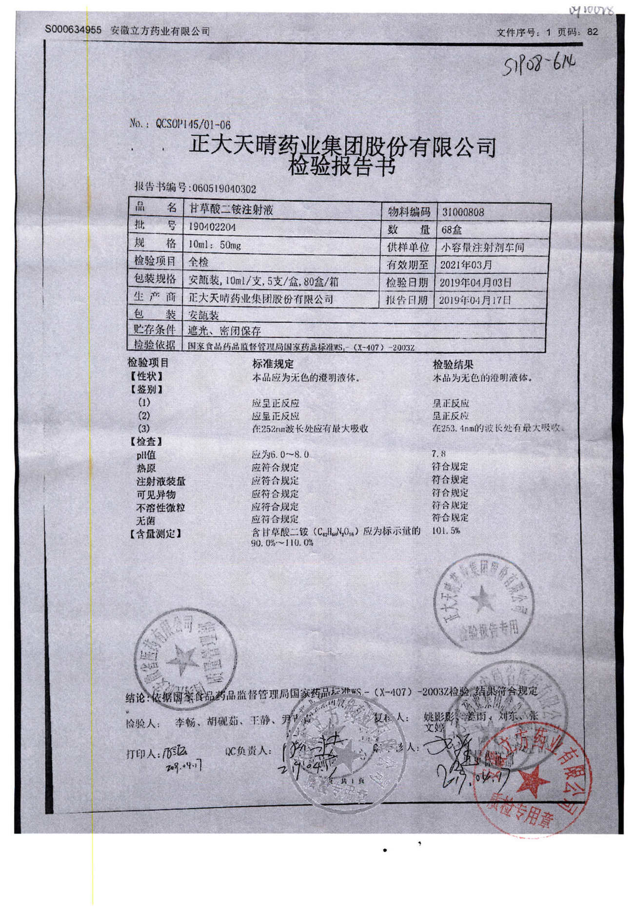 甘草酸二胺注射液 | 10ml:50mg | 190218104 | 查看詳情 |