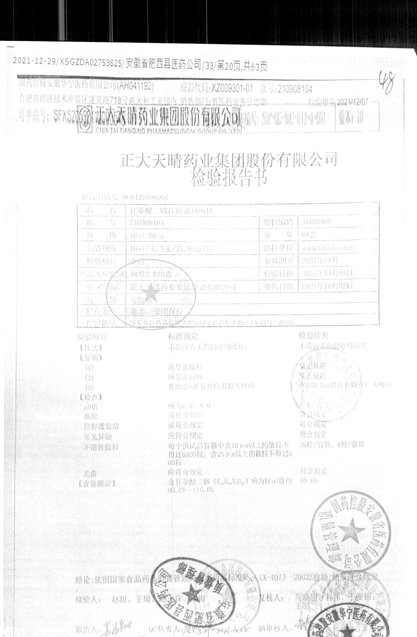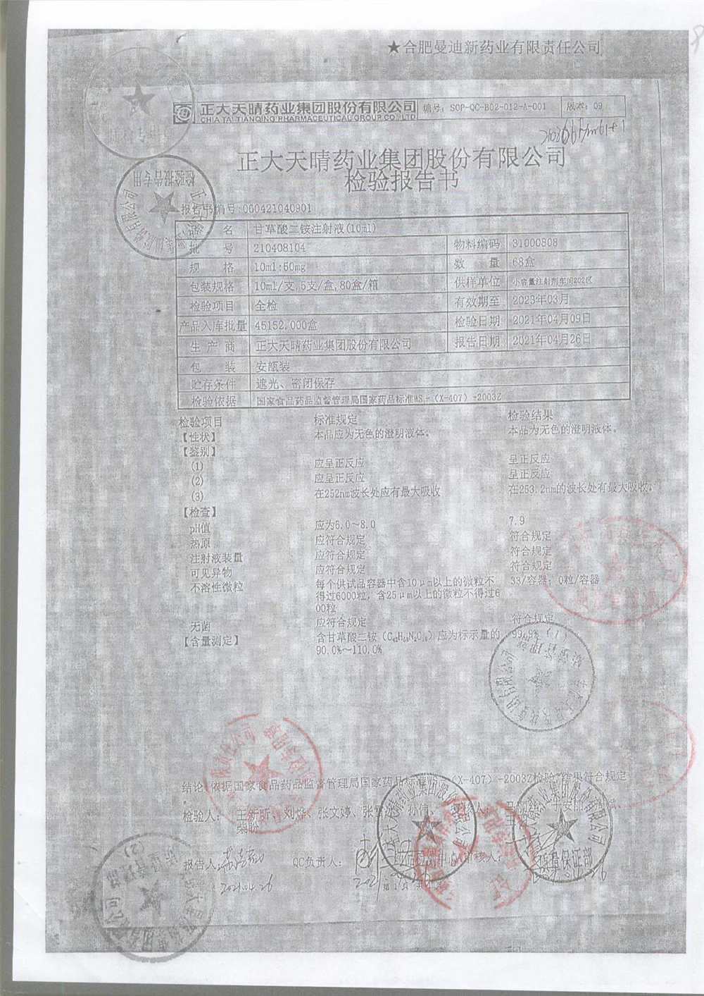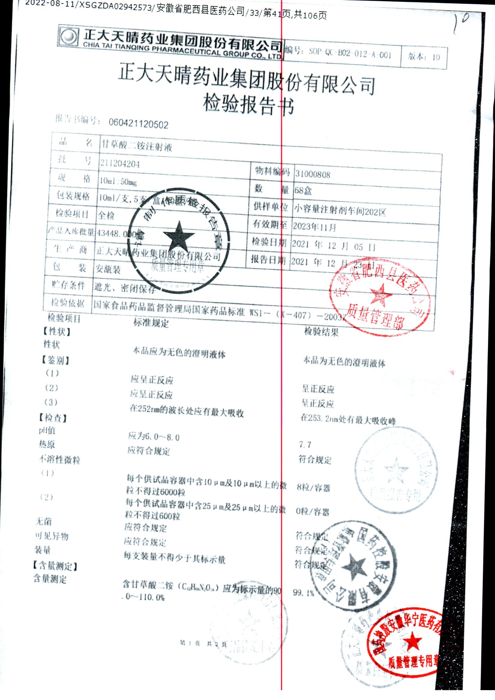 甘草酸二胺注射液 | 10ml:50mg | 211204204 | 查看詳情 |
