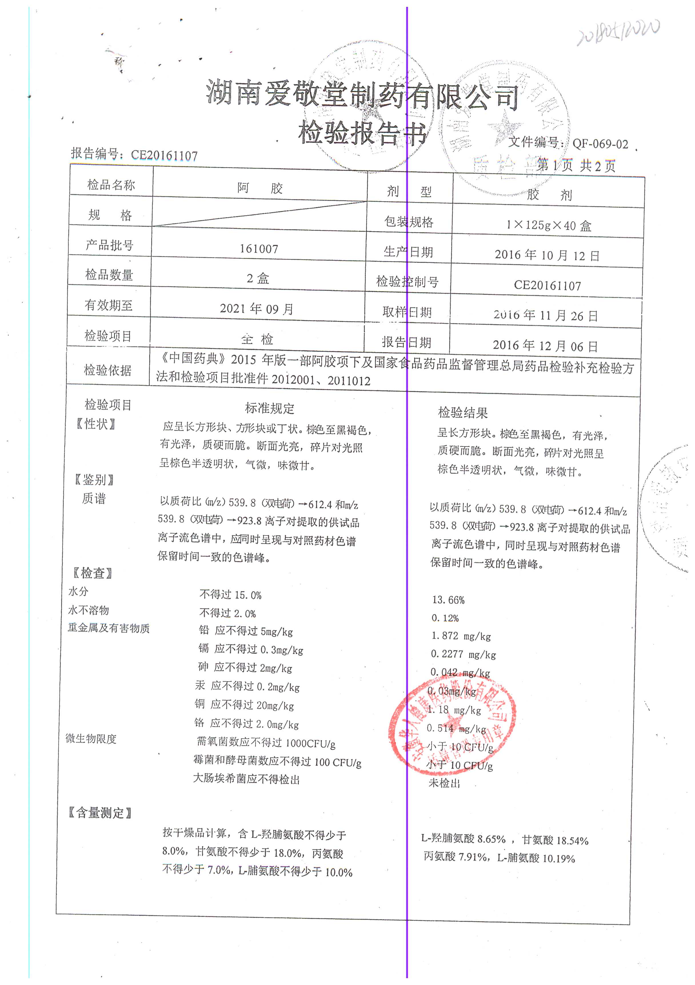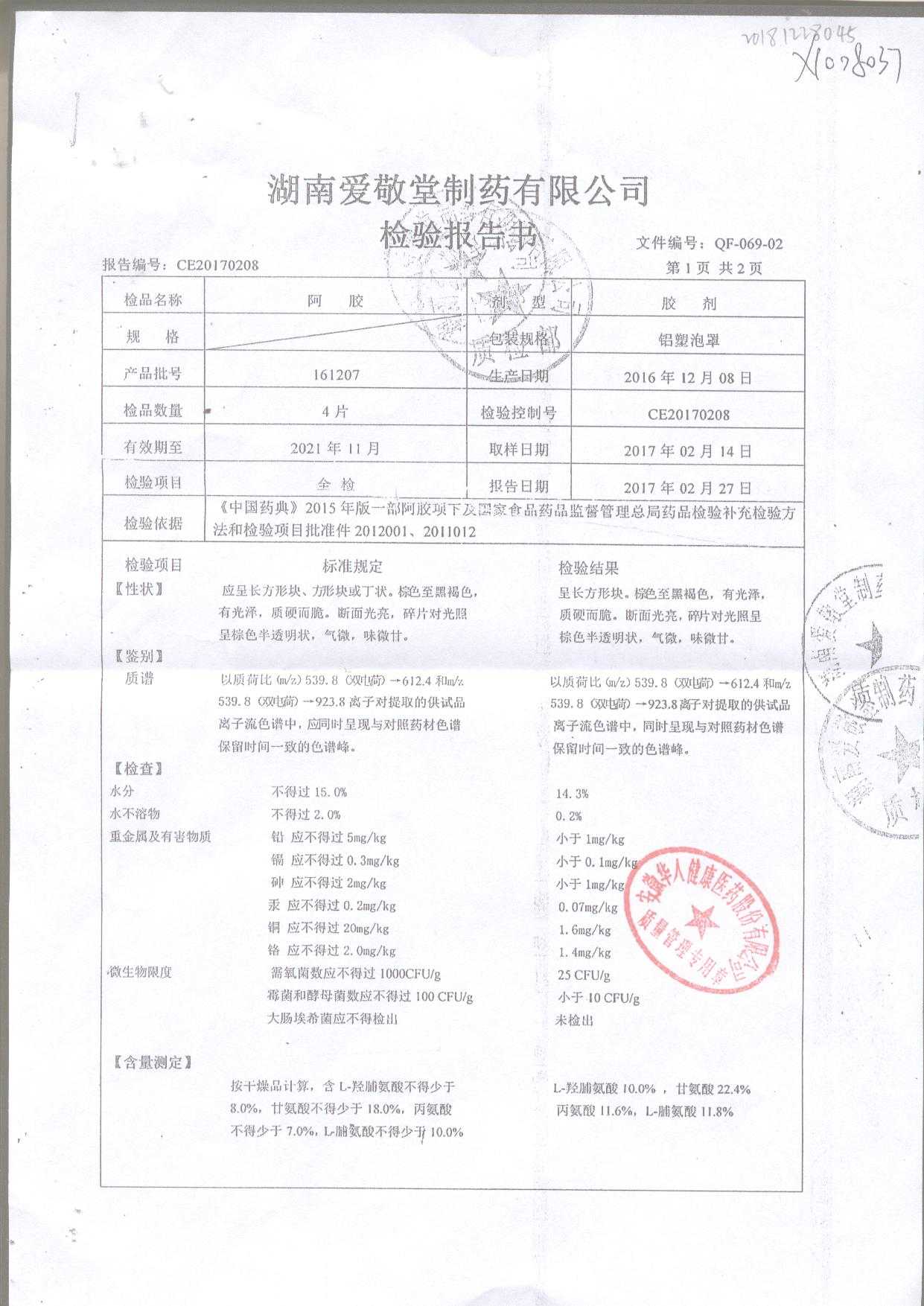 阿膠 | 125g/盒 | 171218(1/2) | 查看詳情 |