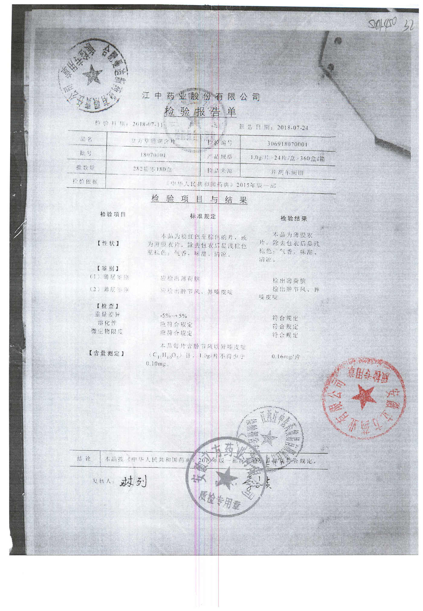 名稱(chēng) | 規(guī)格 | 批號(hào) | 藥檢報(bào)告 |