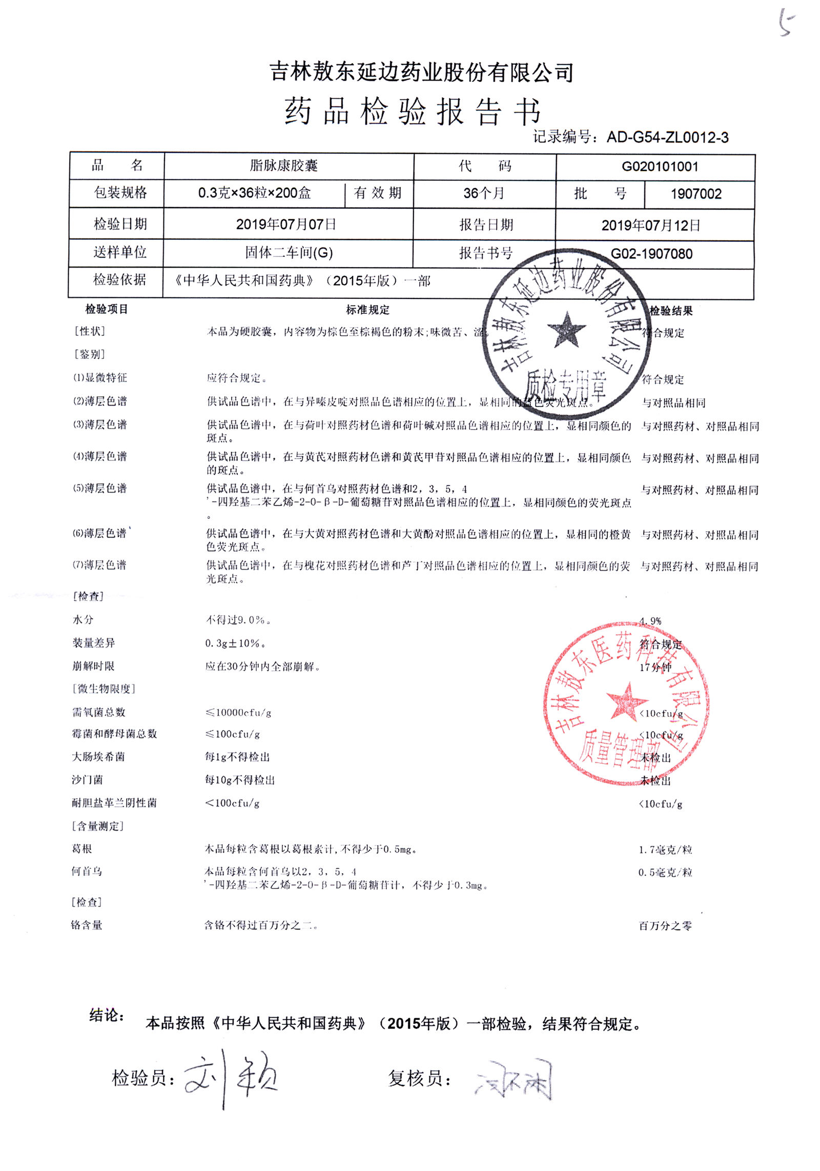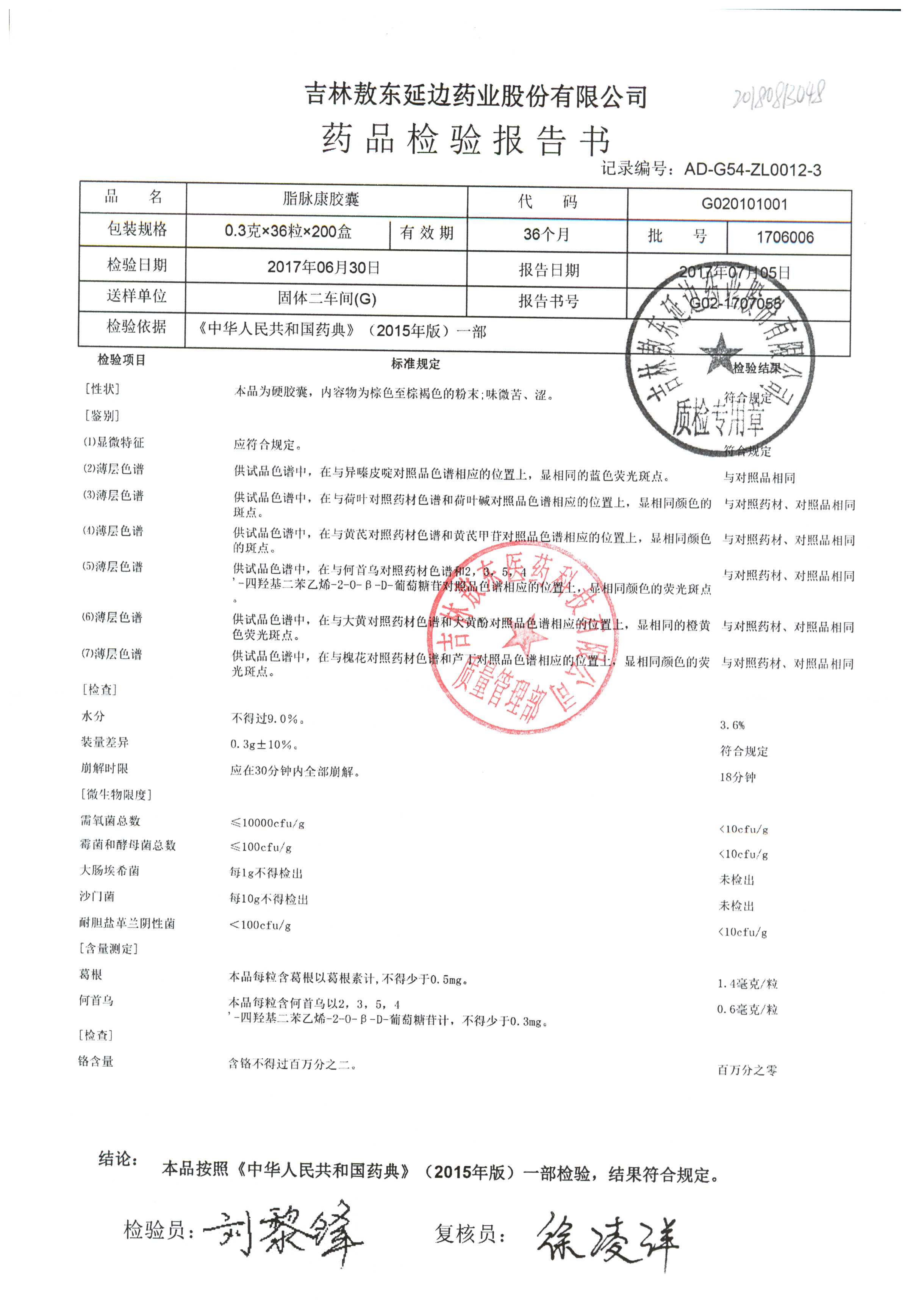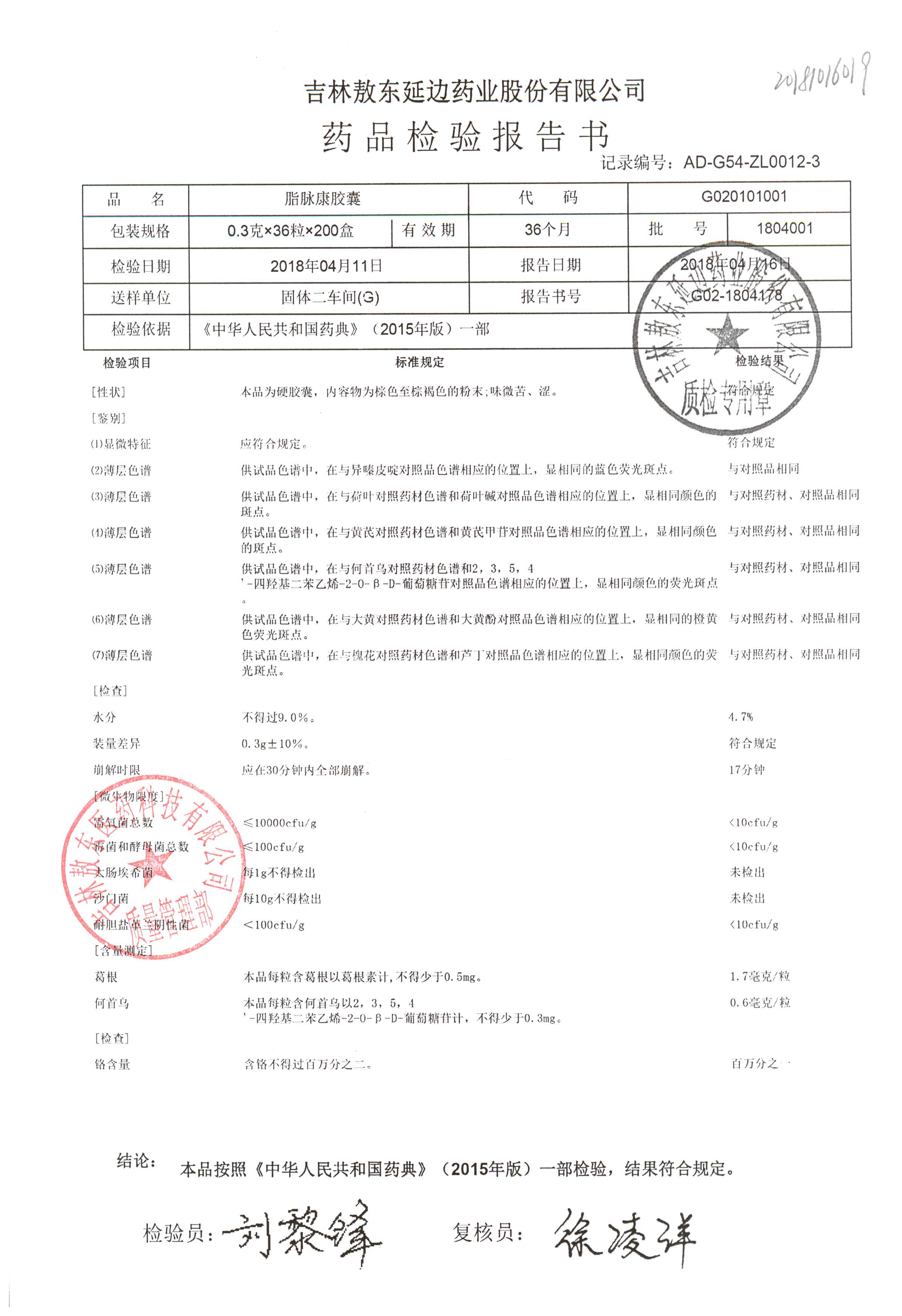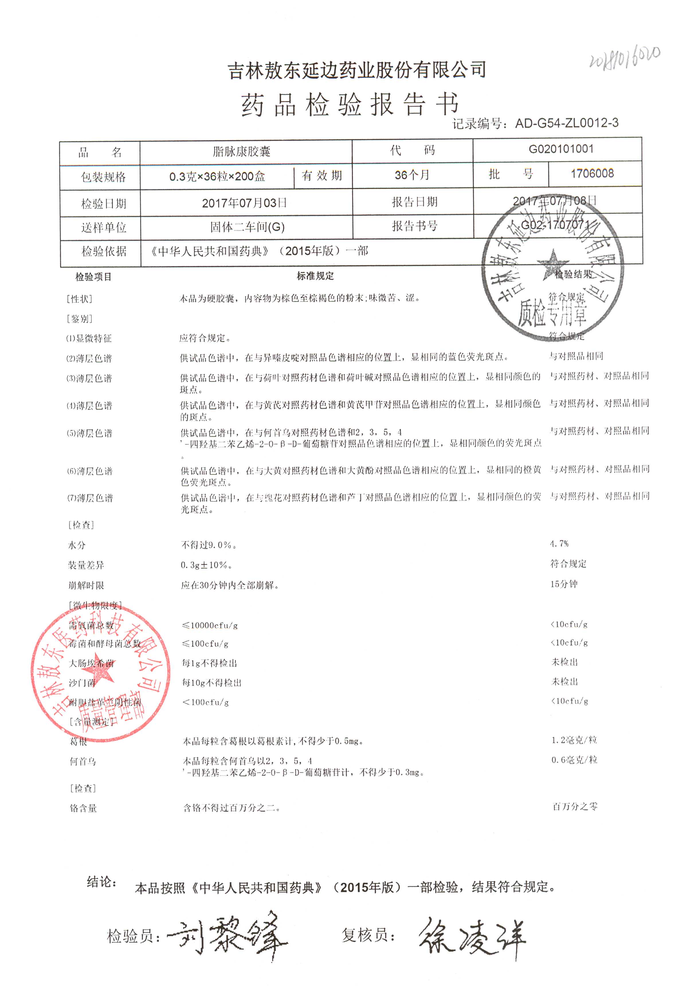 脂脈康膠囊 | 0.3g*36s | 2111001 | 查看詳情 |