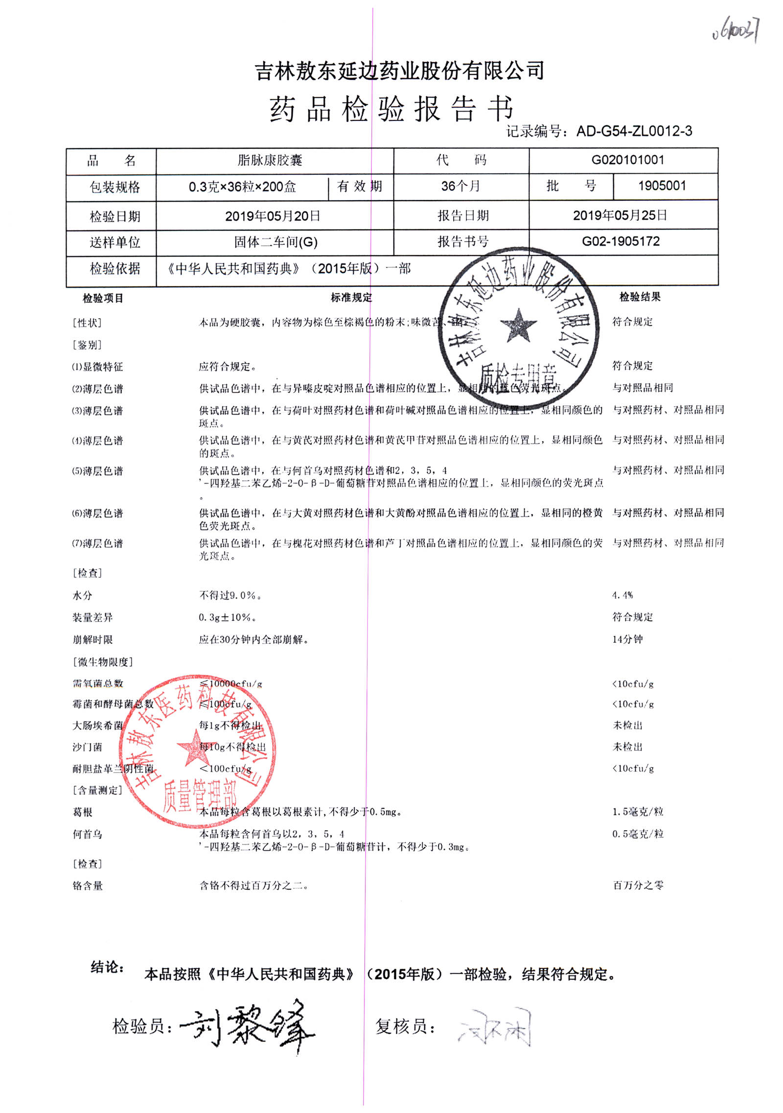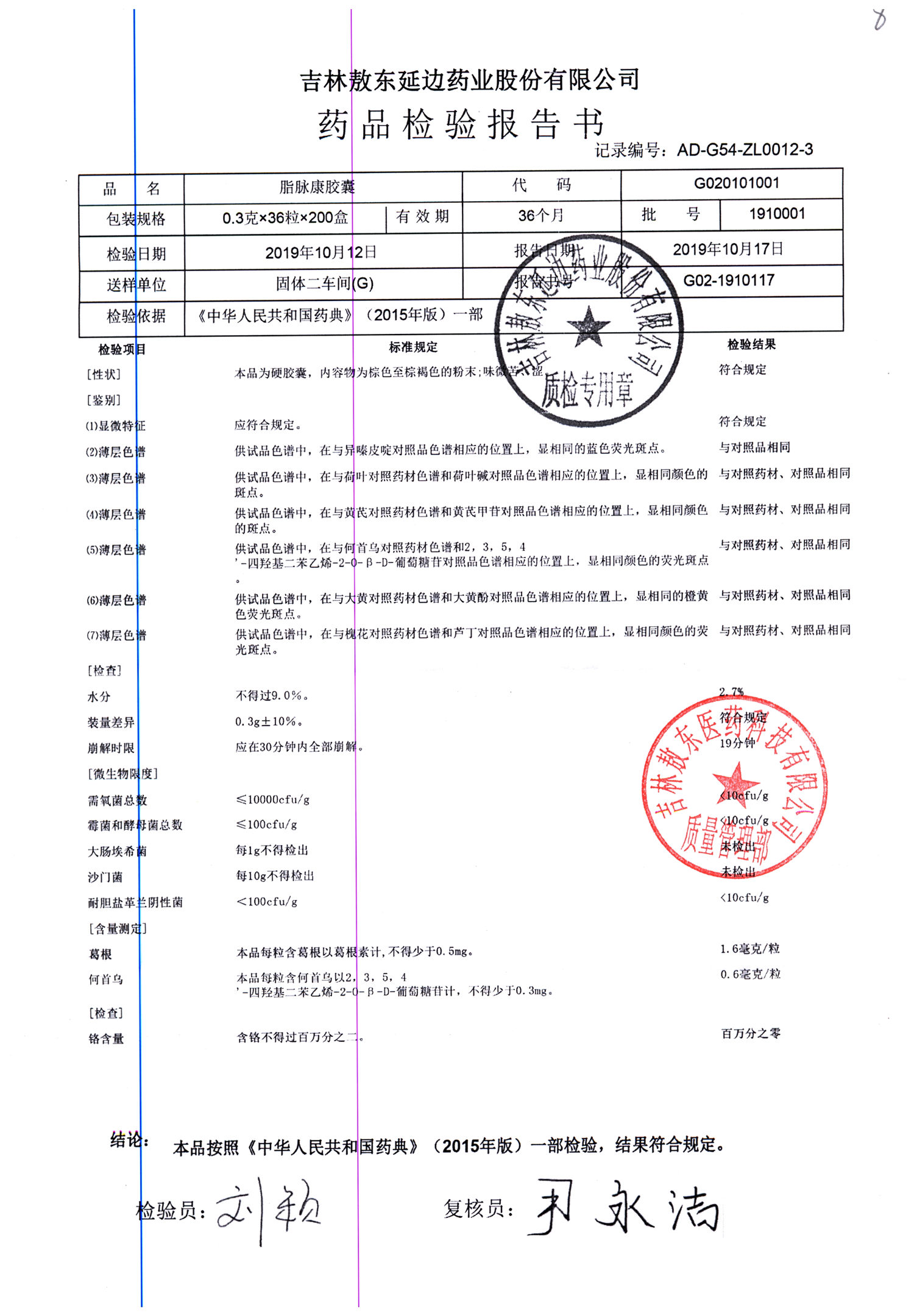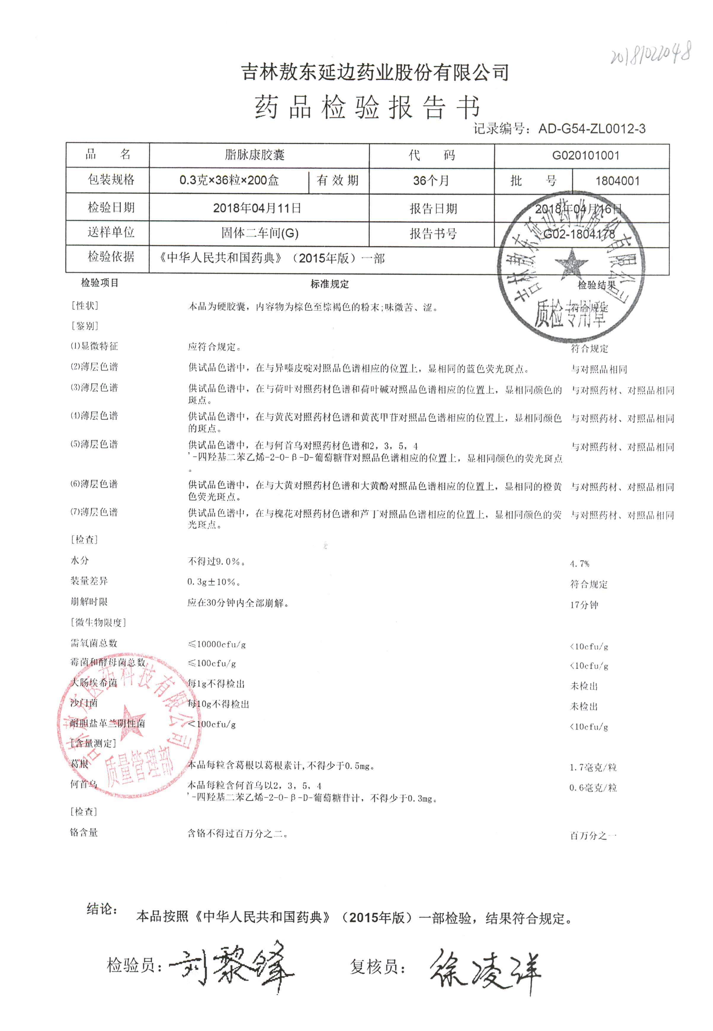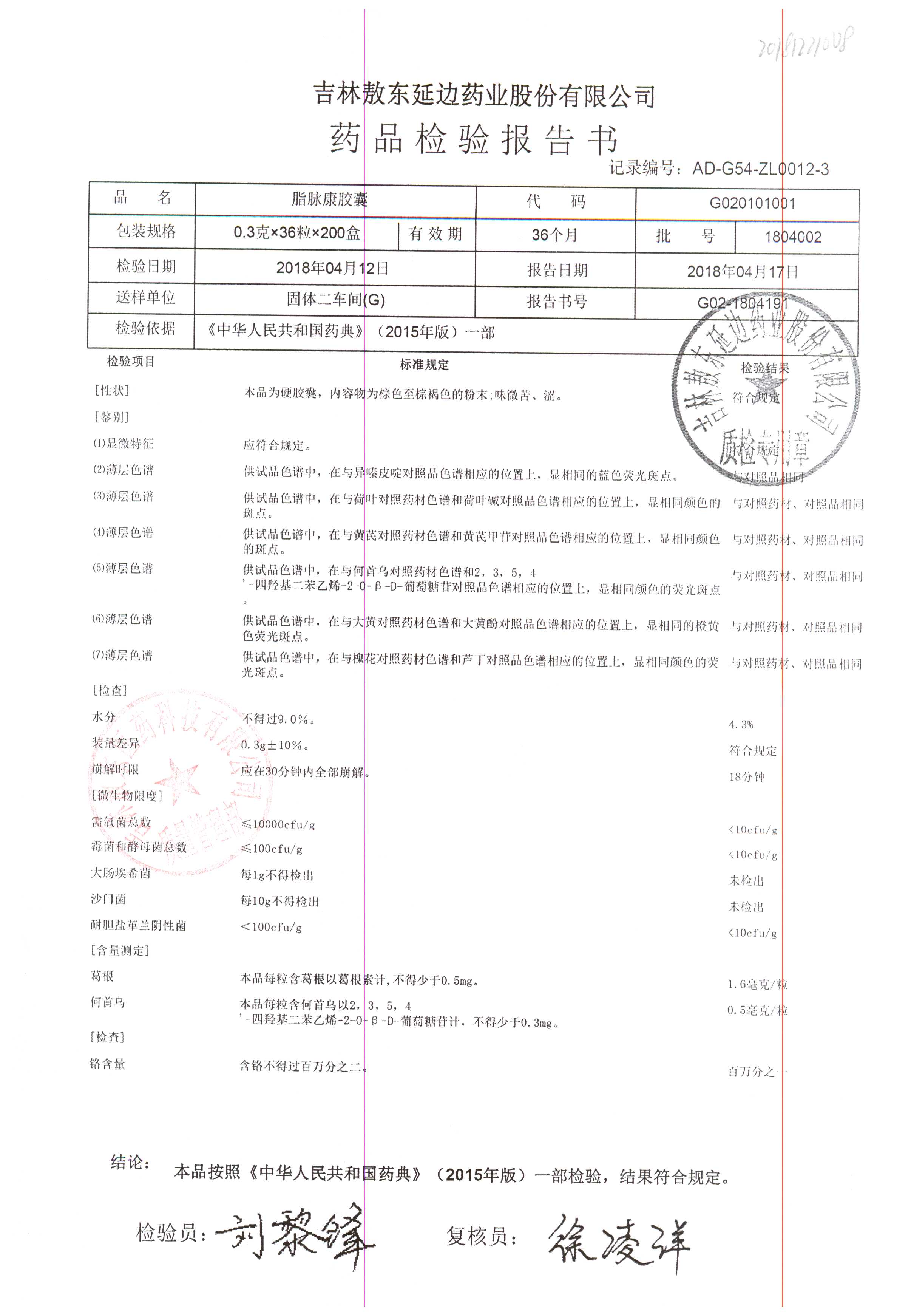 脂脈康膠囊 | 0.3g*36s | 2201001 | 查看詳情 |