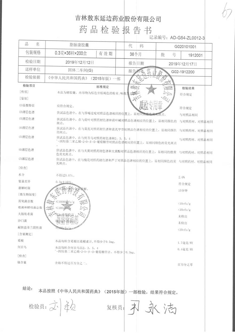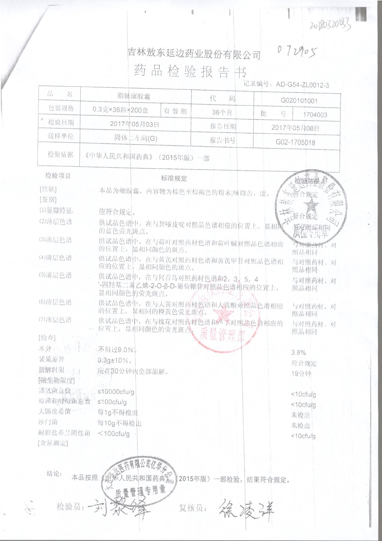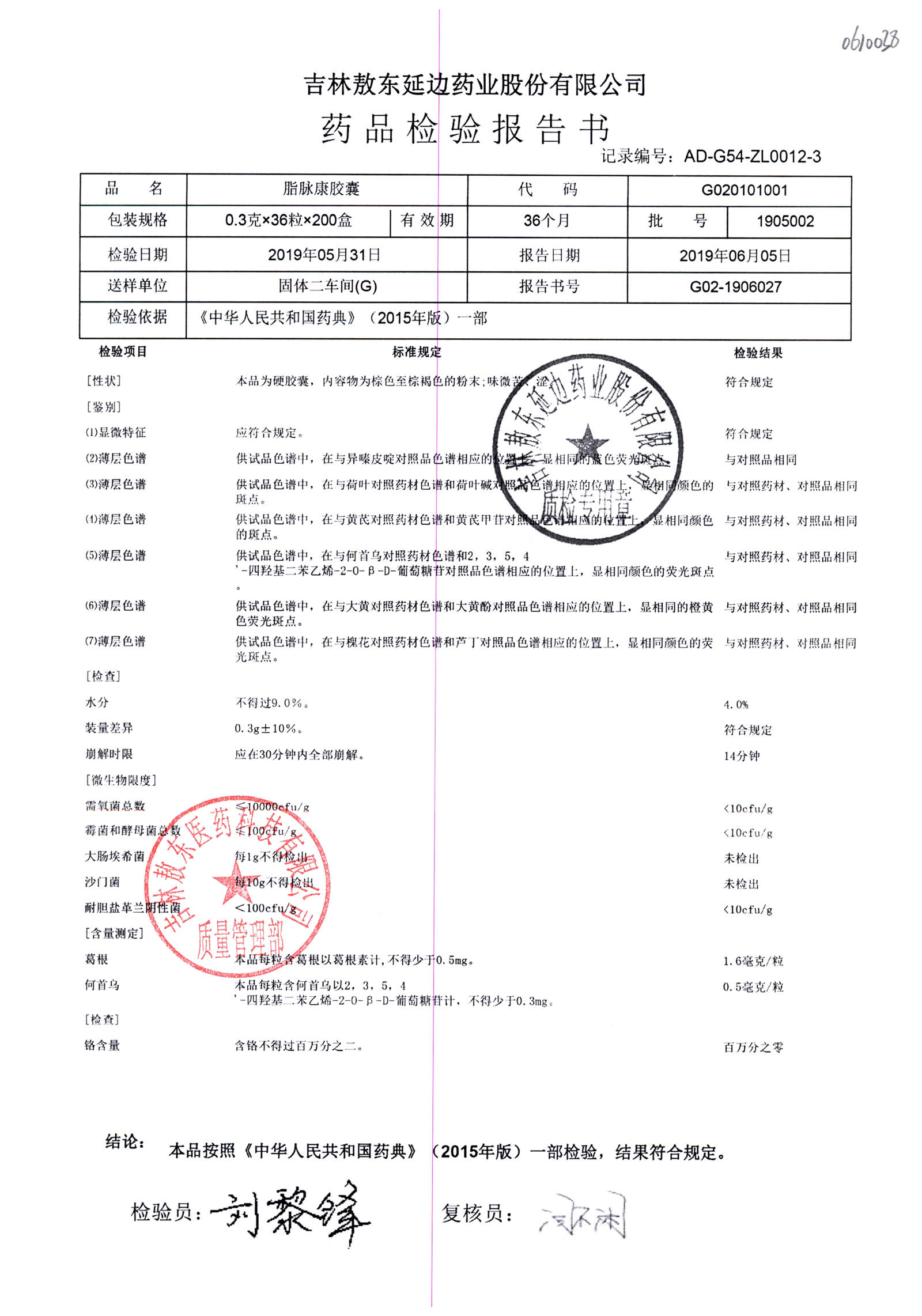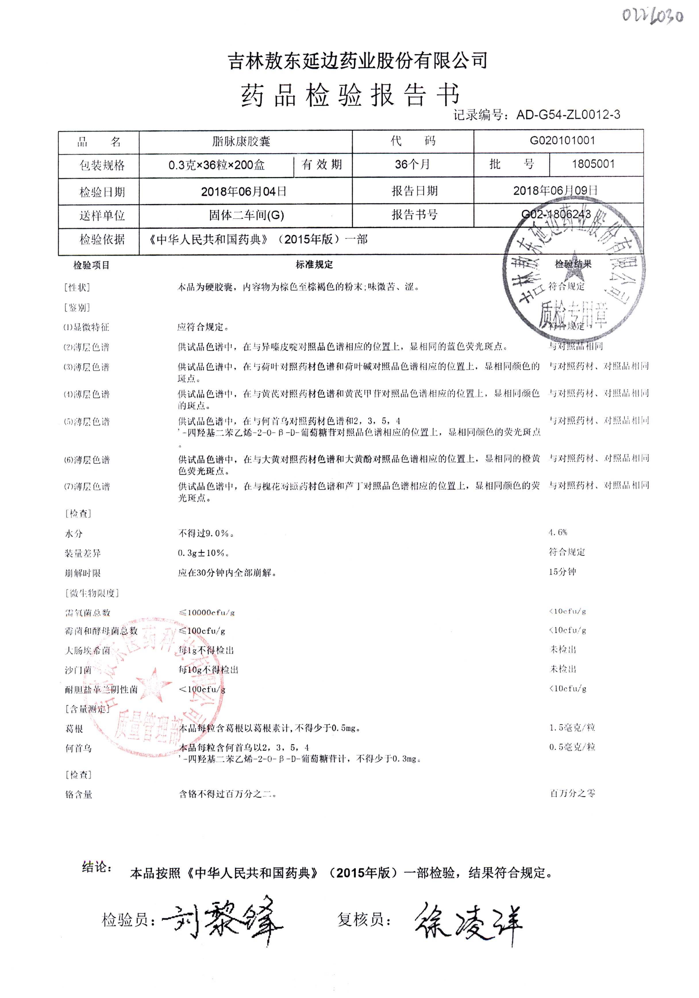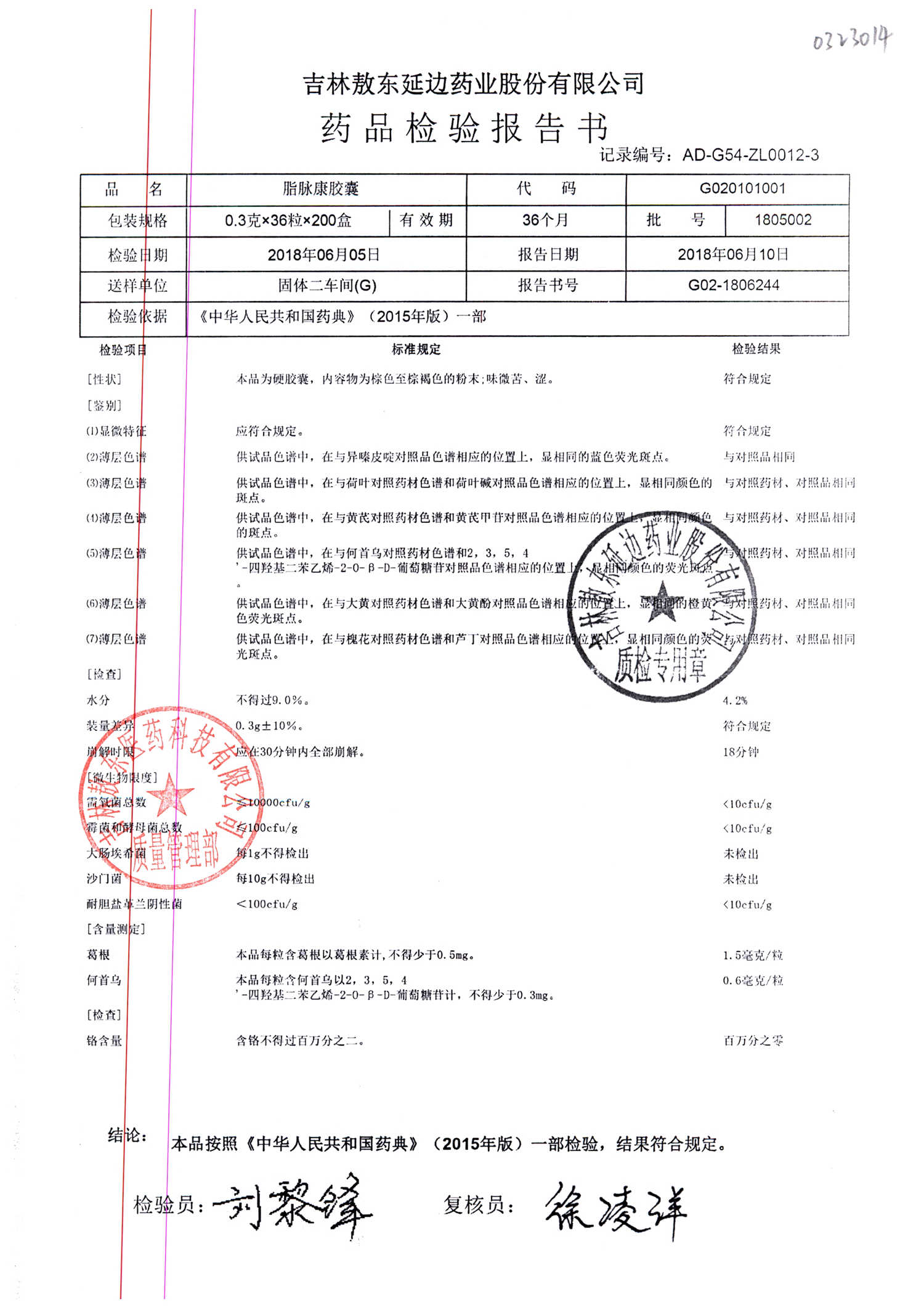 脂脈康膠囊 | 0.3g*36s | 2201001 | 查看詳情 |