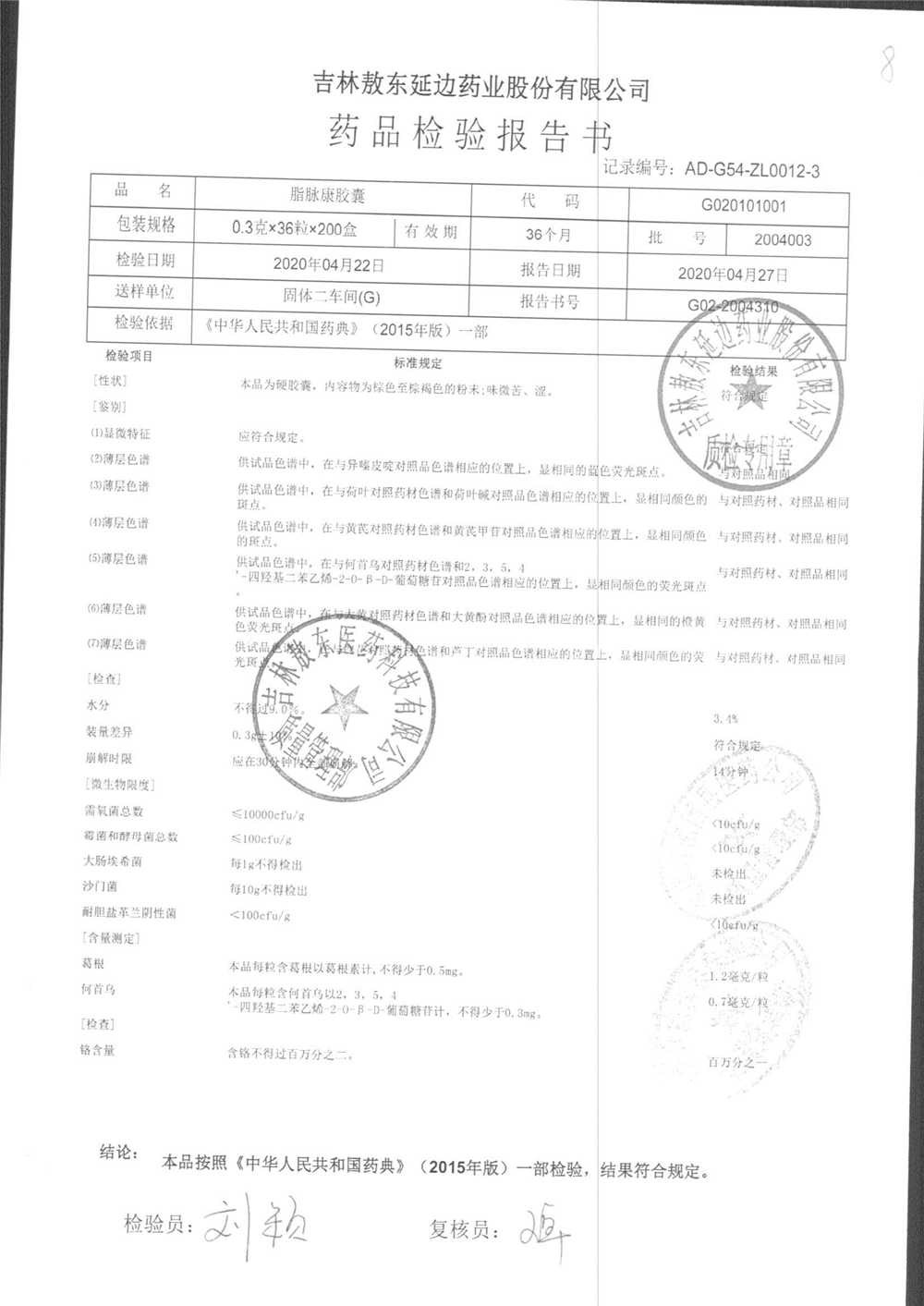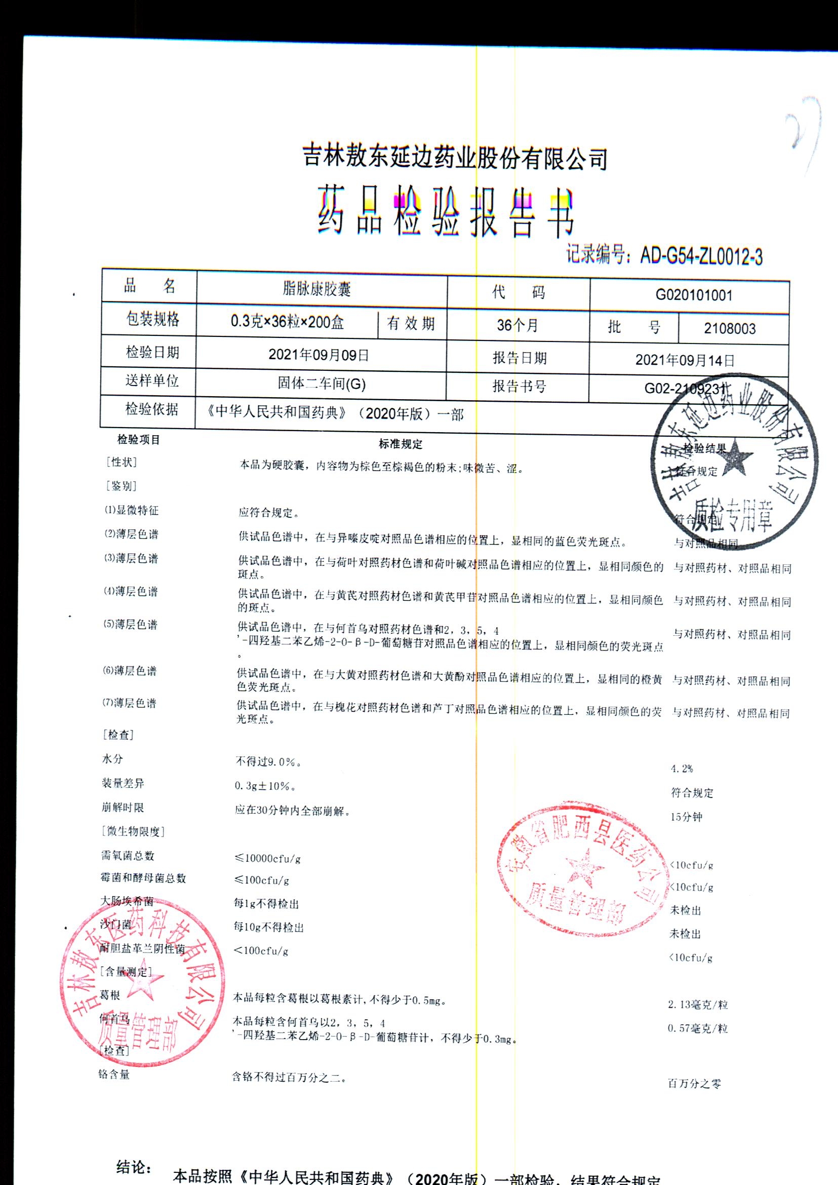 脂脈康膠囊 | 0.3g*36s | 2108002 | 查看詳情 |