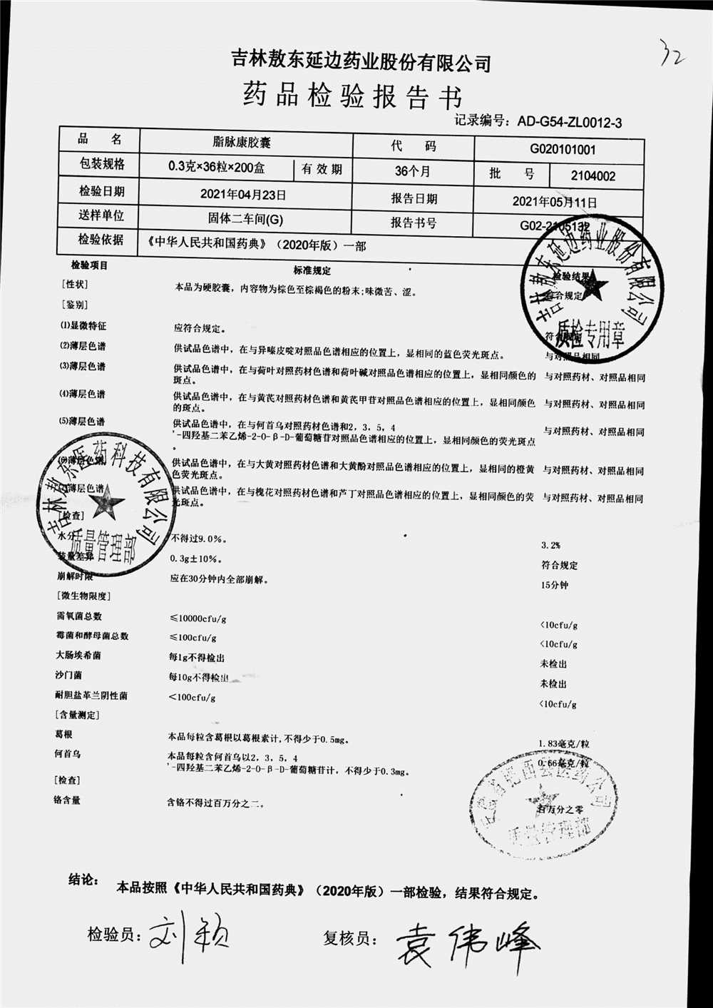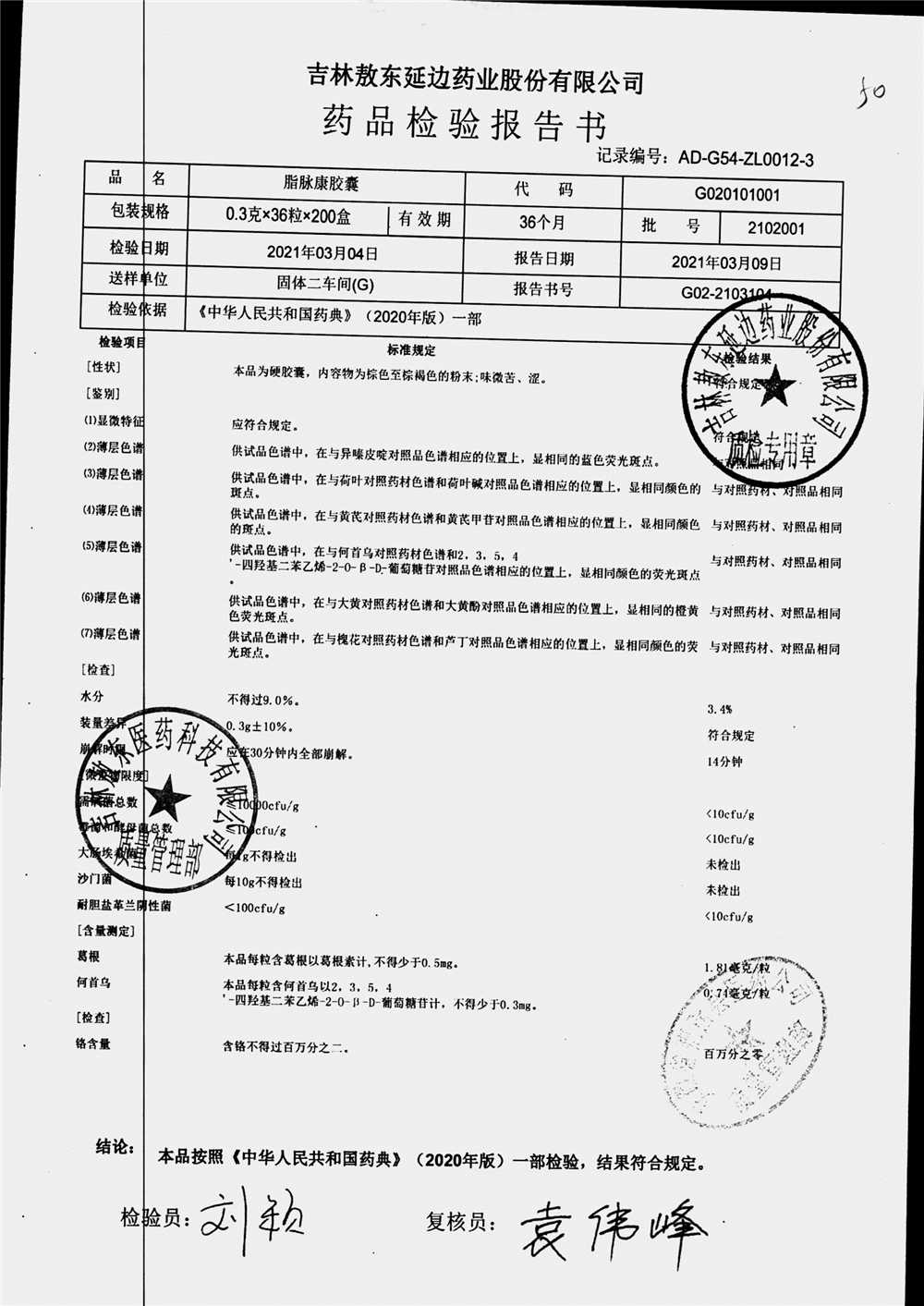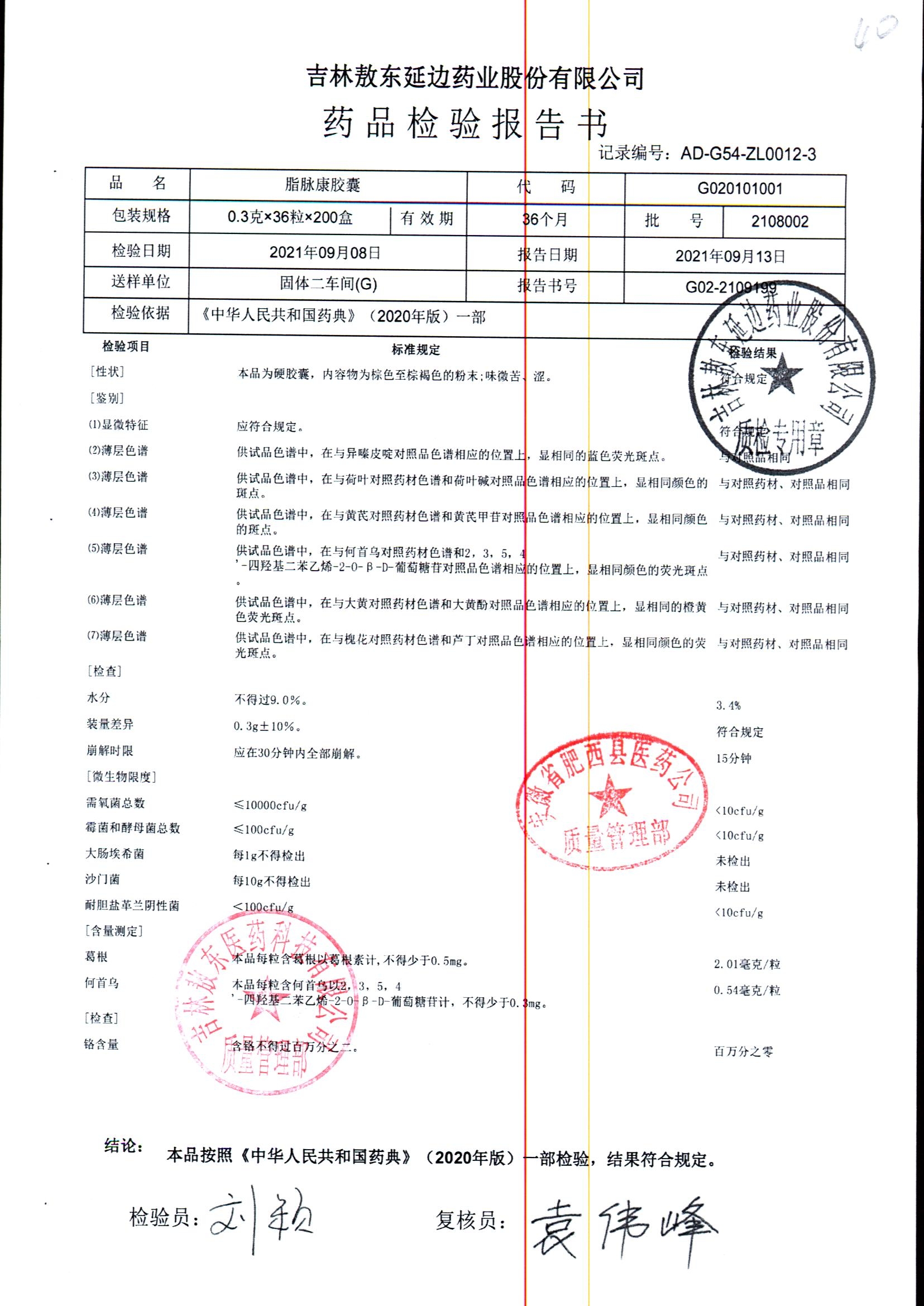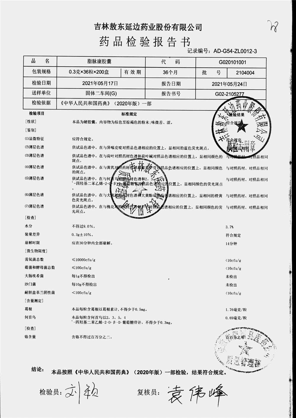脂脈康膠囊 | 0.3g*36s | 2102001 | 查看詳情 |