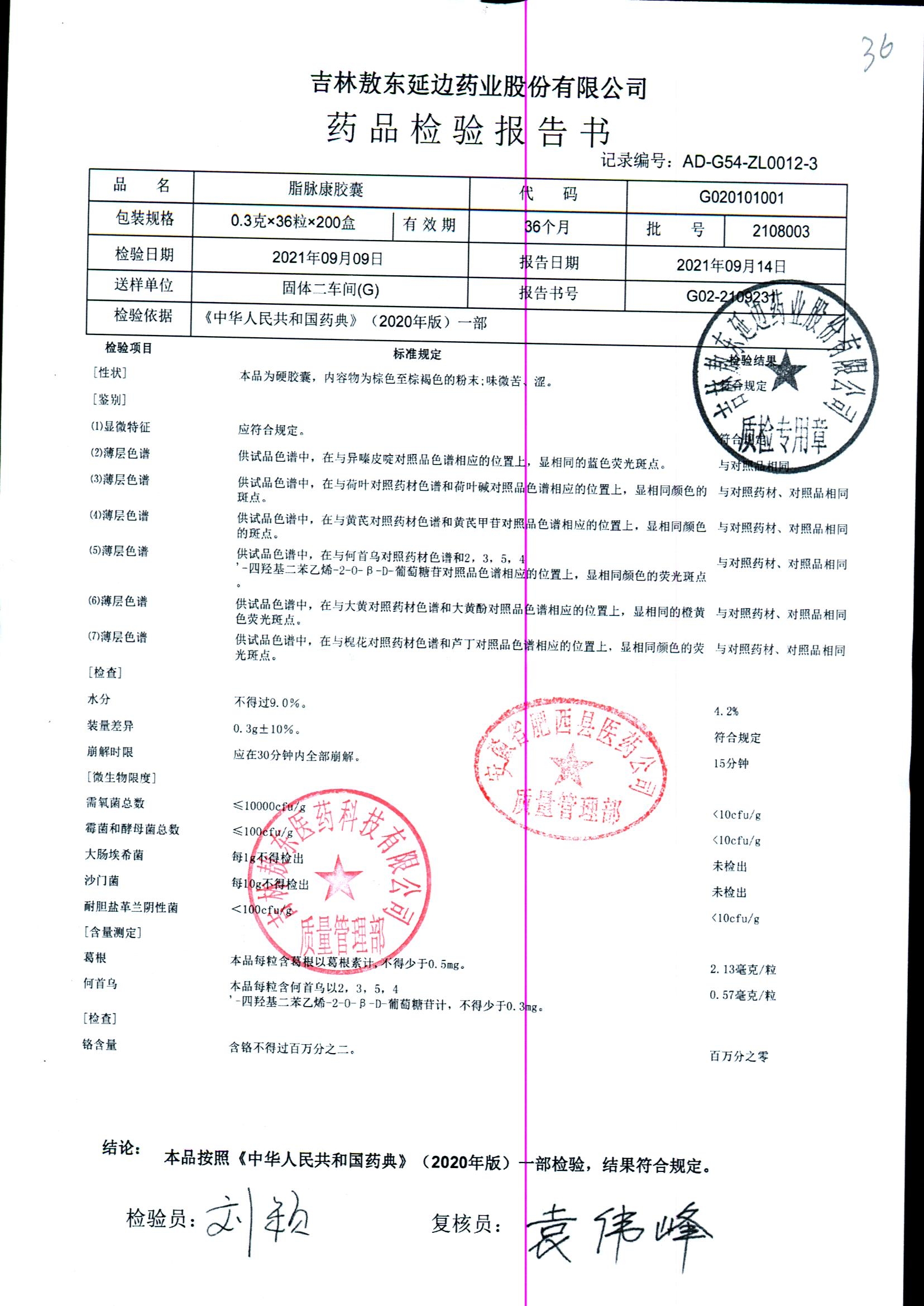 脂脈康膠囊 | 0.3g*36s | 2108001 | 查看詳情 |