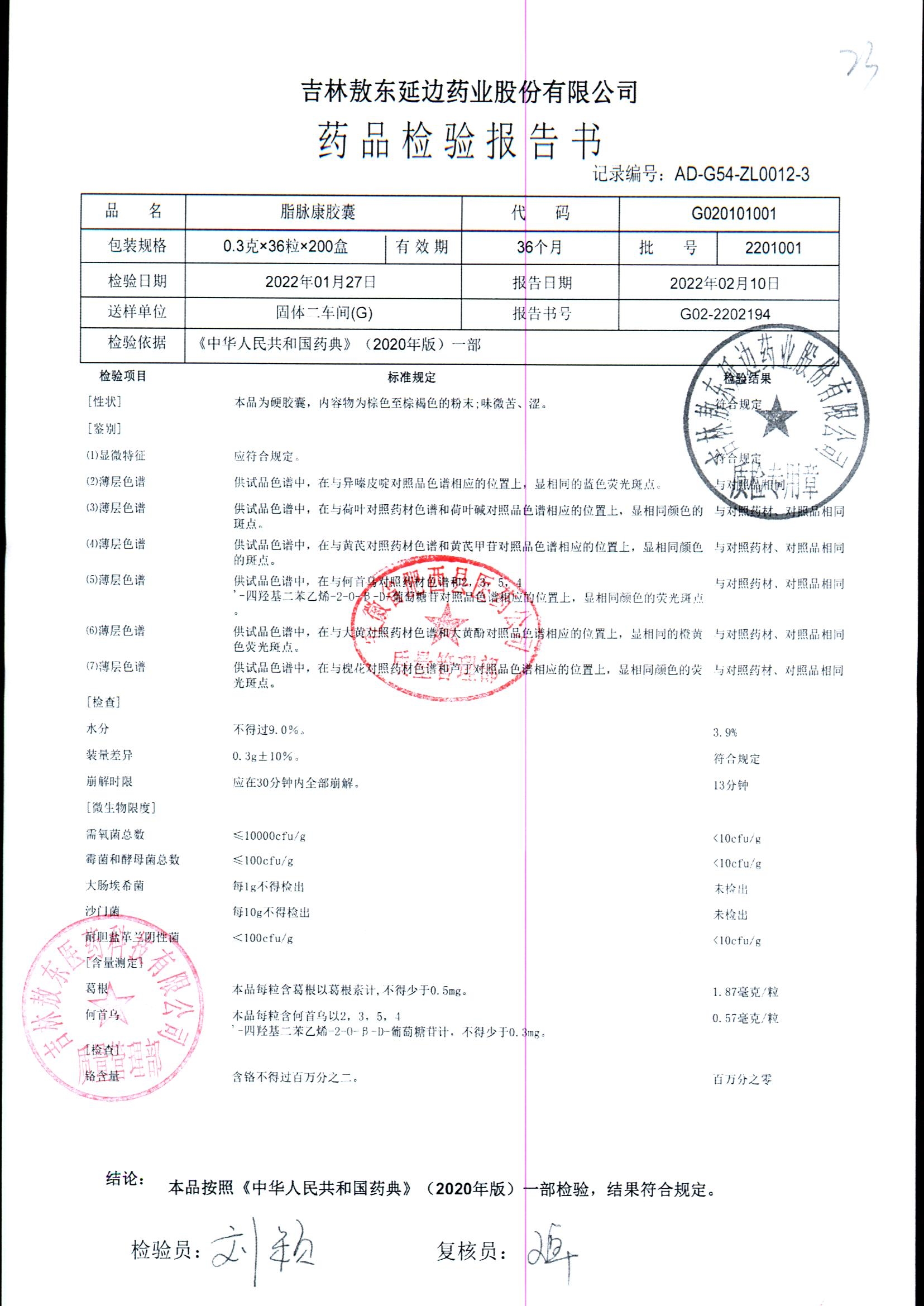 脂脈康膠囊 | 0.3g*36s | 2305001 | 查看詳情 |