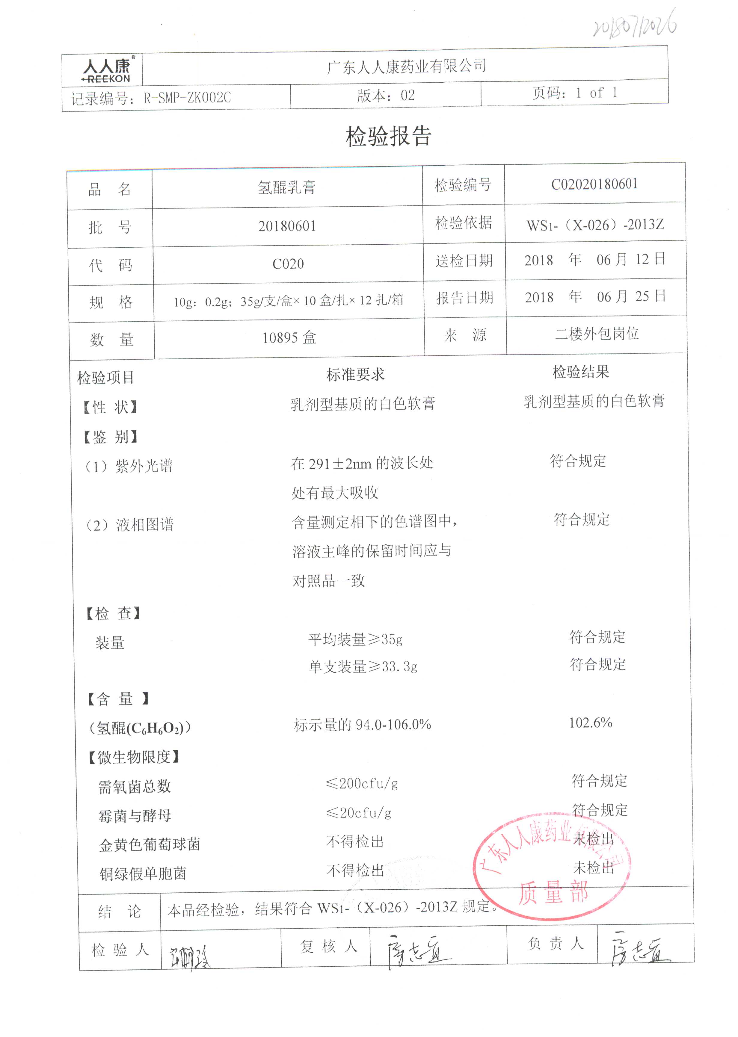 氫醌乳膏 10g:0.2g:35g支 20180601 查看詳情