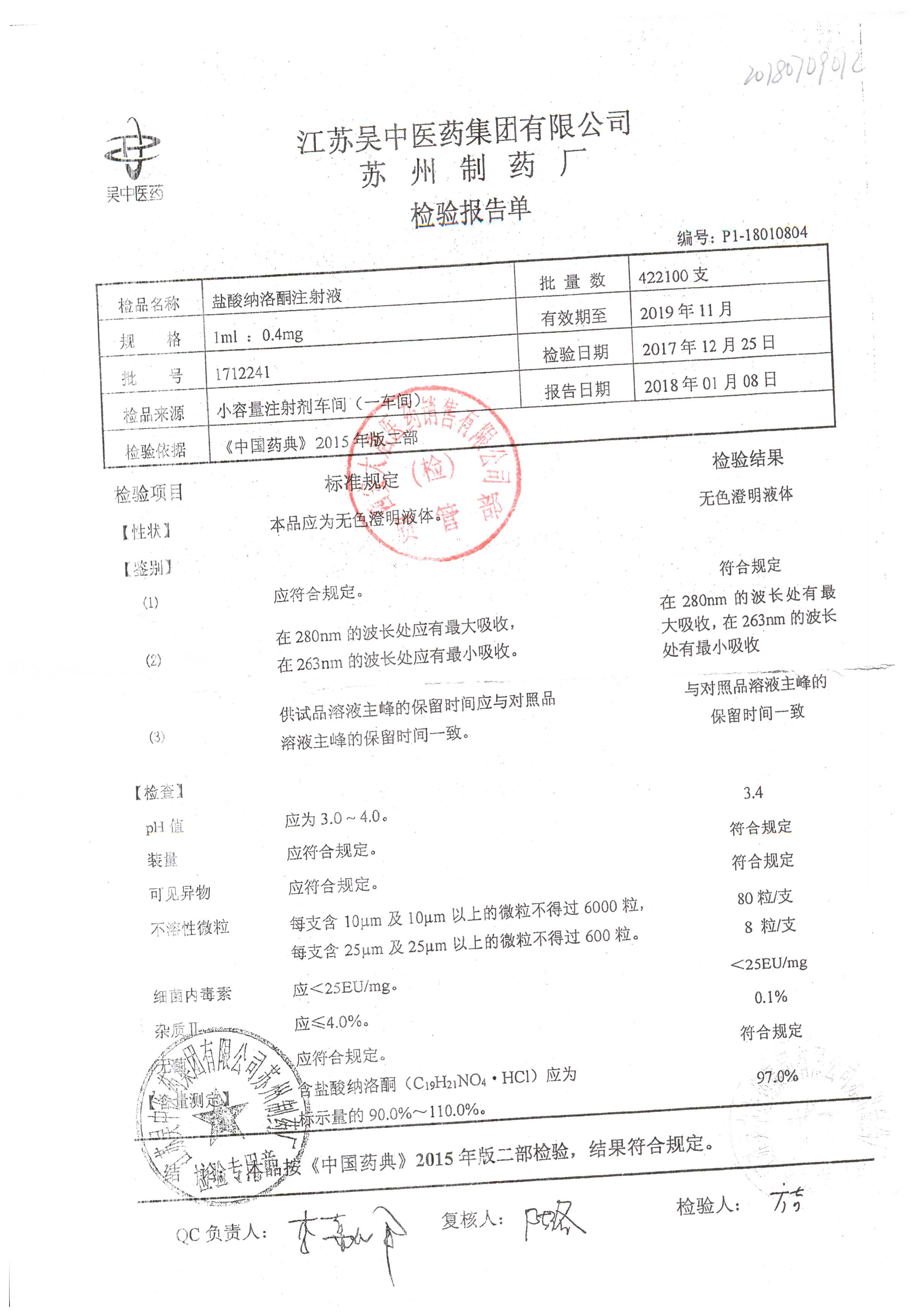 鹽酸納洛酮注射液 1ml:0.4mg 1805281 查看詳情