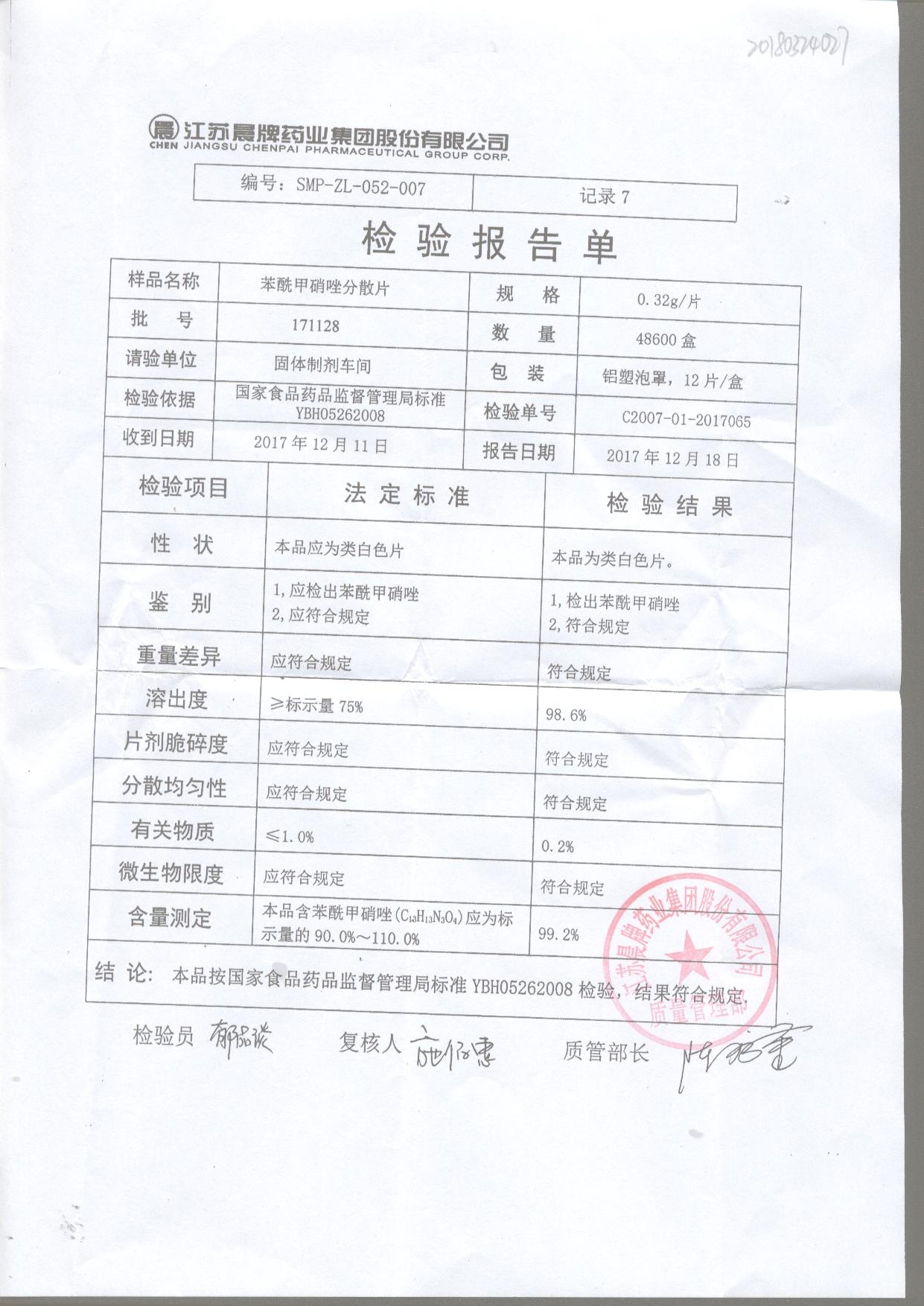 苯酰甲硝唑分散片 0.32g*12s 171128 查看詳情