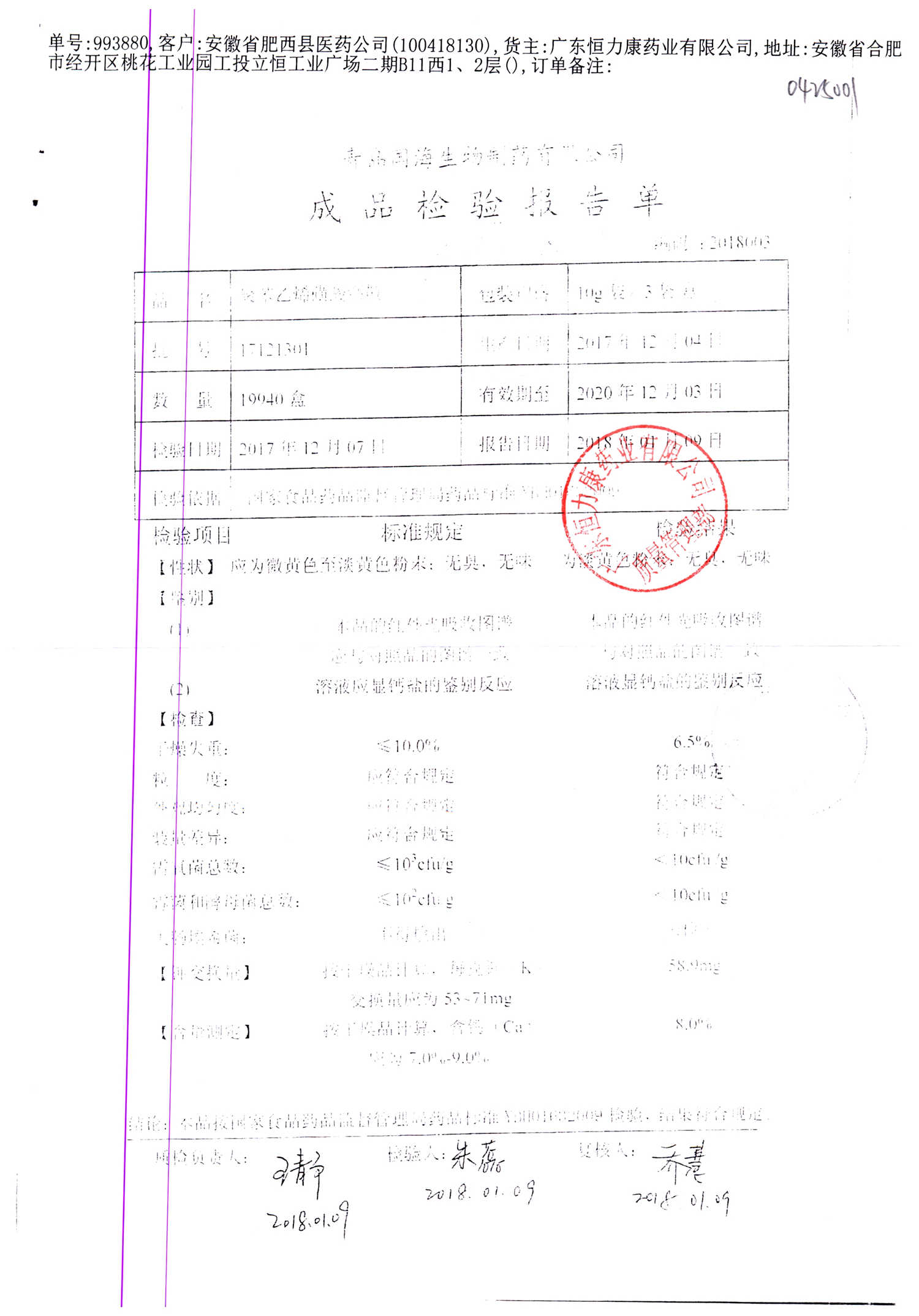 名稱 規(guī)格 批號(hào) 藥檢報(bào)告