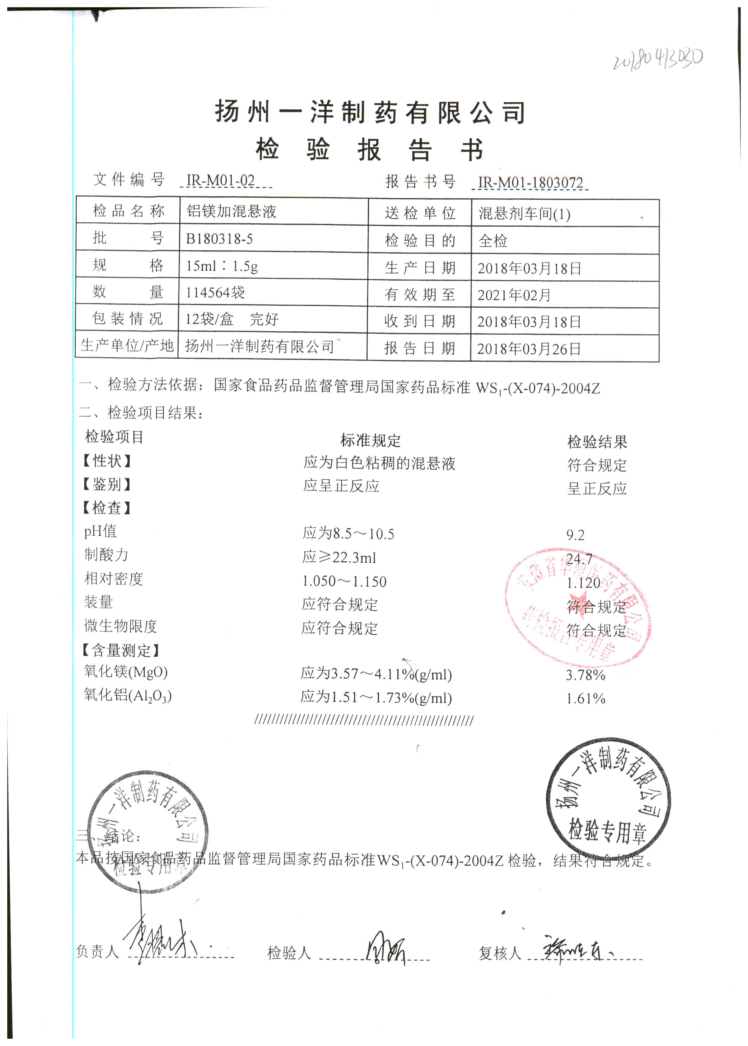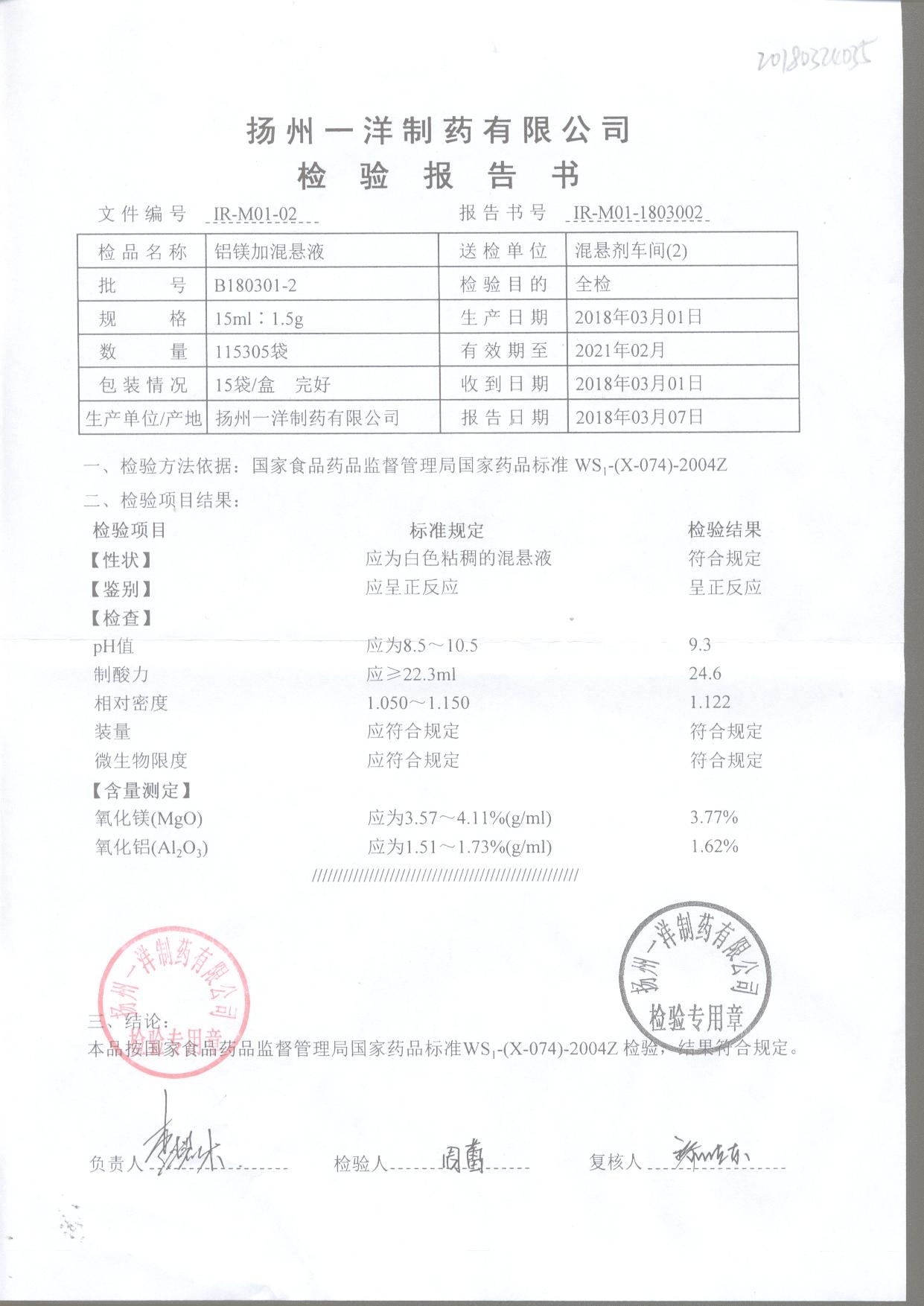 鋁鎂加混懸液 | 15ml:1.5g | B180403-7 | 查看詳情 |
