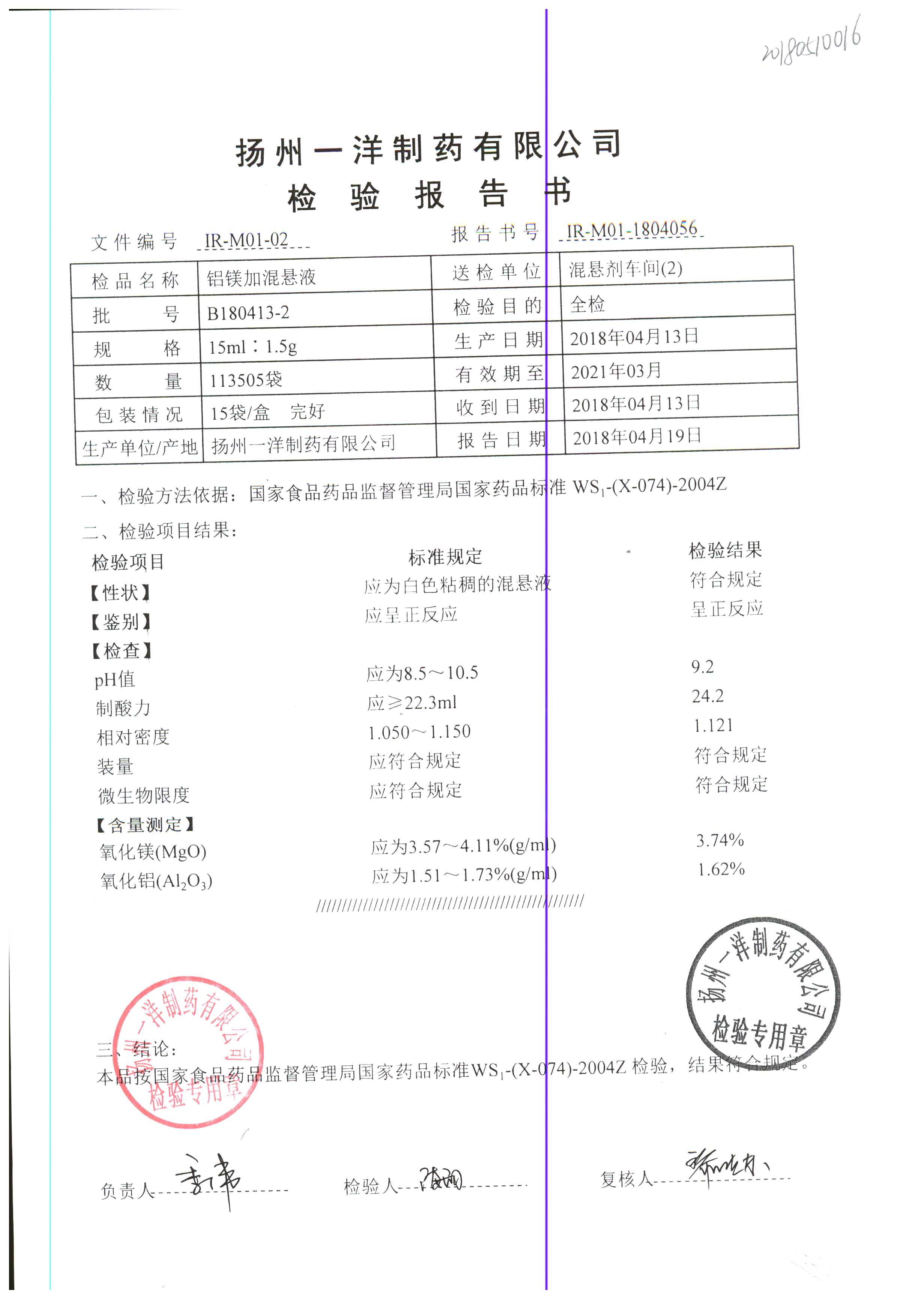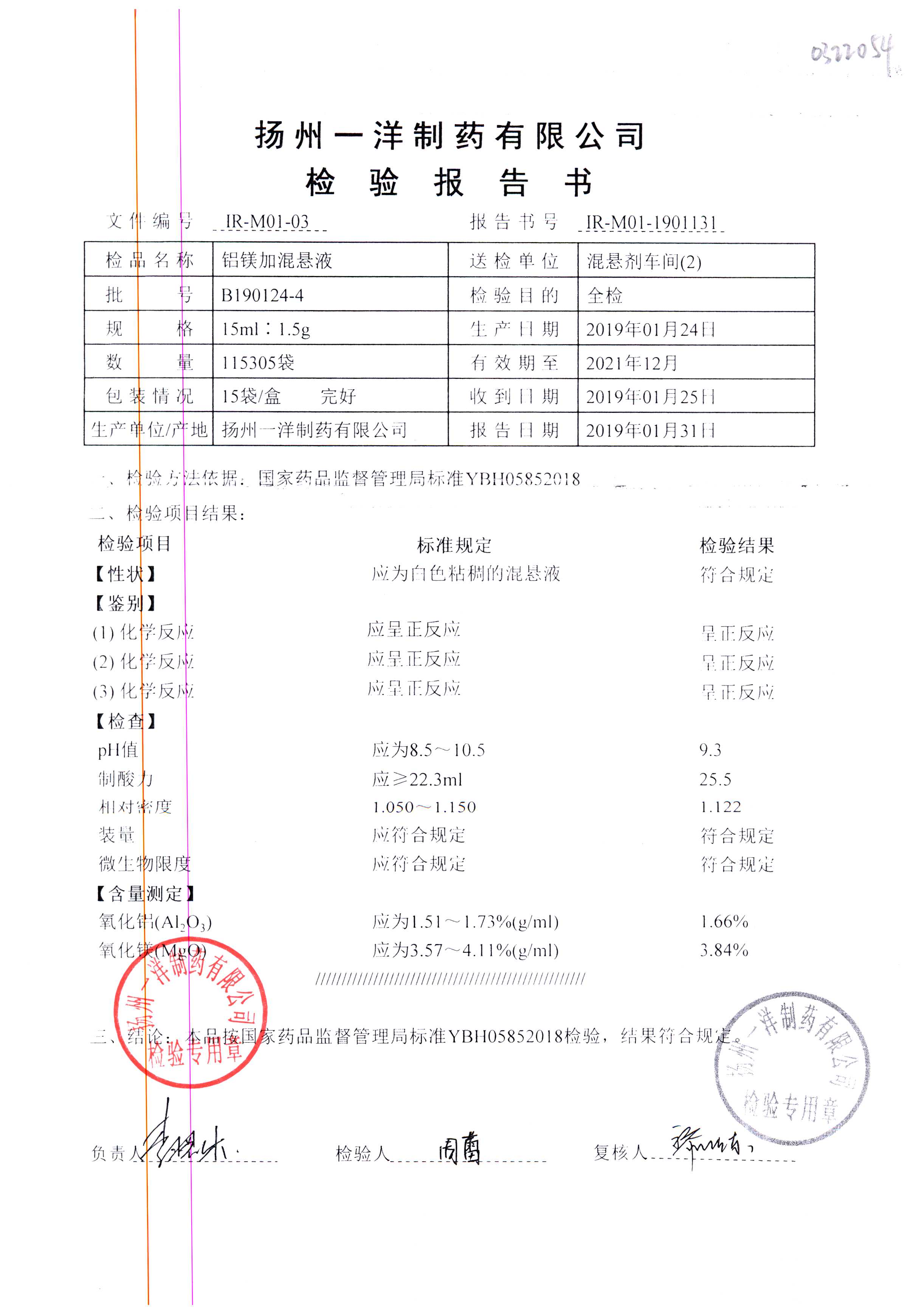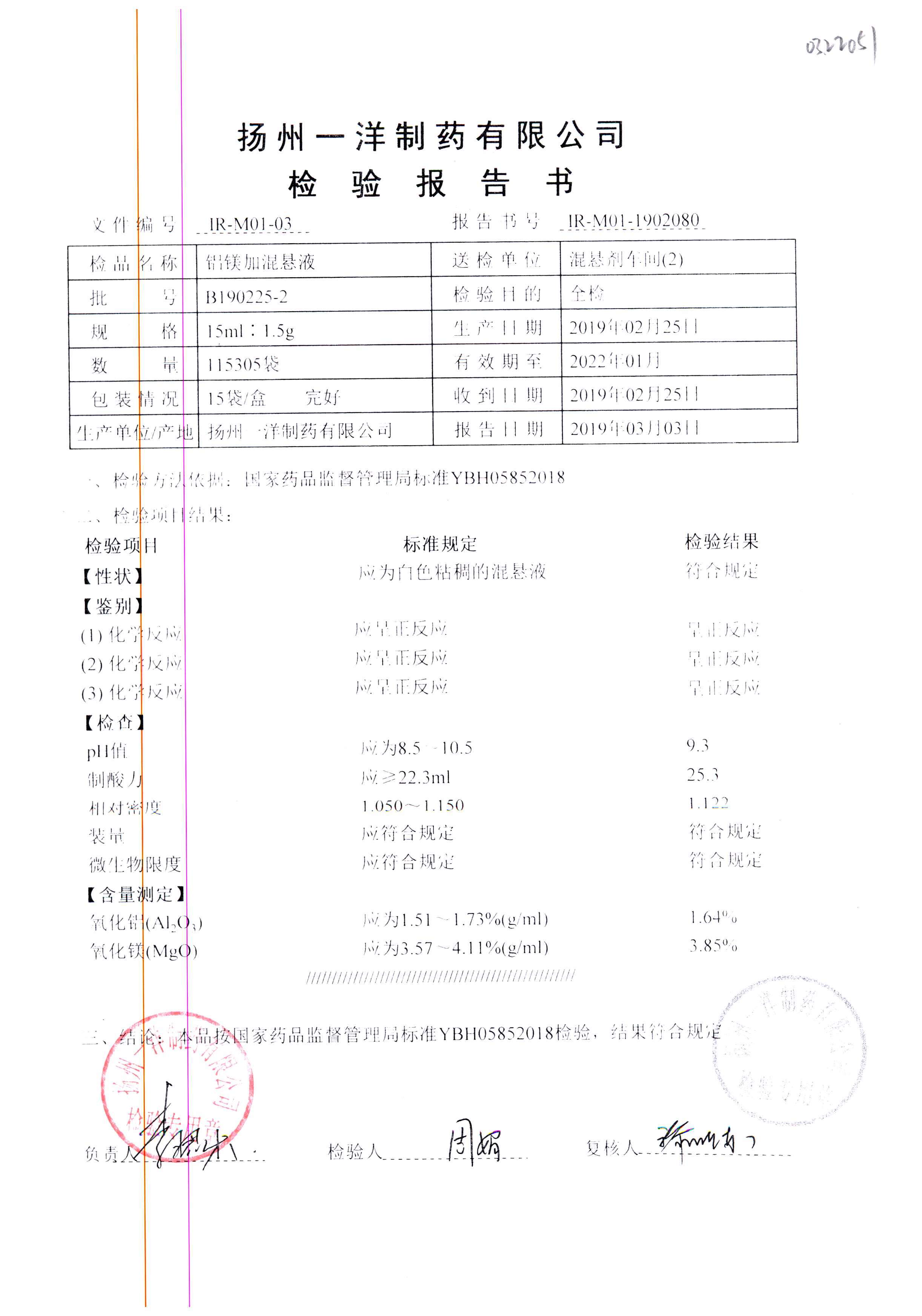鋁鎂加混懸液 | 15ml:1.5g | B190424-7 | 查看詳情 |