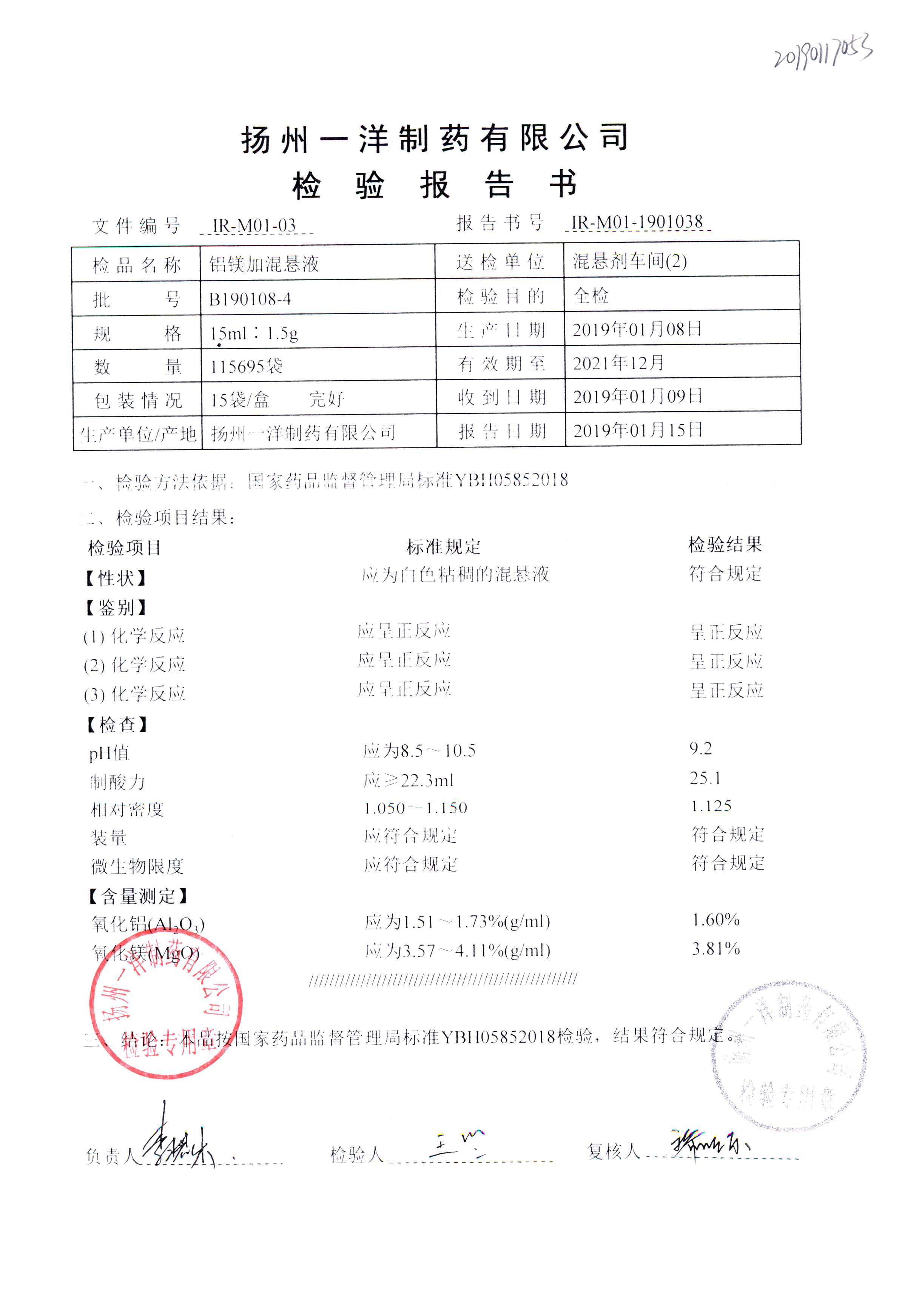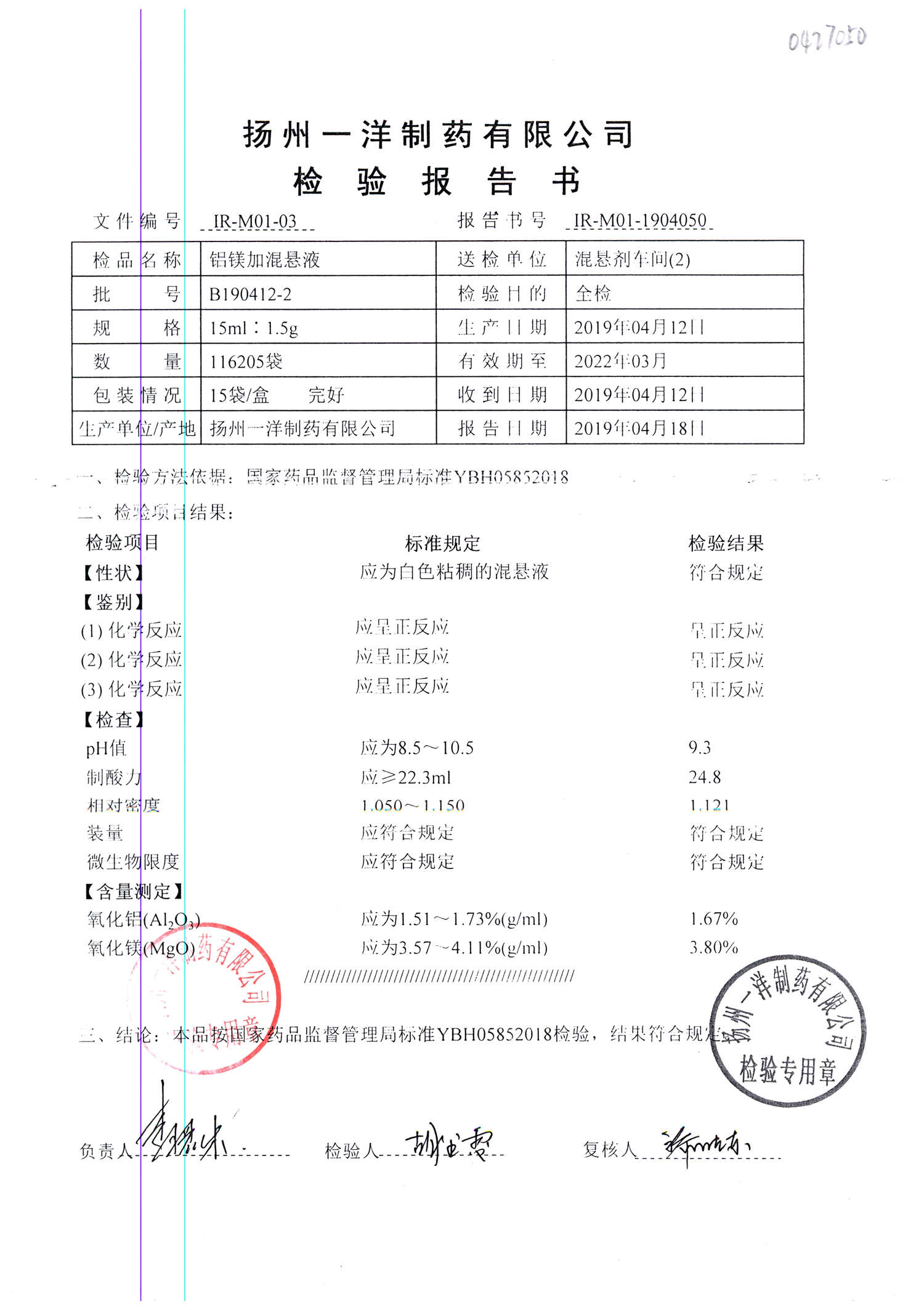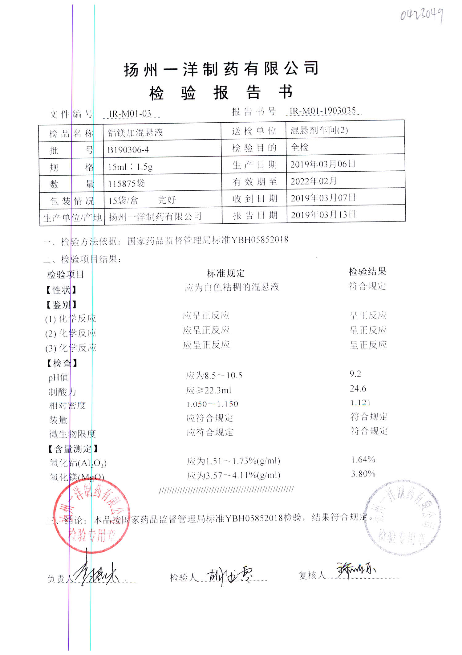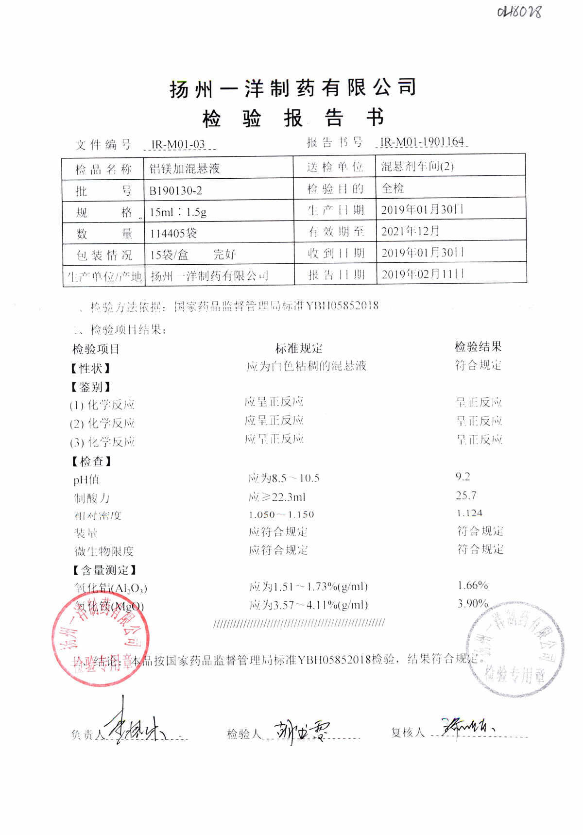 鋁鎂加混懸液 | 15ml:1.5g | B190424-7 | 查看詳情 |