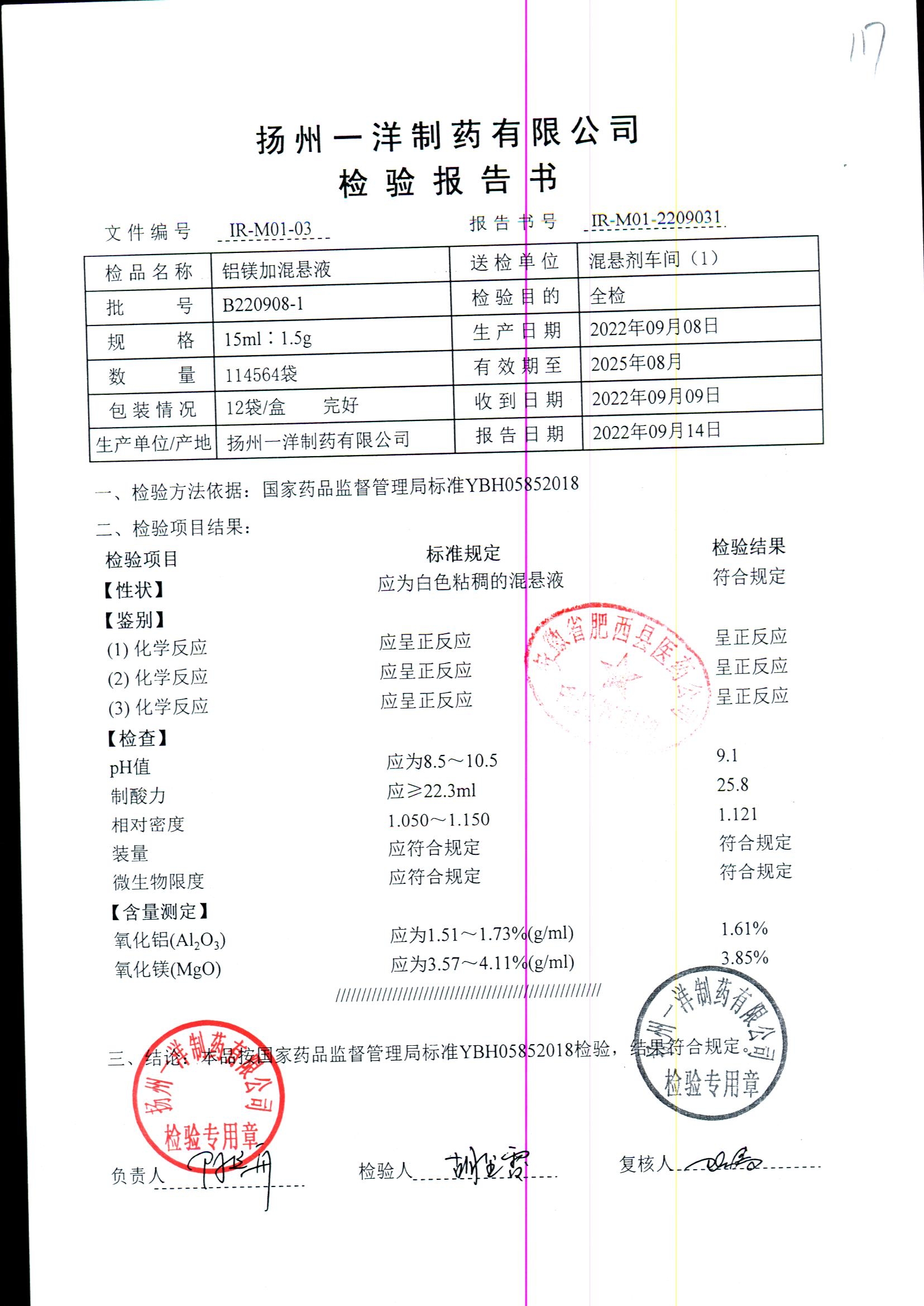 鋁鎂加混懸液 | 15ml:1.5g | B220908-1 | 查看詳情 |
